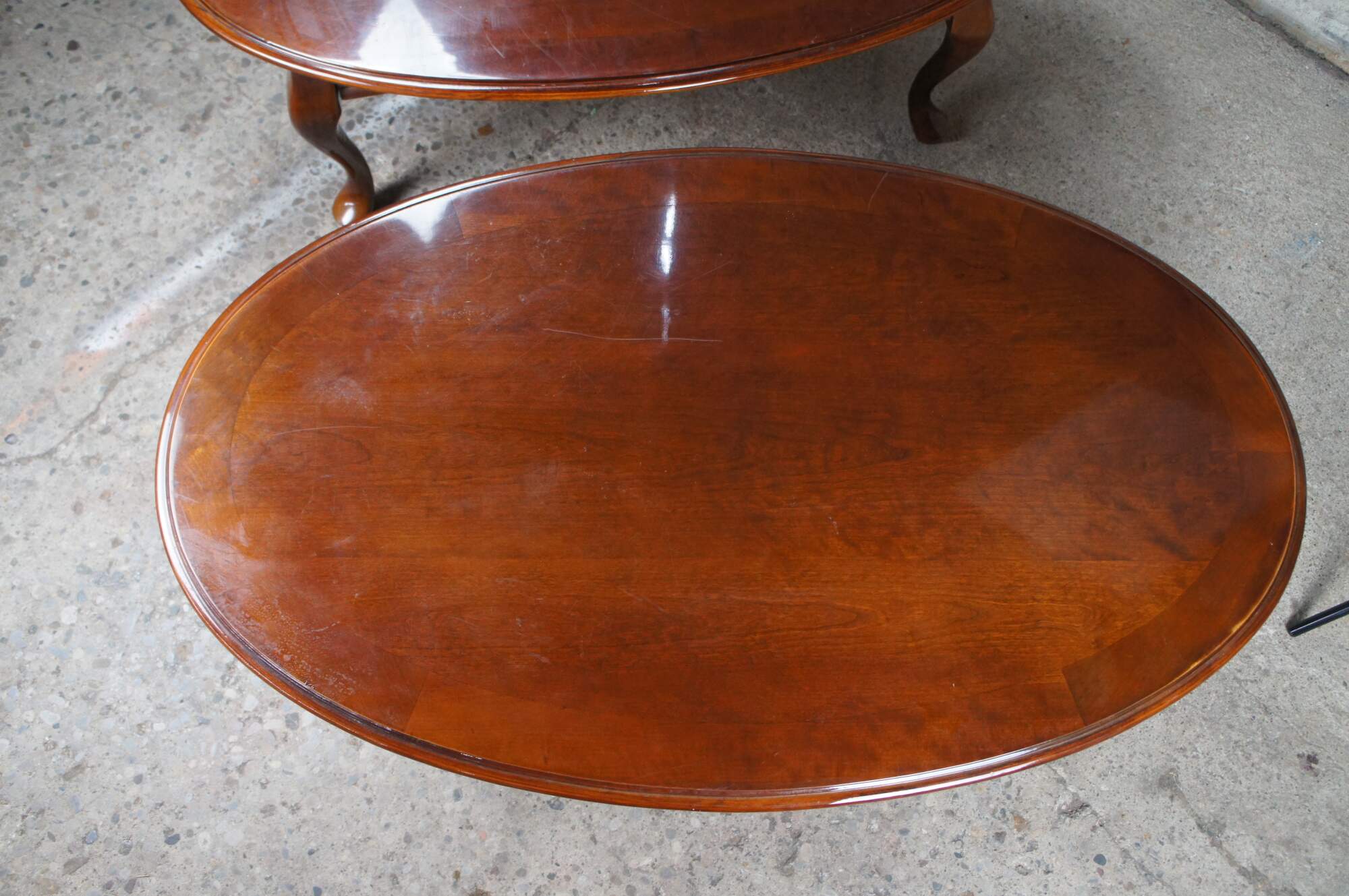 Vintage Traditional Queen Anne Cherry Oval Coffee Cocktail Table 45"