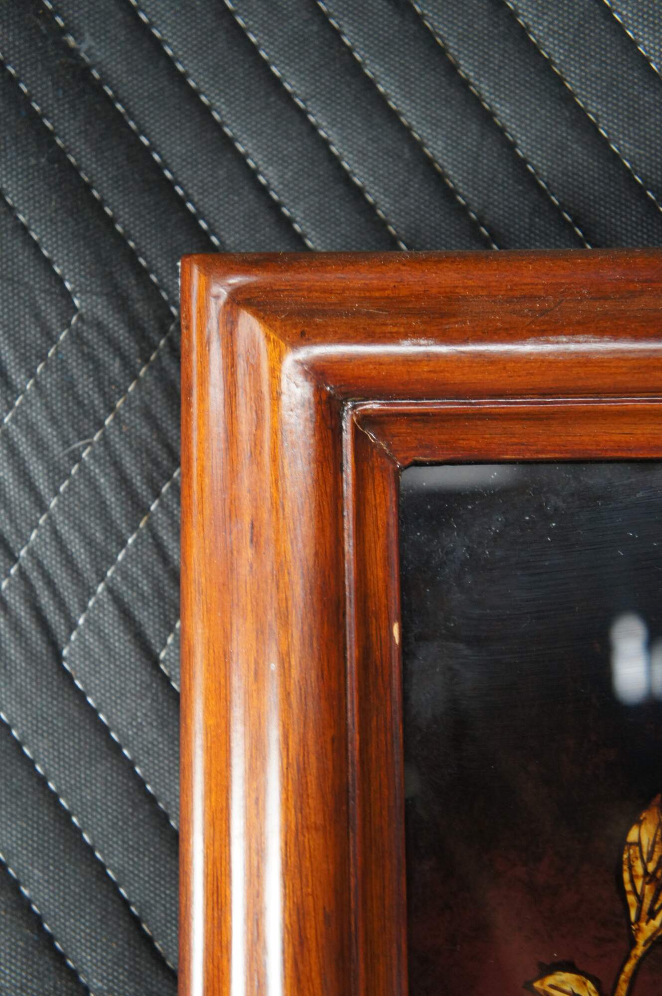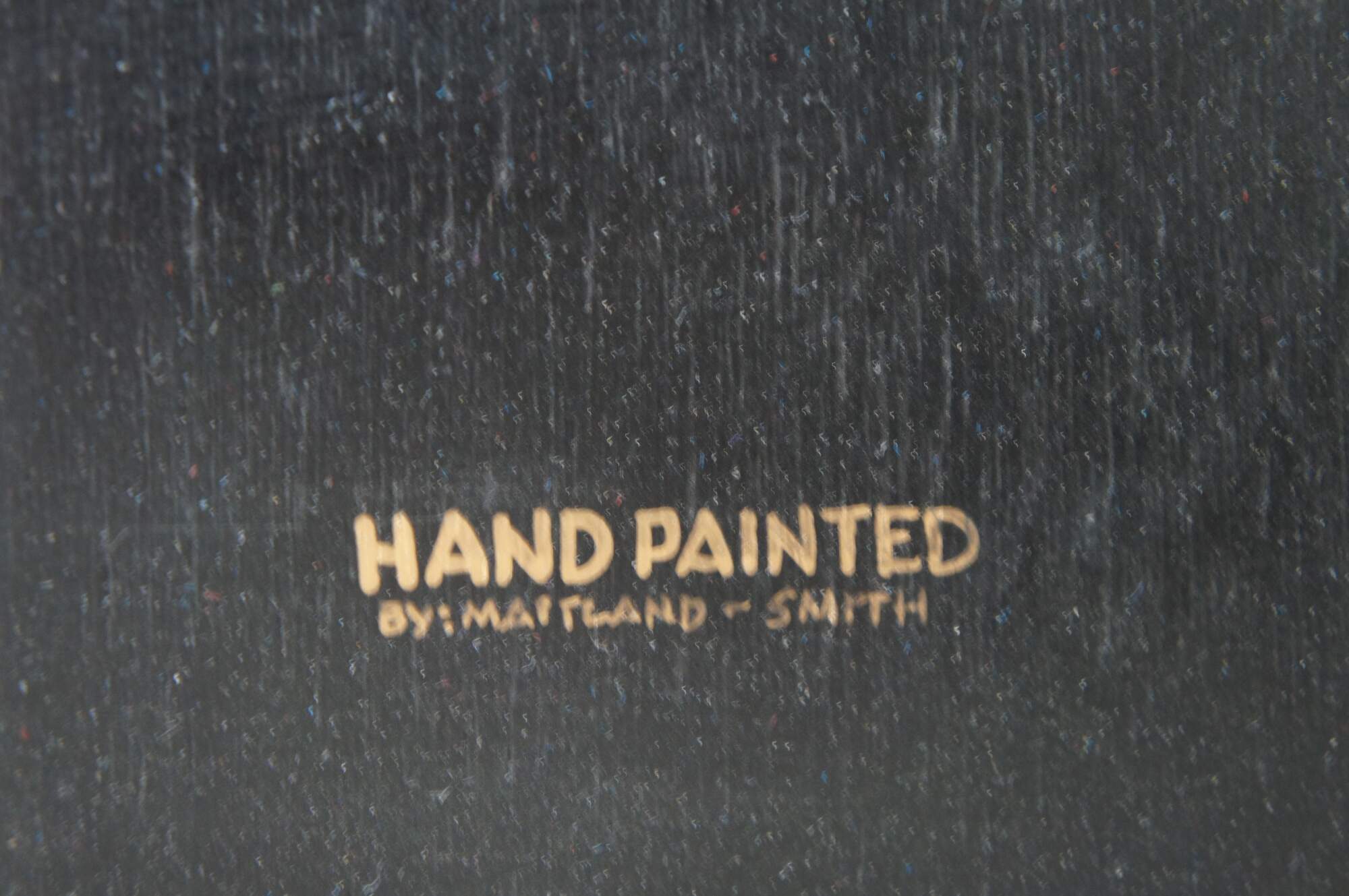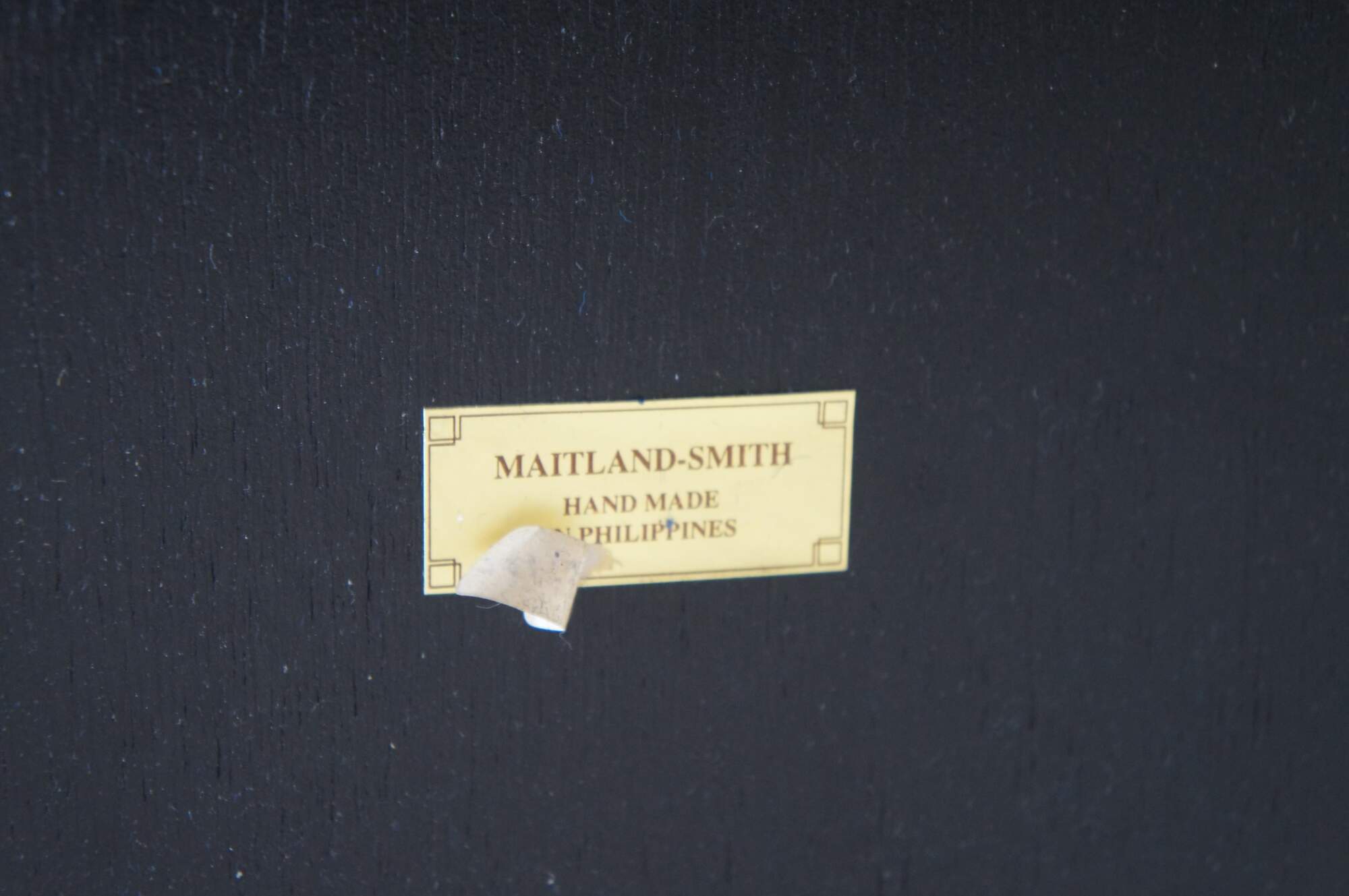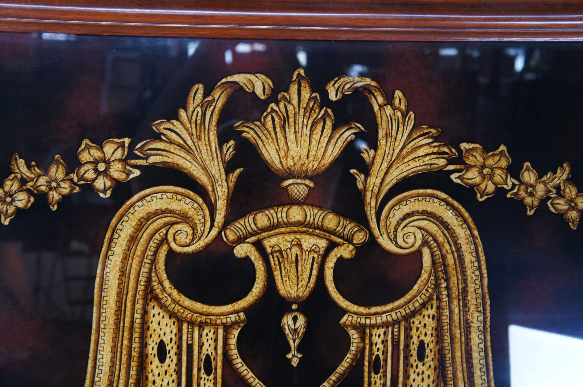 A very large and impressive vintage pair of Maitland Smith hand painted art panels featuring a French Neoclassical / Renaissance eglomise style motif with central trophy urns surrounded by floral acanthus and tassel design. Set in large rectangular mahogany frame with glass. Very heavy.
