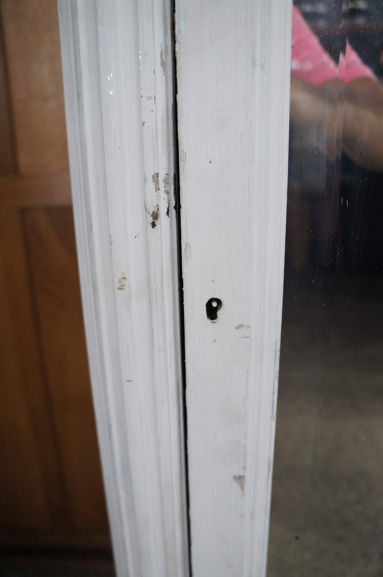 Fair antique condition, wear and distressing from age and use, finish / paint loss, scuffing / marking, missing shelves, base painted gray, shelves can be made if interested.