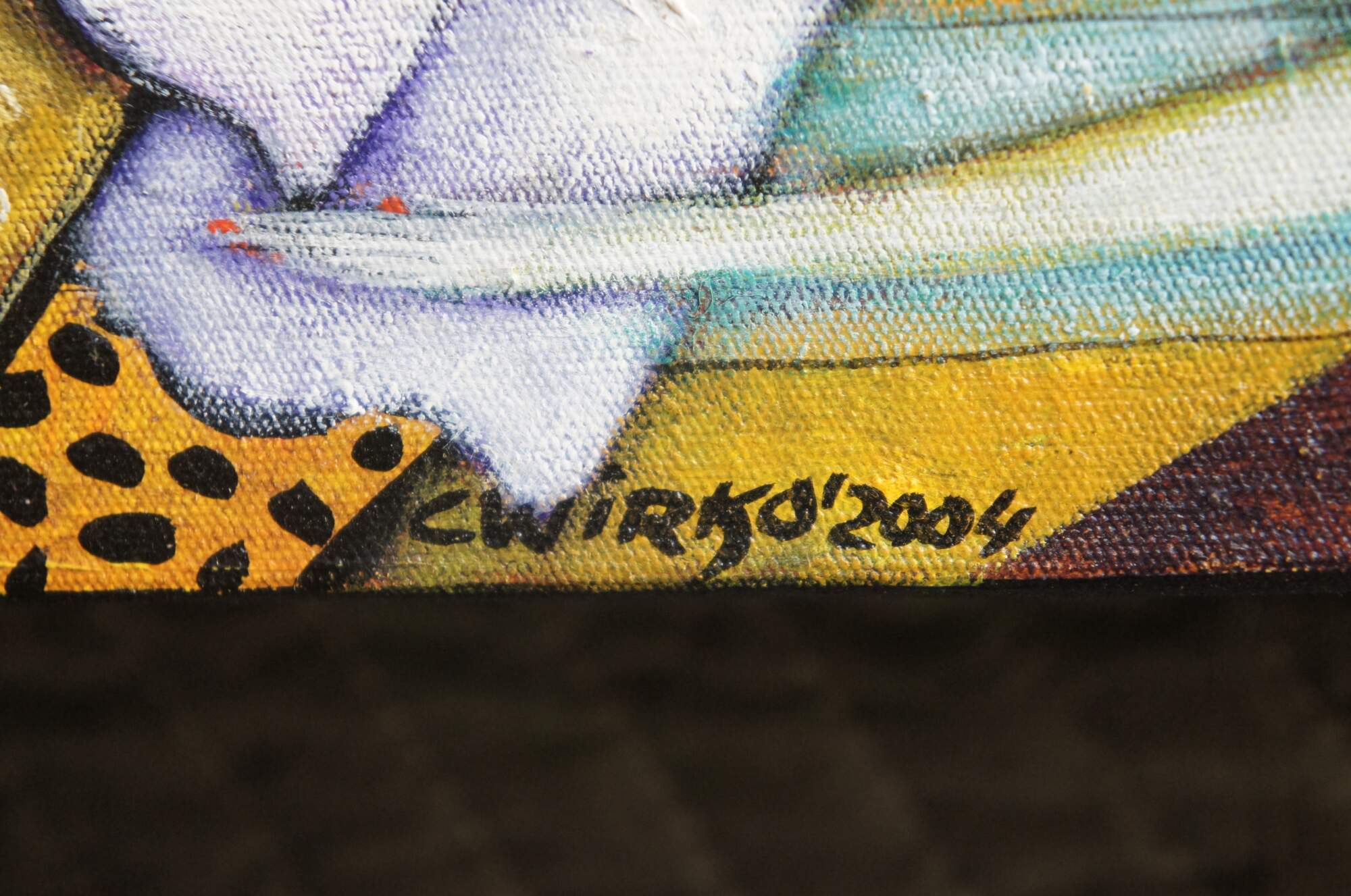 "Mirta Elena Cwirko was born in Argentina (Córdoba Capital), on May 14, 1951. She is of Polish and Italian descent. Graduated from the "Plastic Arts" program at the Provincial School of Fine Arts "Dr. José Figueroa Alcorta" in 1986 (Córdoba Capital - Argentine Republic). She has lived in Santa Cruz, Bolivia since October 1989. "Creativity is an effort, says Mirta, it requires a lot of personal strength to control that energy that springs from the hands." Her paintings are a reflection of her creative desire, in which she mixes different elements such as wood, fabric, tacks, iron or dry logs. "I think that everything helps me to be able to communicate what I feel. Human pain, migrants, motherhood or childhood are topics that normally overwhelm me and fill my eyes with tears. So I took the colors and let the horse runaway." (Translated from Bolivianet)