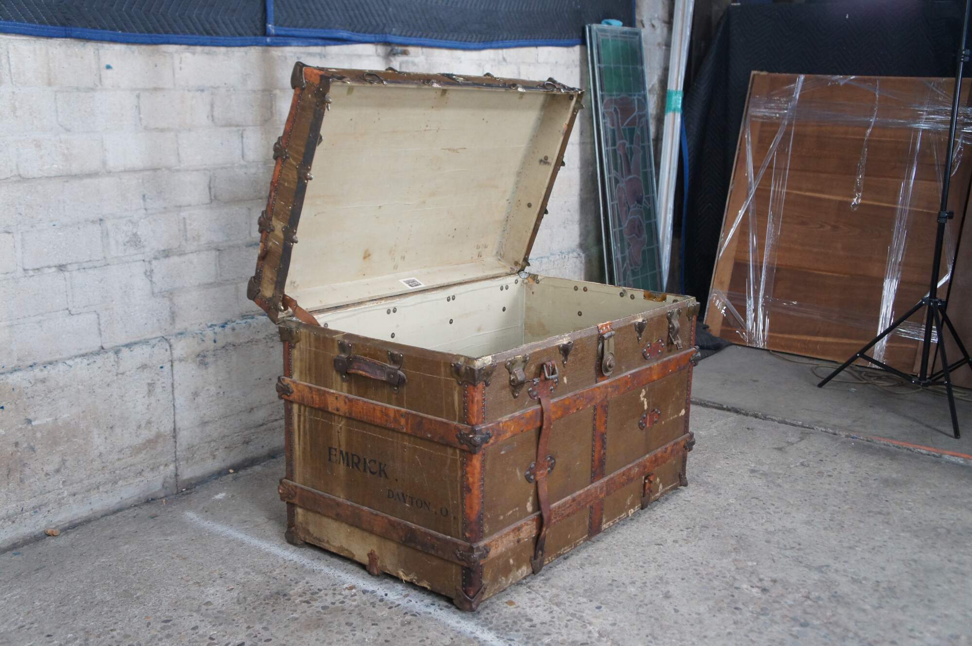 Good Overall Condition; Age and Use Related Wear. Staining, scuffing and missing leather straps. Smoke Odor
