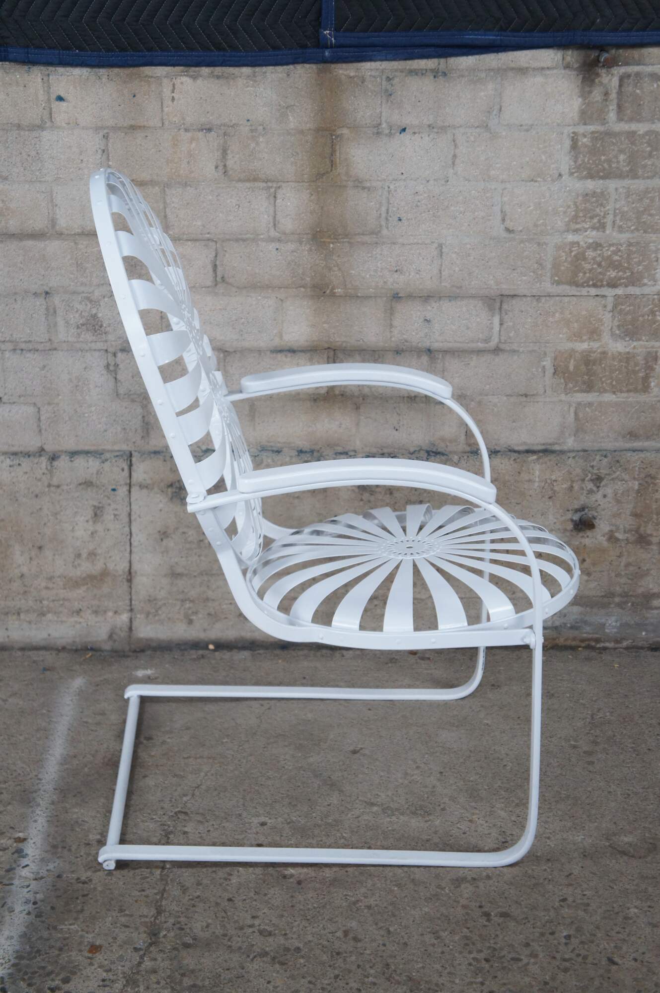 Beautiful Francois Carré Art Deco cantilever spring arm chair and footstool, circa 1930s. Features a sunburst design over cantilever base. Finished in white.