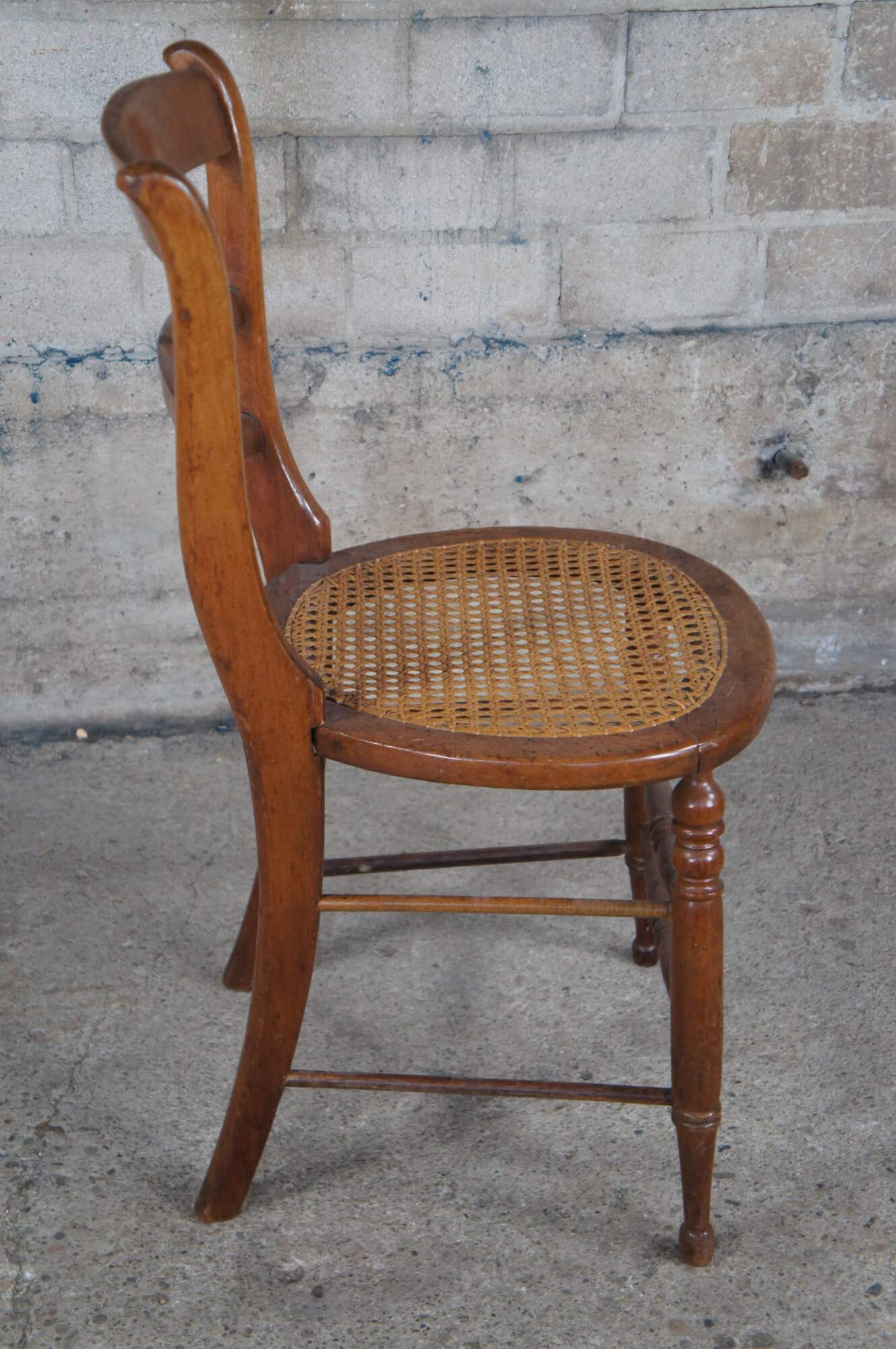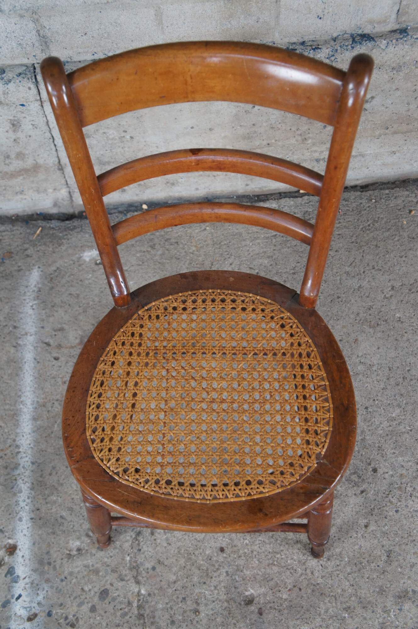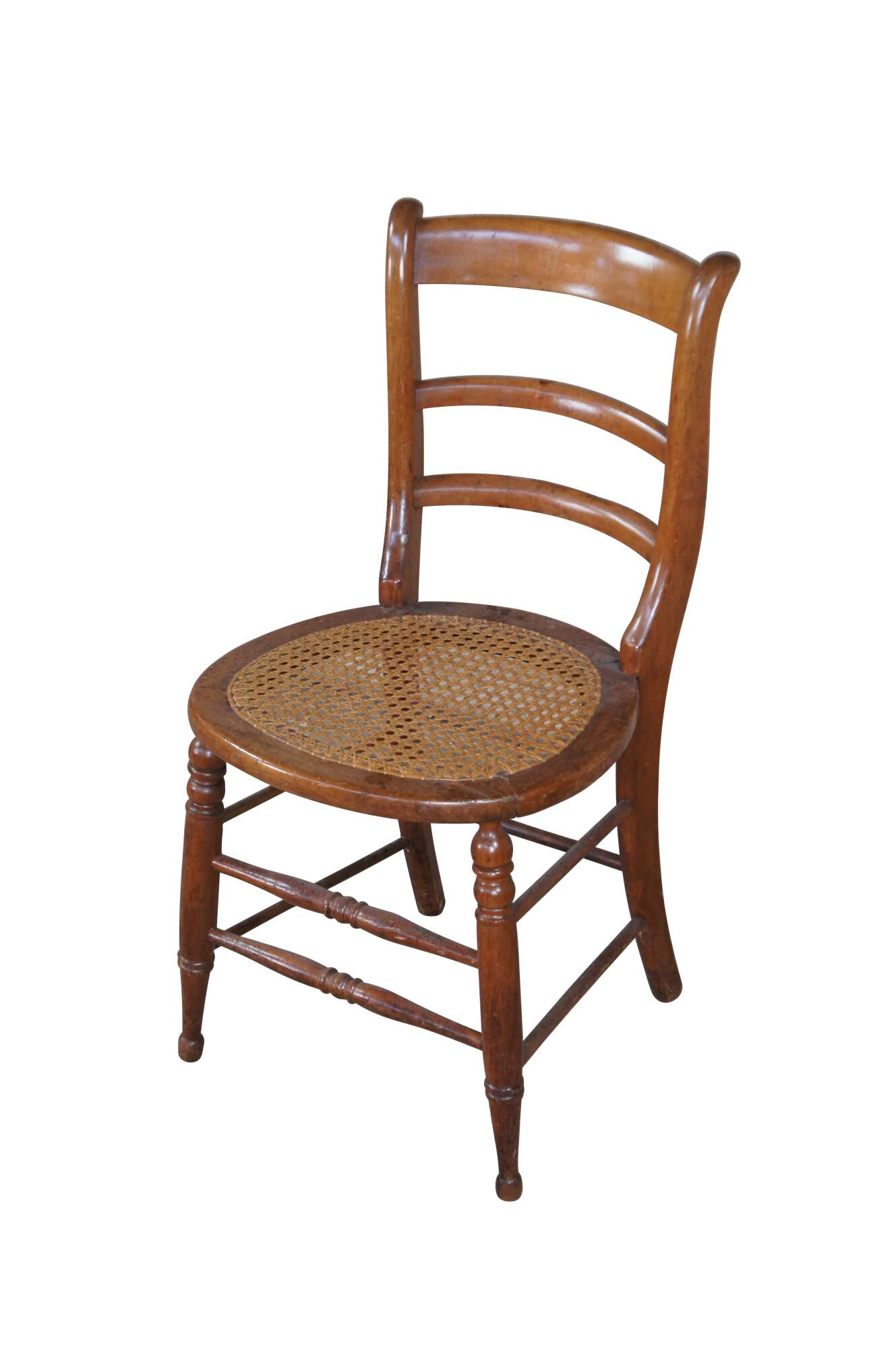 Late Victorian Oak Dining Side Chair. Features a ladderback and cane seat. Supports are turned and ribbed.