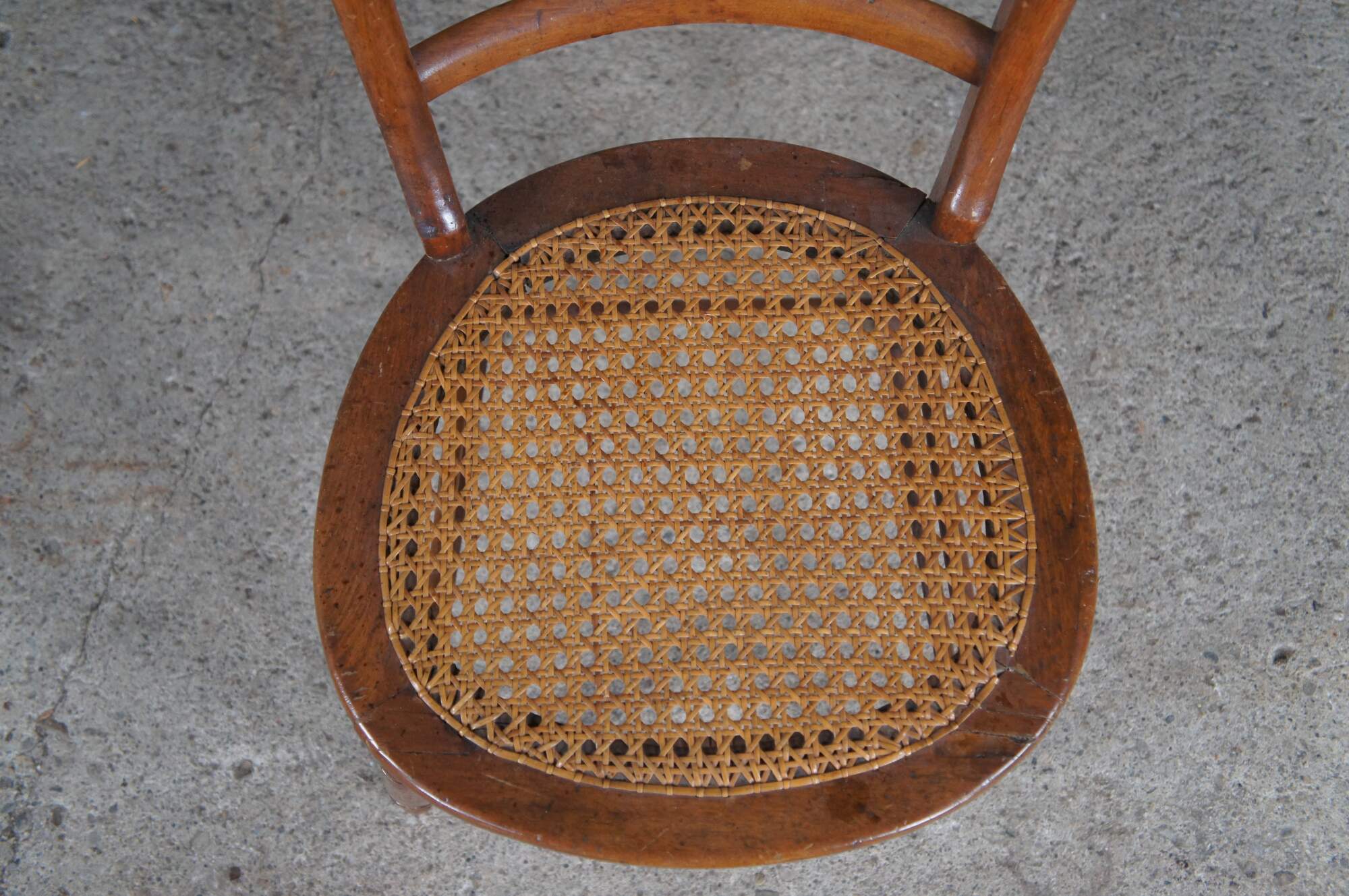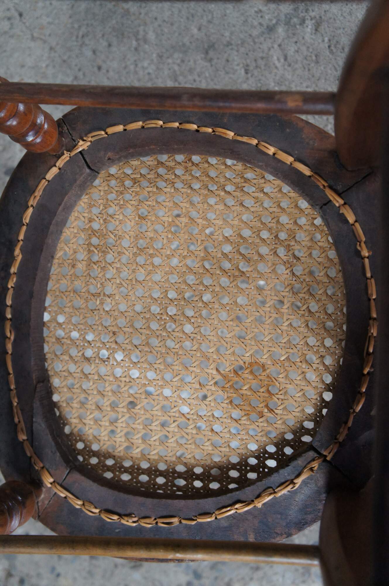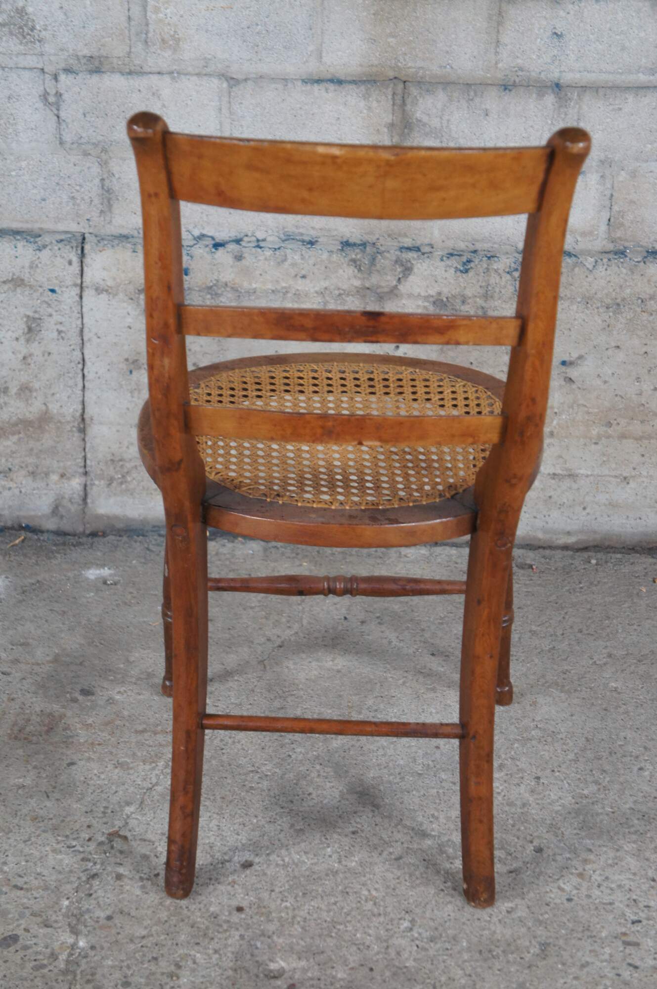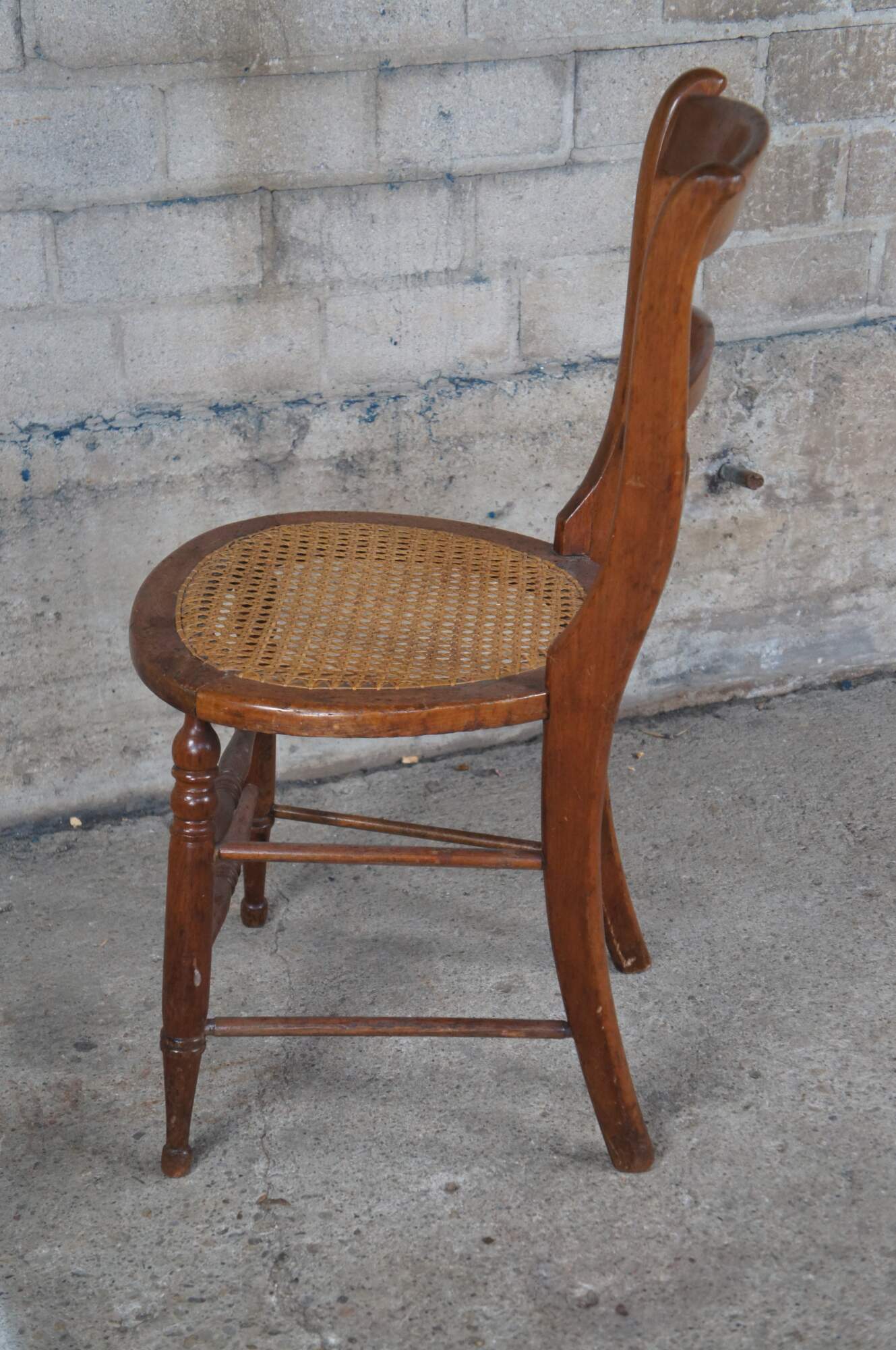 Late Victorian Oak Dining Side Chair. Features a ladderback and cane seat. Supports are turned and ribbed.