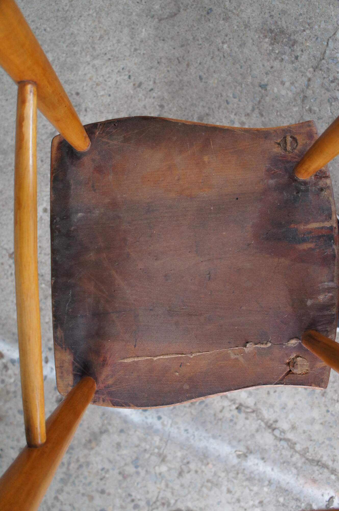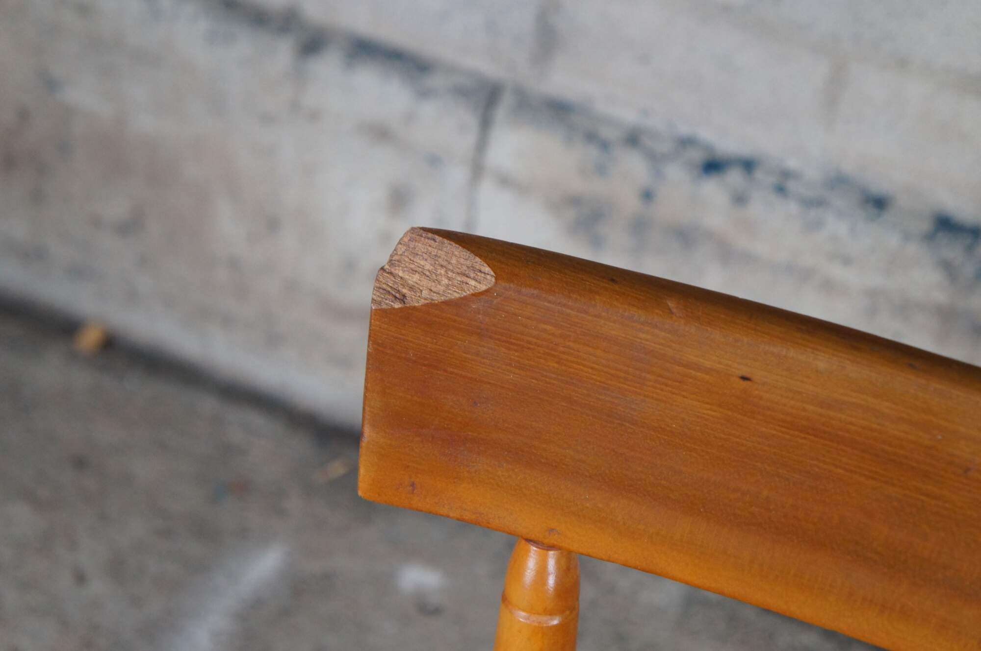 A charming antique side chair. Features a petite size made from maple with a contoured plank seat. A fun addition to any space.
