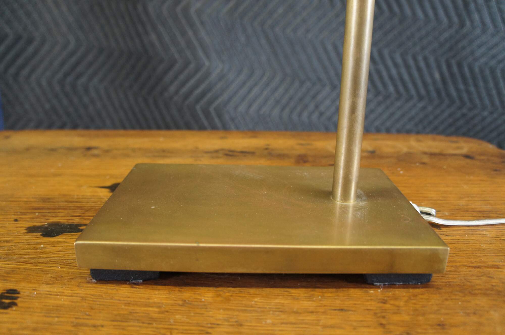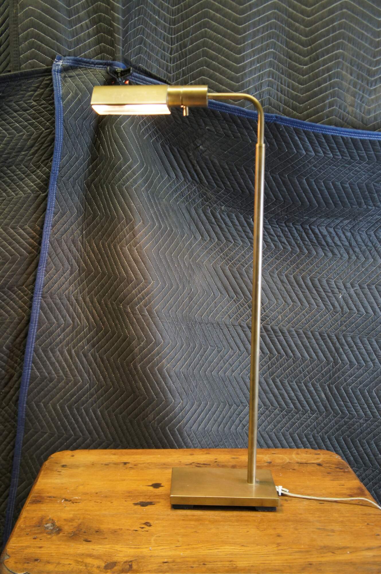 Vintage brass pharmacy / apothecary / library reading lamp featuring an adjustable height and dimmable light.