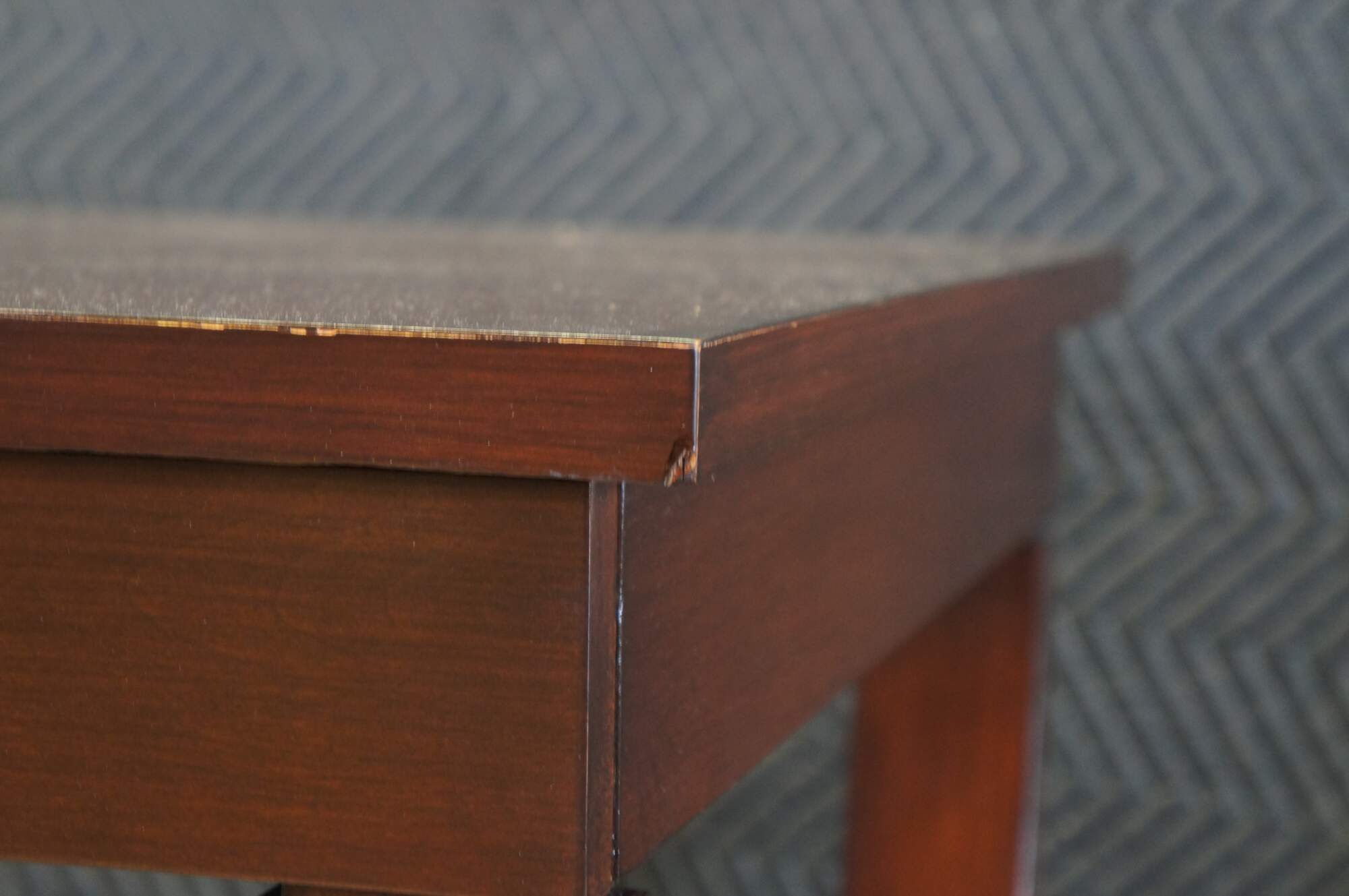 The Rosenau Thomas Writing Desk by Bolier & Co. is executed in hand-selected sapele veneer in Rosenau mahogany, a fine-grained hardwood with the characteristic russet color of the mahogany family. Placing emphasis on line, proportion and detail, the Rosenau & Co. collection brings classic shapes and motifs to new life using traditional construction and finishing techniques to bring out the full beauty of premium materials. Designed by Michael Vanderbyl, the Rosenau Thomas Writing Desk by Bolier blends sophistication and livability for a versatile look that will create drama in any home.