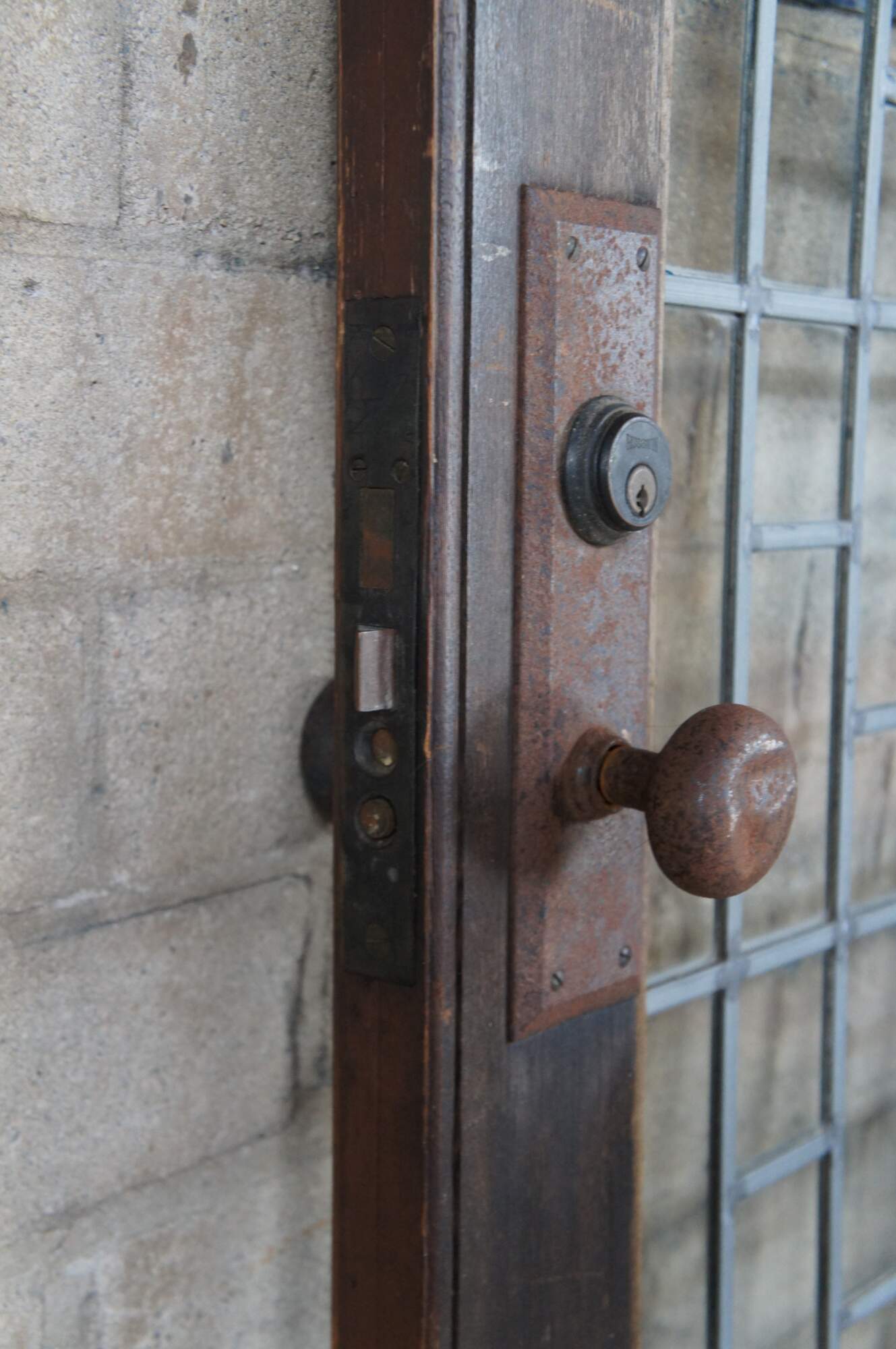 Fair; Age related wear and patina, some finish loss, chipping and staining. Corrosion to hardware. A few small splits to the glass.
