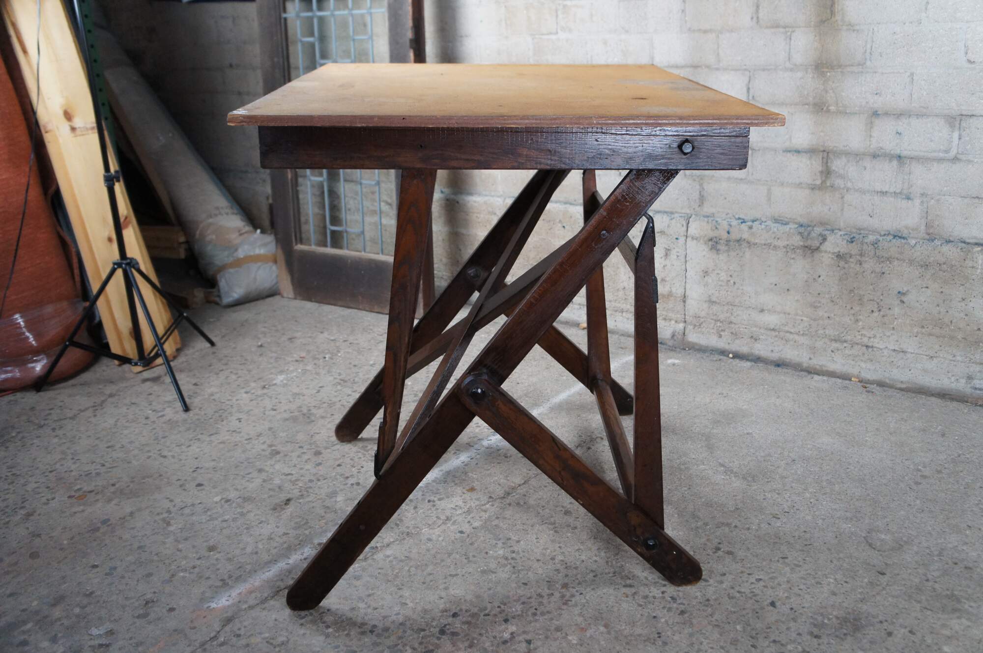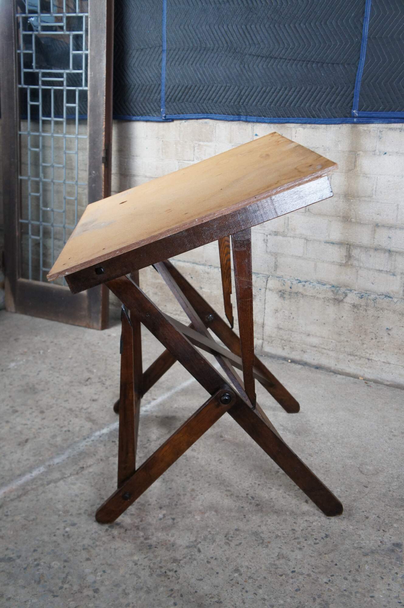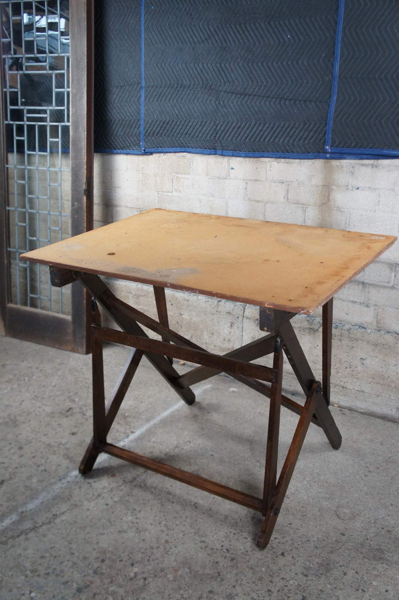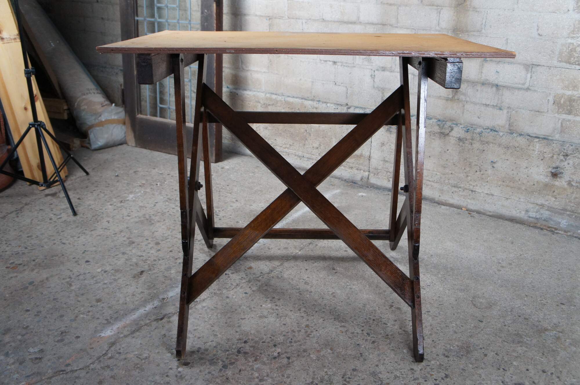 Antique early 20th century Cole industrial architects drafting table / drawing table / artist easel. Made of oak featuring a folding base and large rectangular surface.
