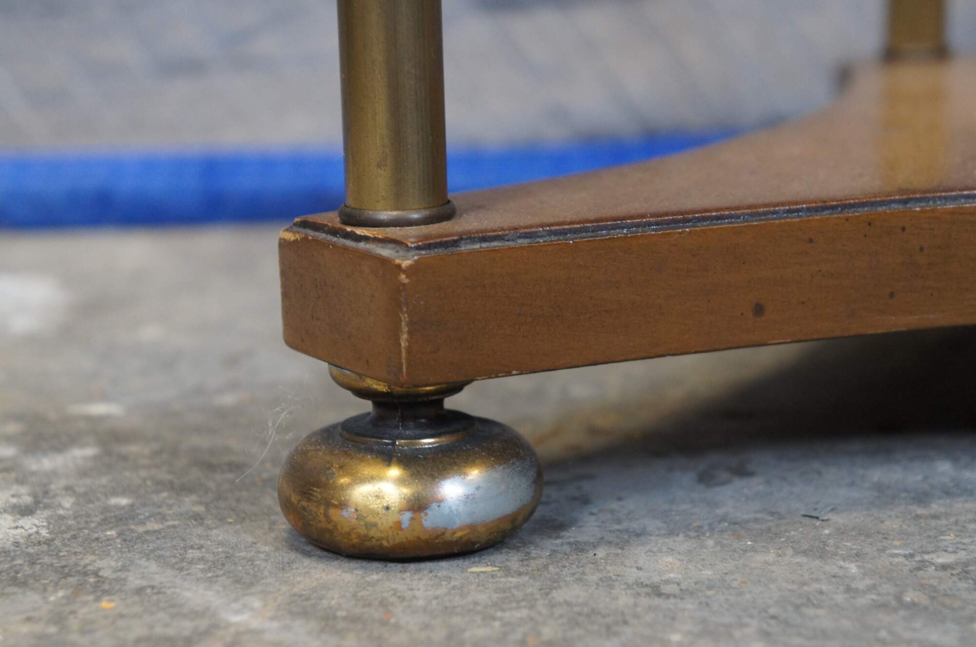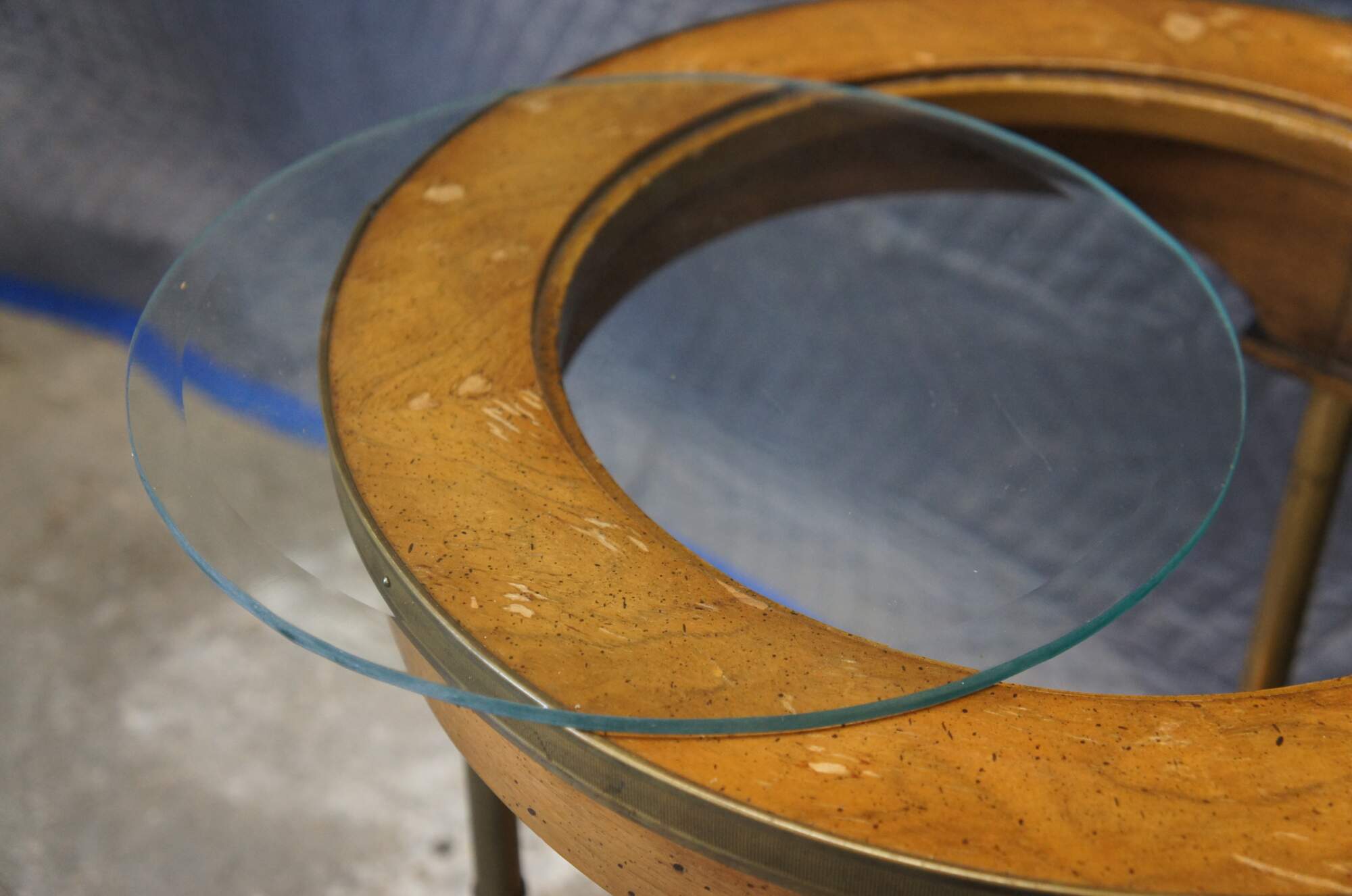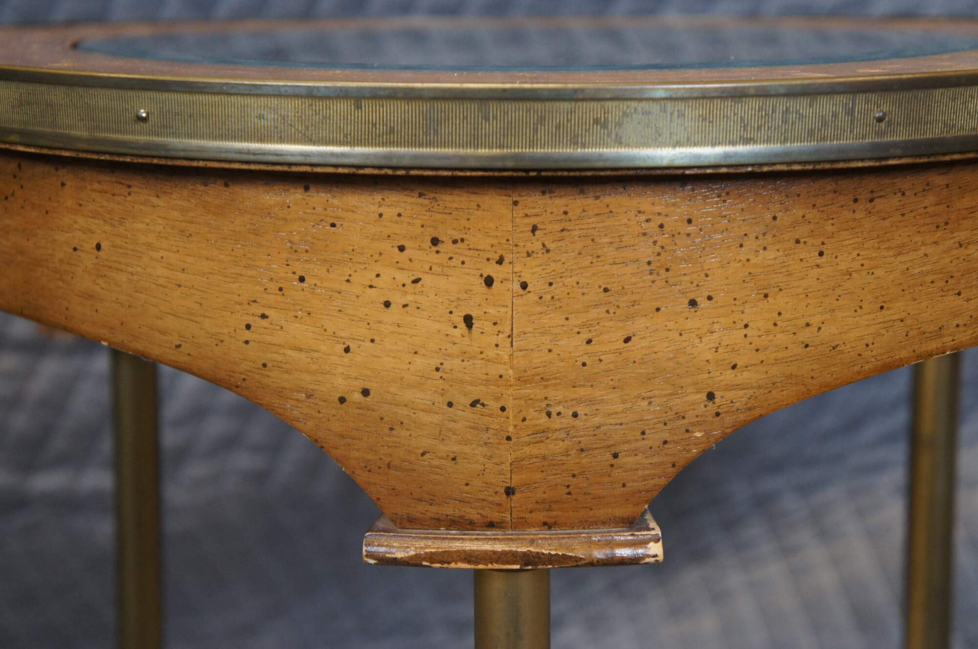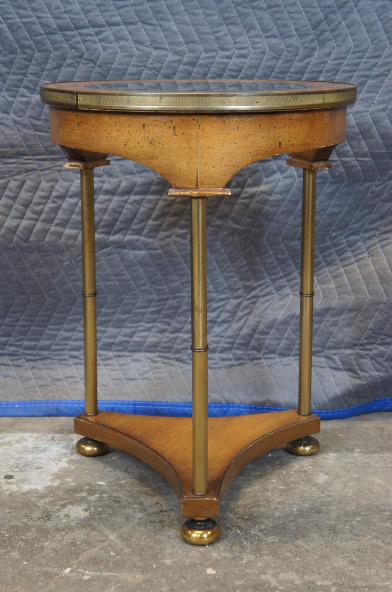 Good Overall - Wear / finish loss / water damage / scrapes to glass, one nailhead replaced.