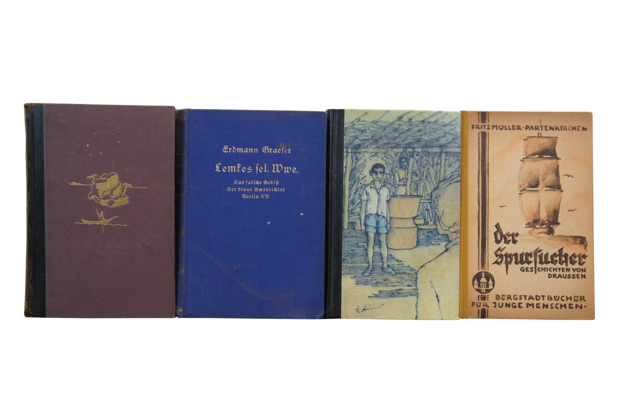 Lot of eight antique hard cover / hard back German language novels. Includes: