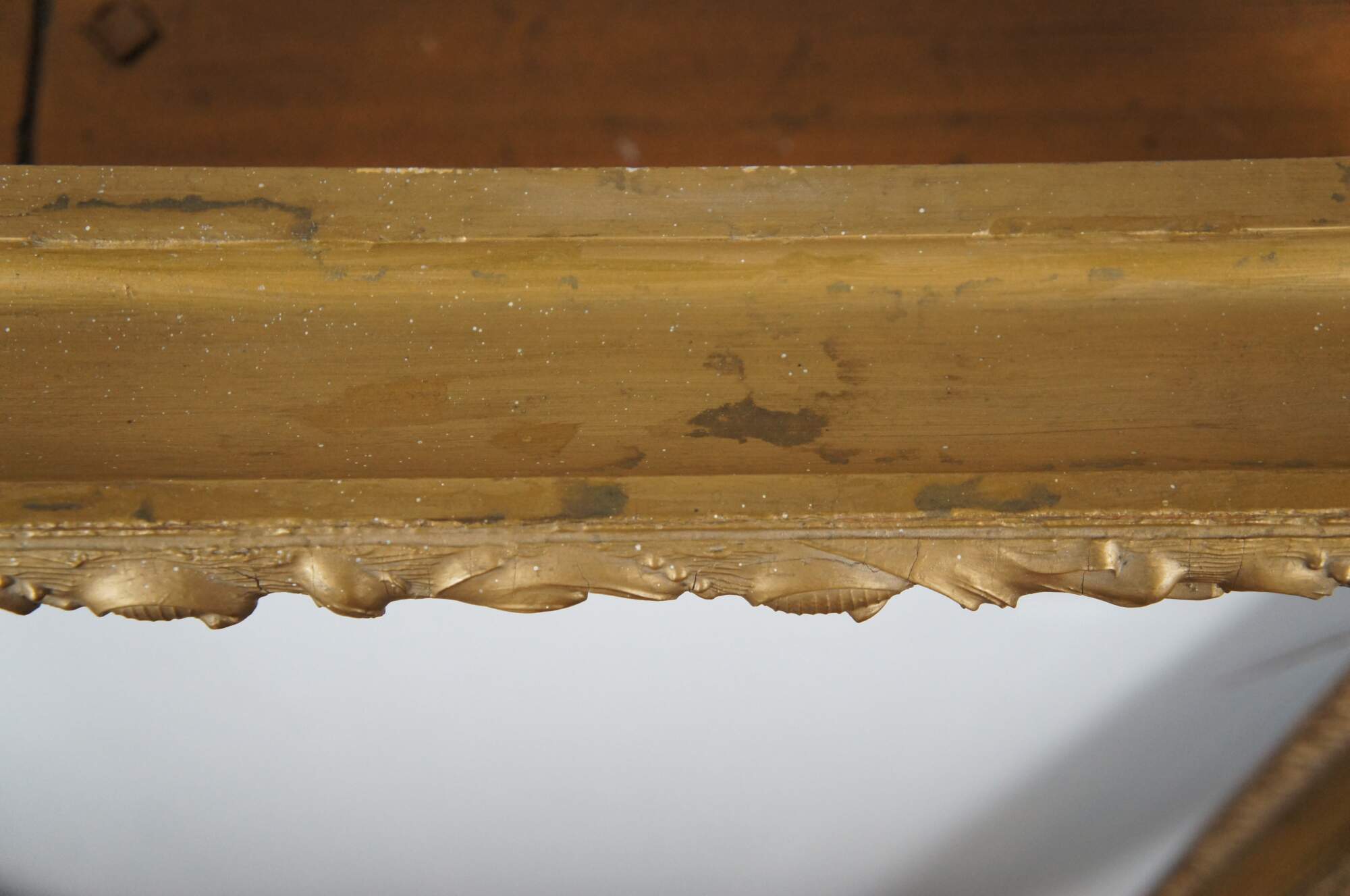 Large antique giltwood picture / art / mirror frame, beveled and carved with a swirling foliate / acanthus leaf motif. Accomodates art approximately 34" x 25".