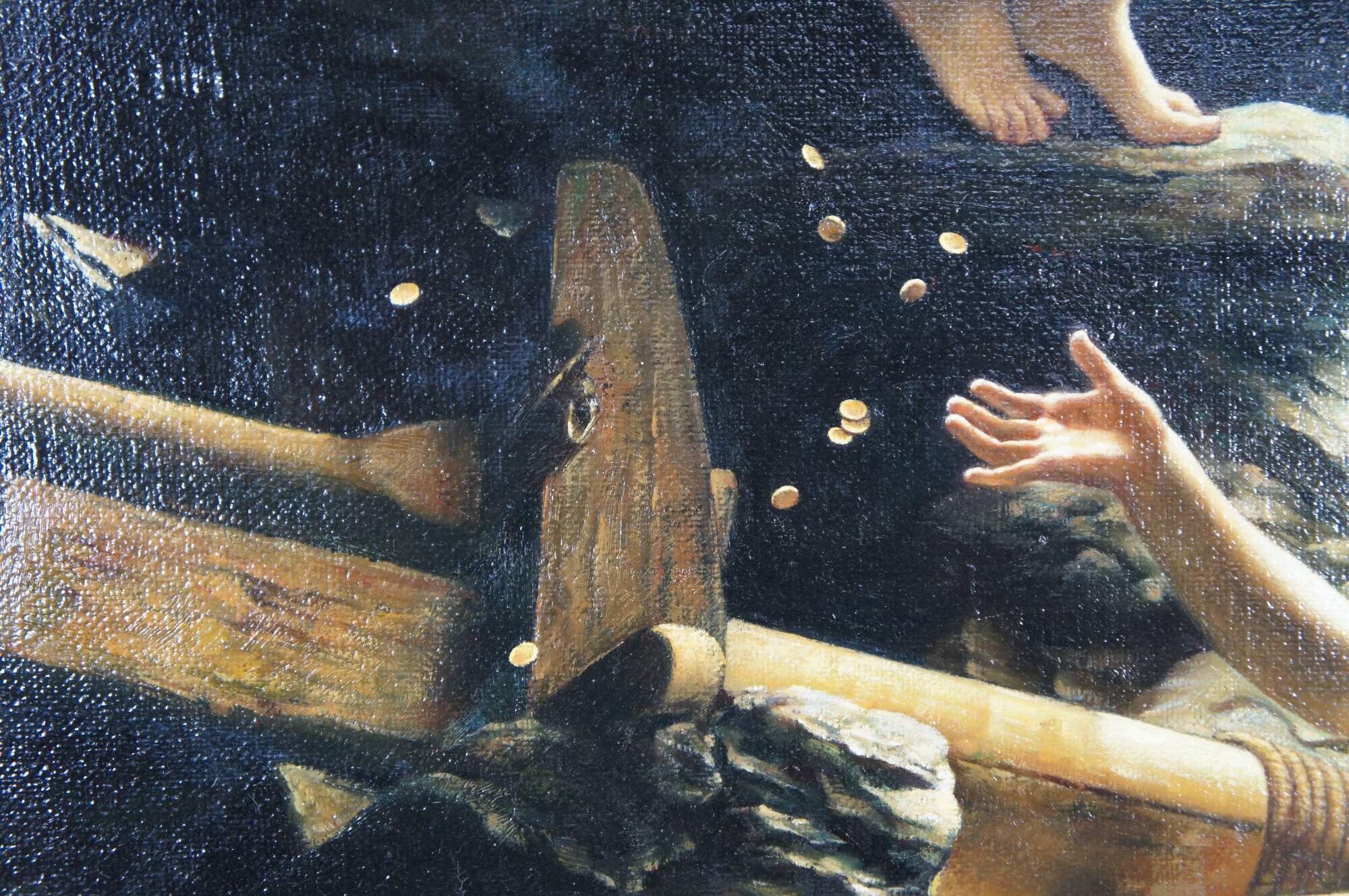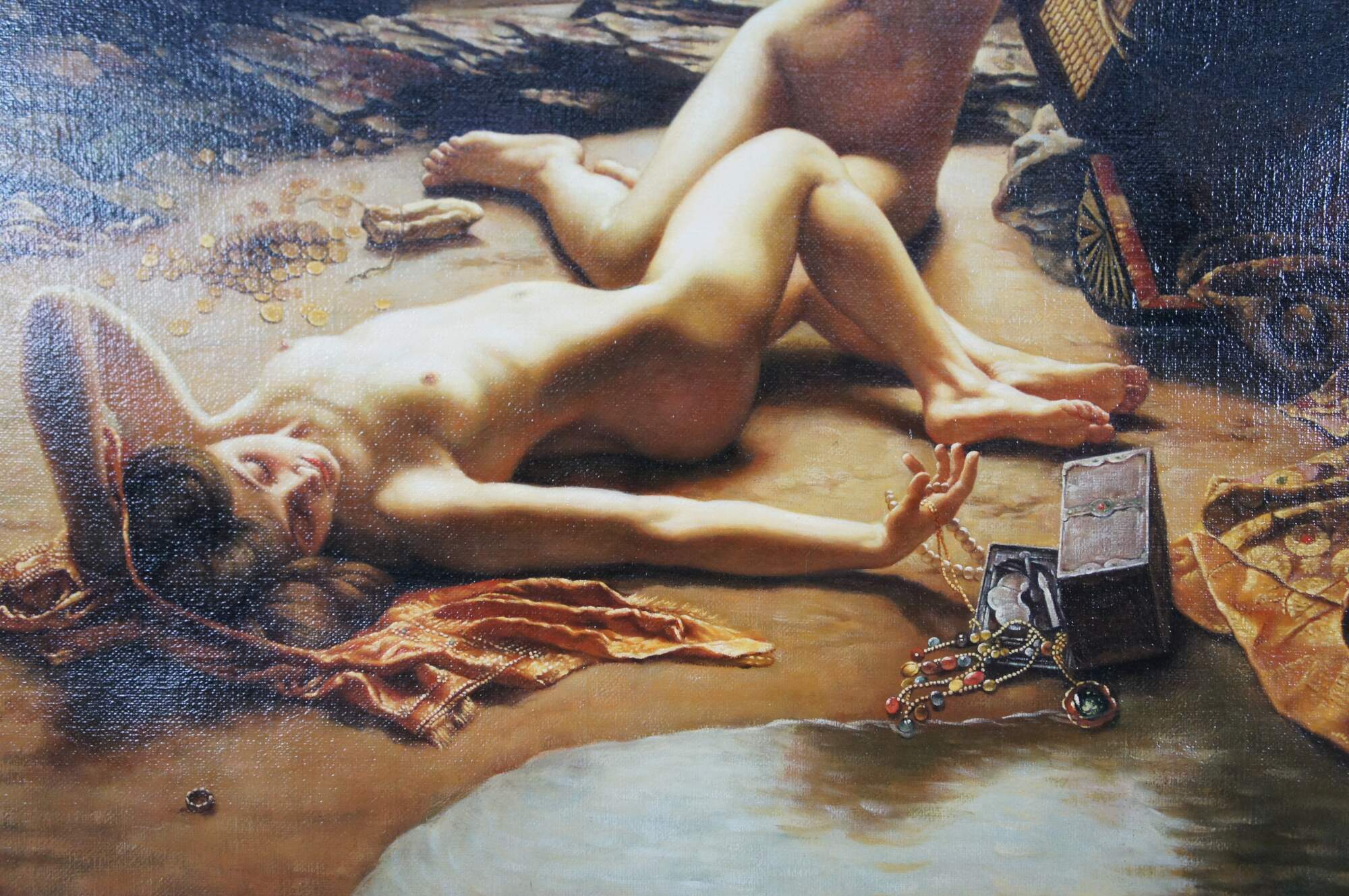 The Cave of the Storm Nymphs by Edward Poynter Large format Hand Painted reproduction. Oil on Canvas, Framed.