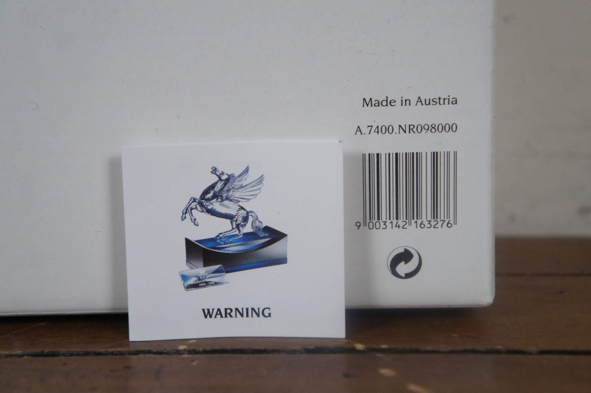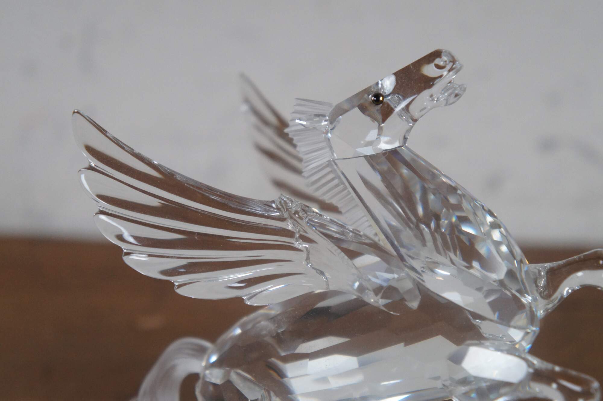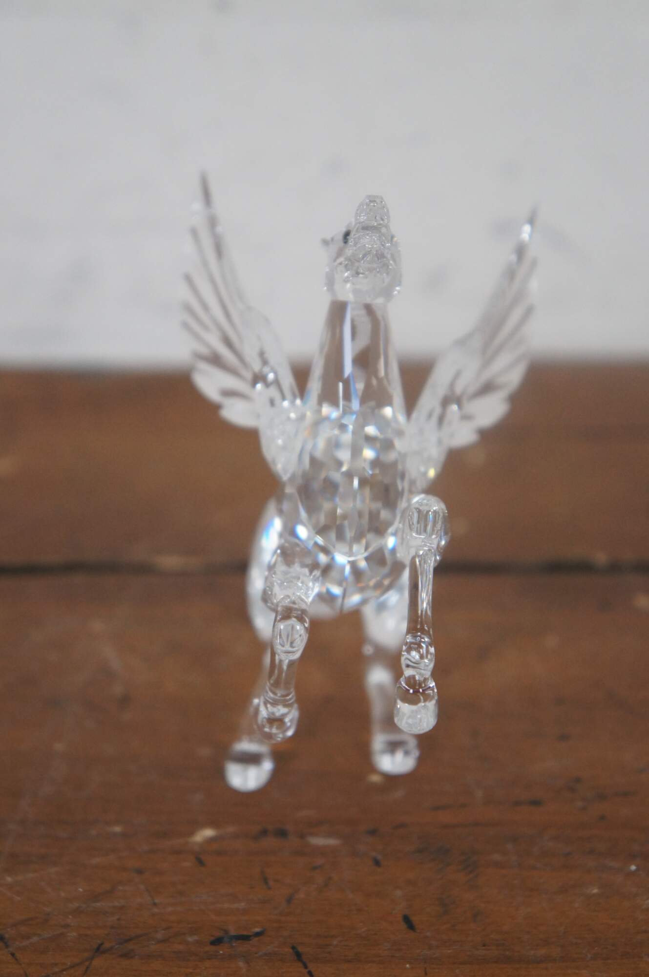 Swarovski Collectors Society 1998 Annual Edition, Fabulous Creatures series, The Pegasus Horse. Clear crystal figurine in the shape of a Greek pegasus with frosted mane / tail, and dark eyes. Includes original packaging. Made in Austria.