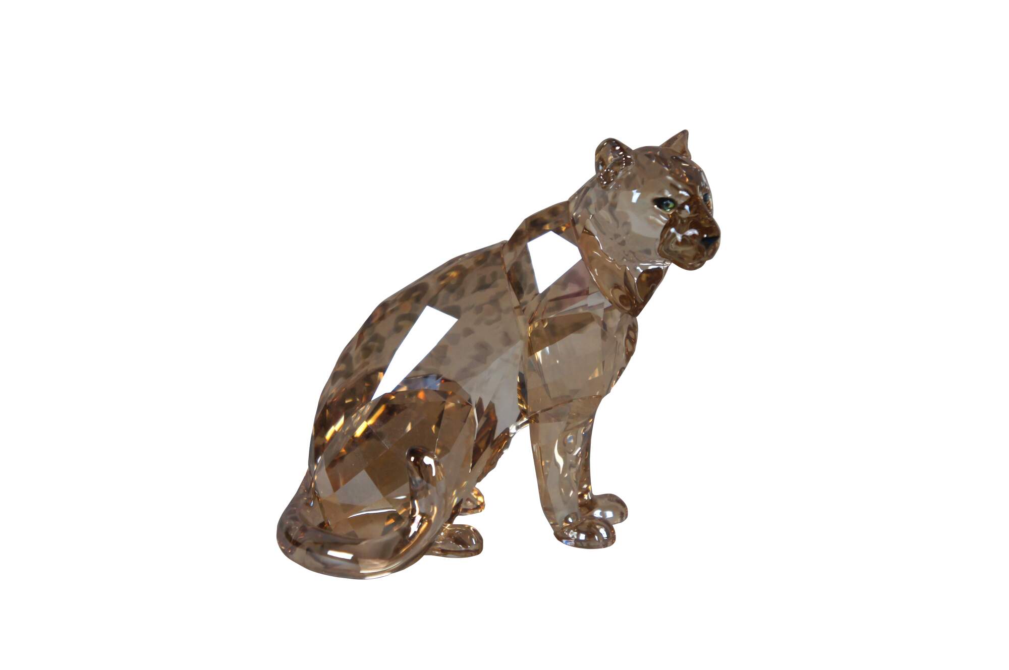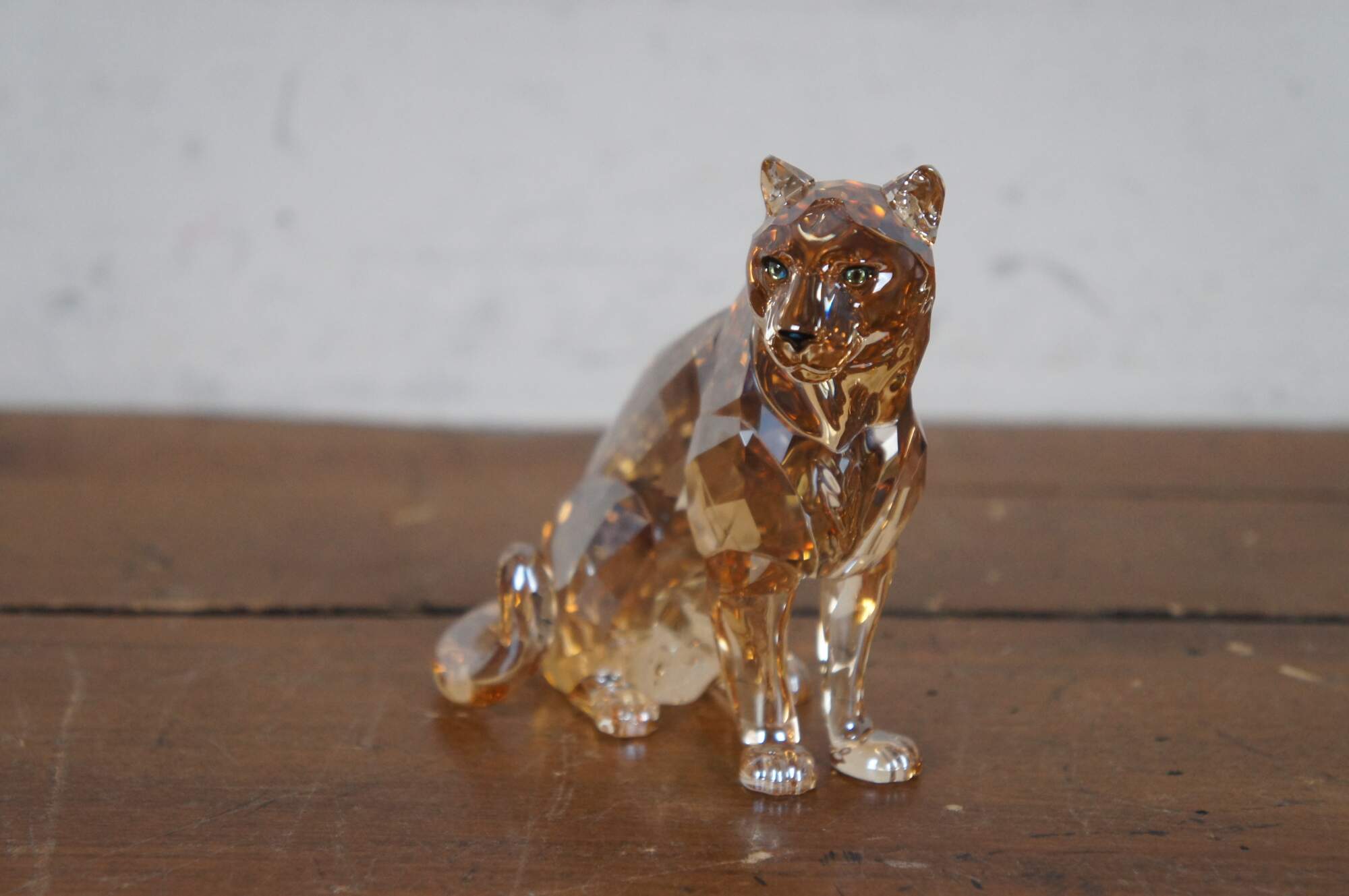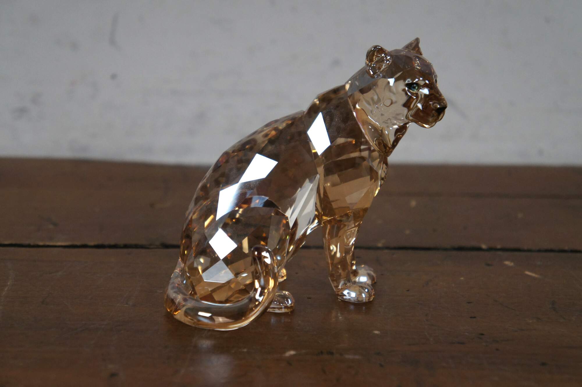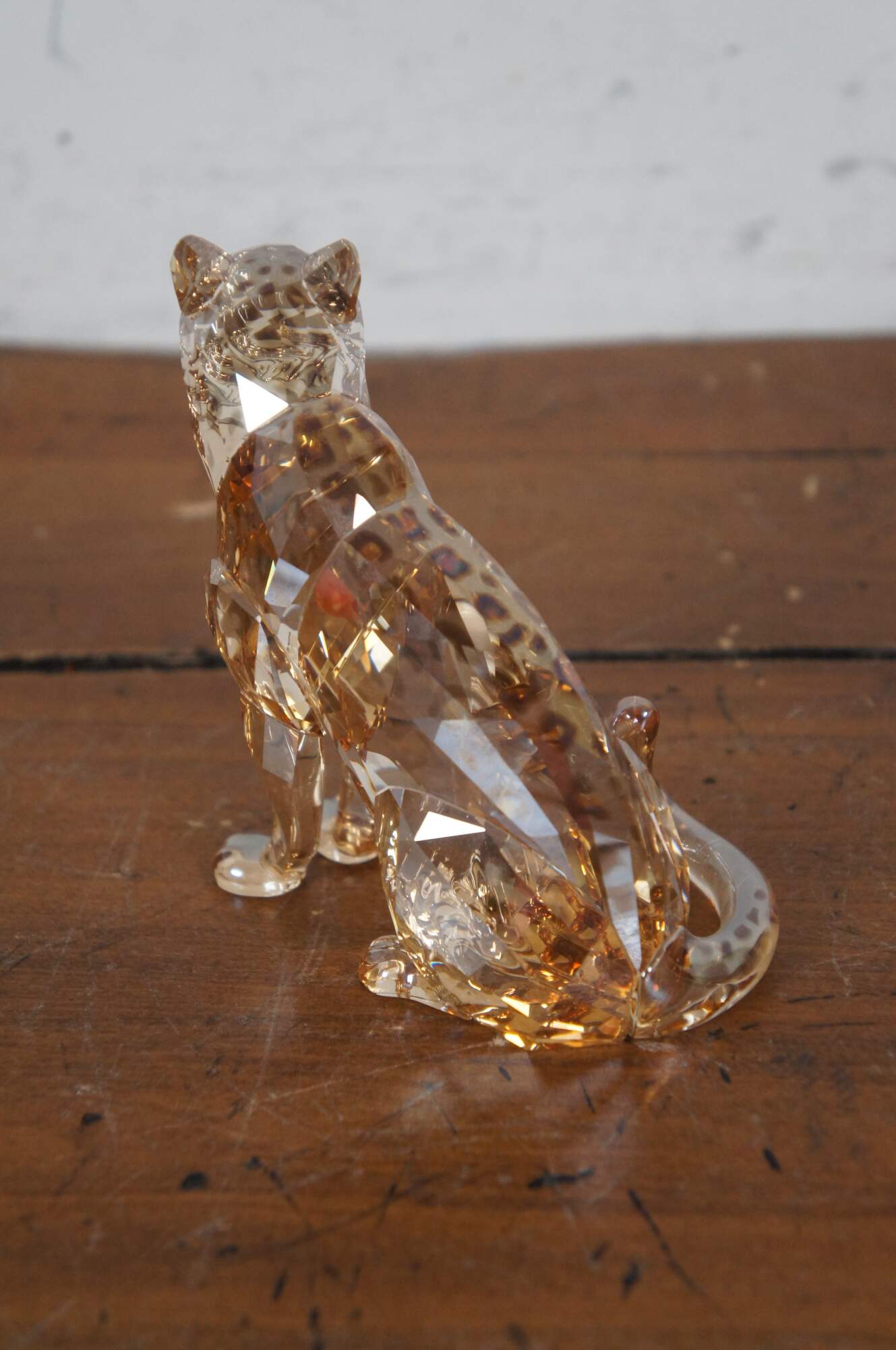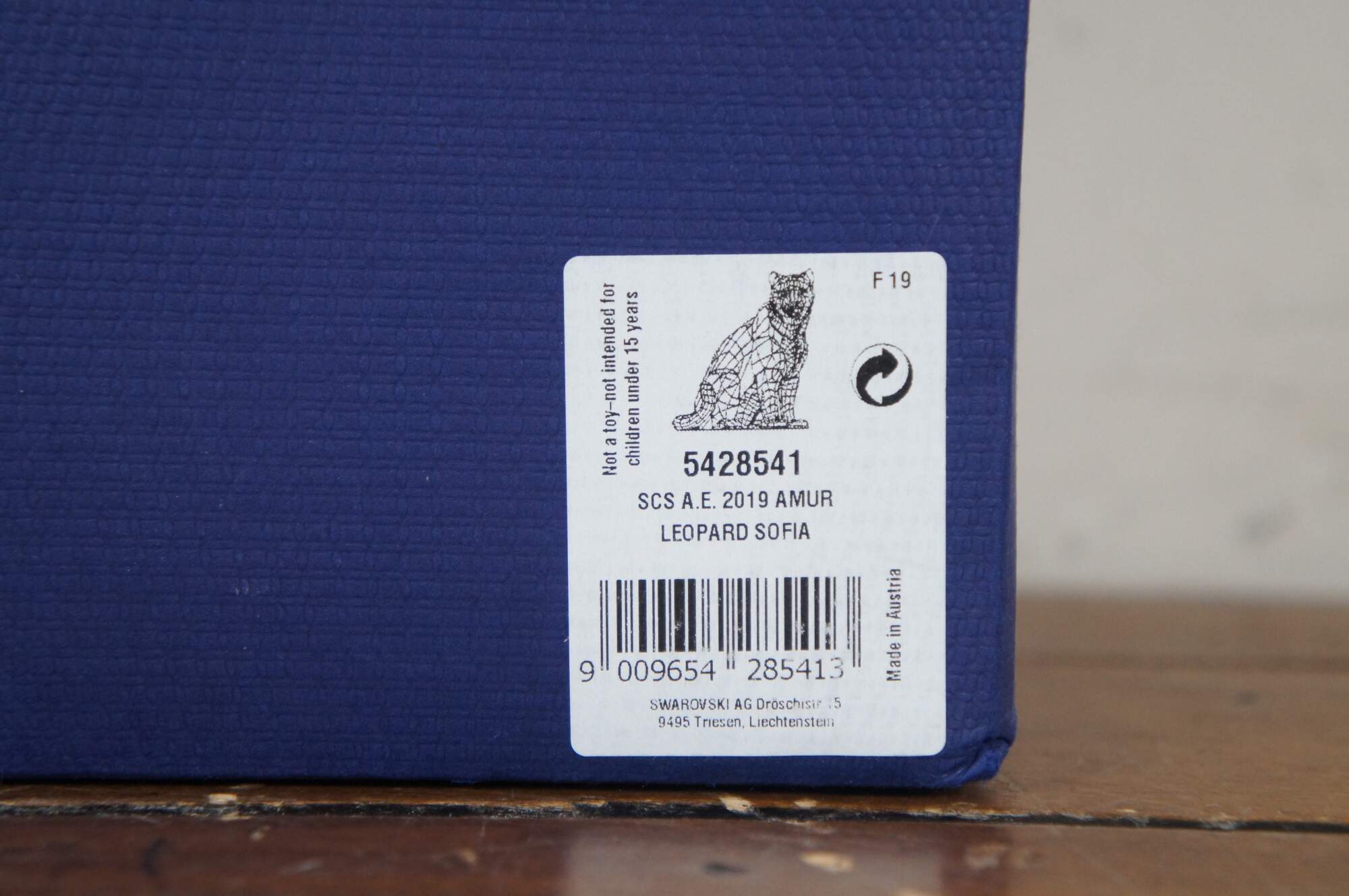 Swarovski Collectors Society 2019 Annual Edition, Sofia. Light brown crystal figurine in the shape of an Amur leopard with translucent spots, black nose, and blue eyes. Includes Certificate of Authenticity and original packaging. Made in Austria.