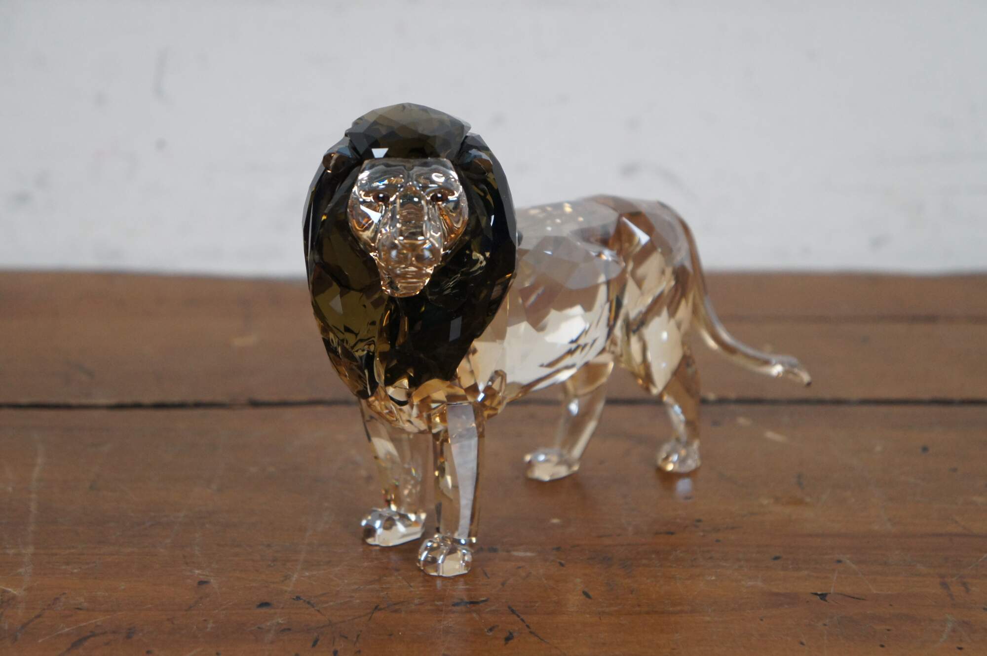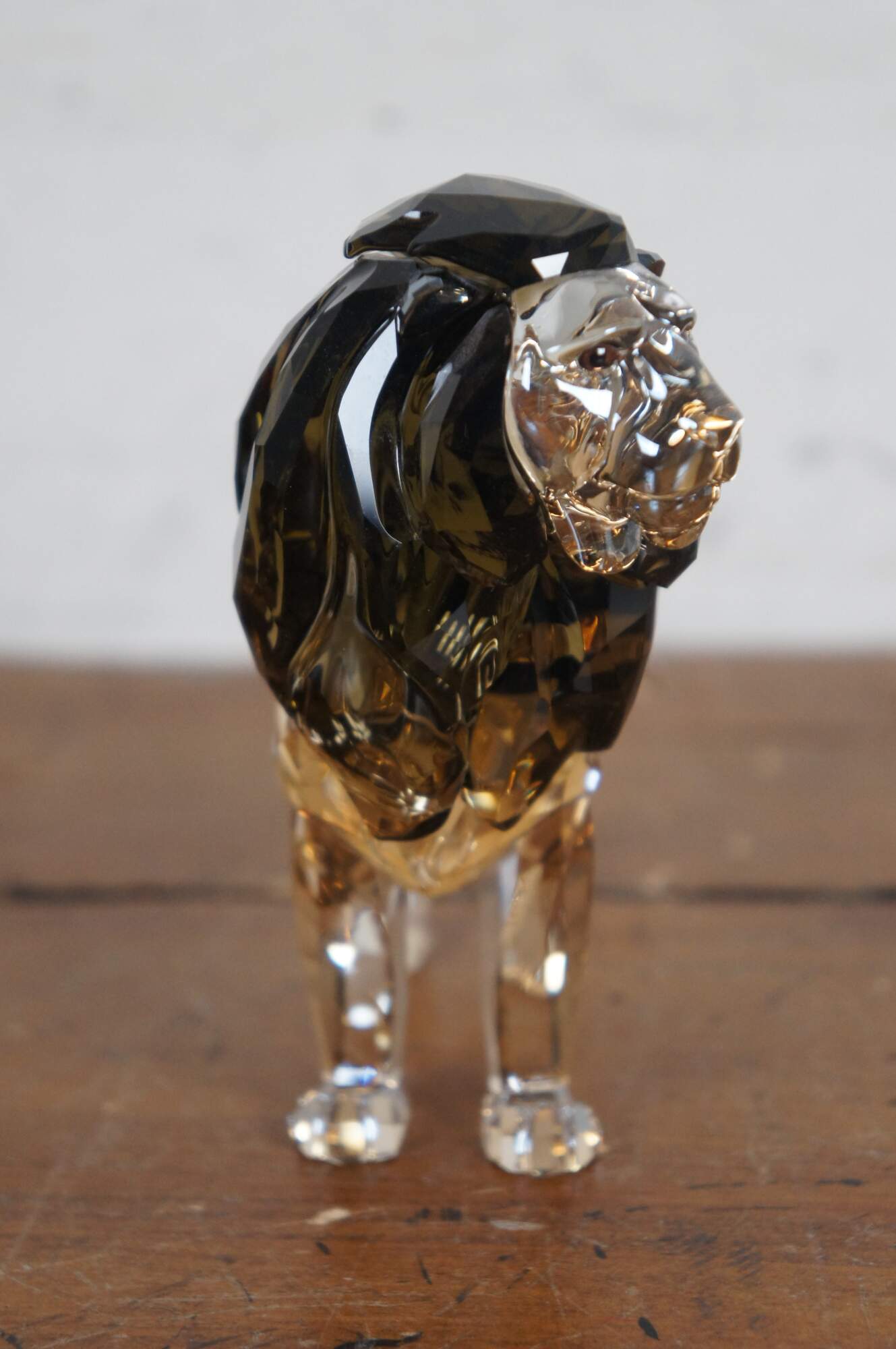 Swarovski Collectors Society 2016 Annual Edition, Akili Lion. Light brown crystal figurine in the shape of a male lion with dark brown mane and black eyes. Includes Certificate of Authenticity and original packaging. Made in Liechtenstein.