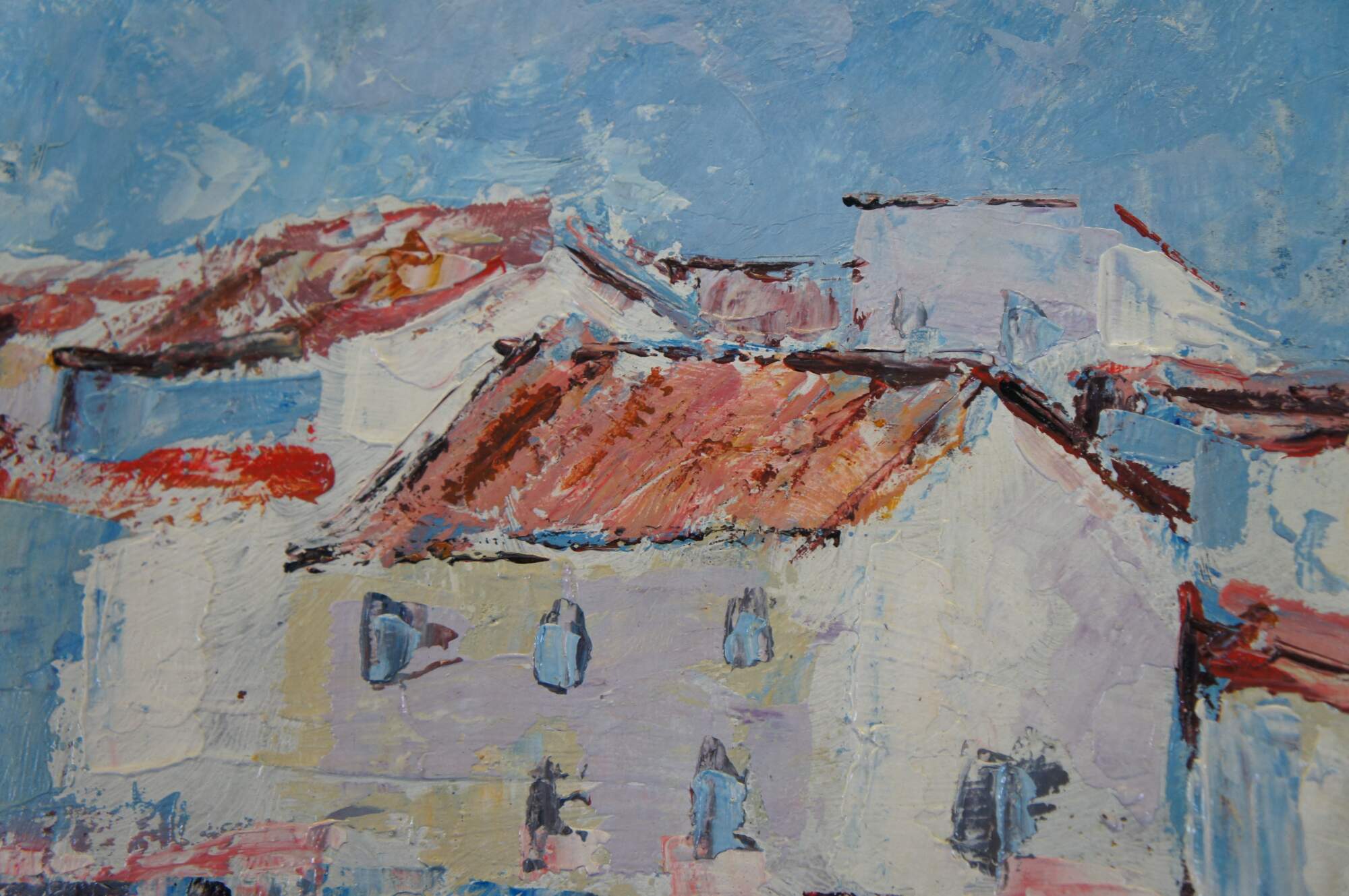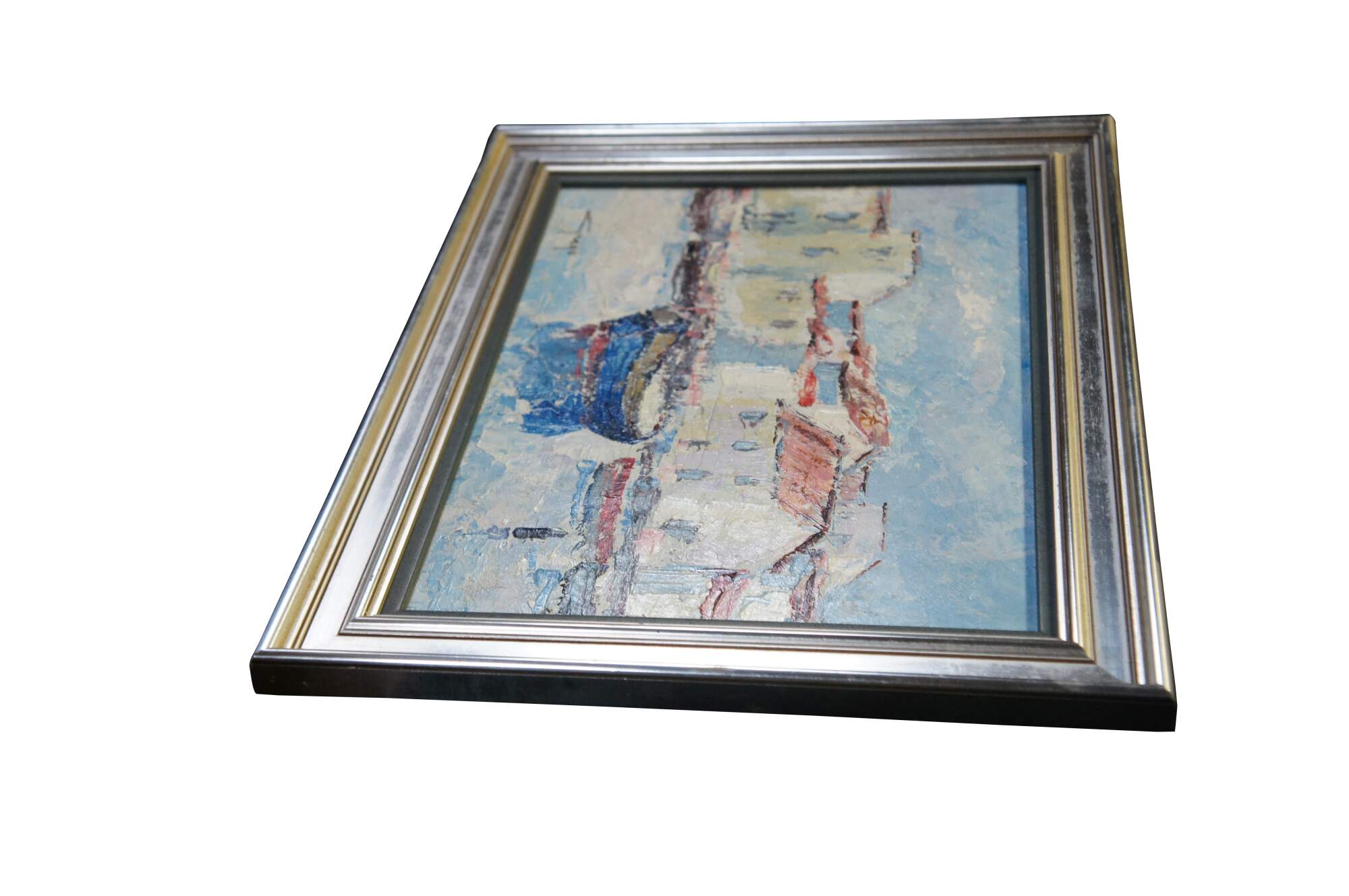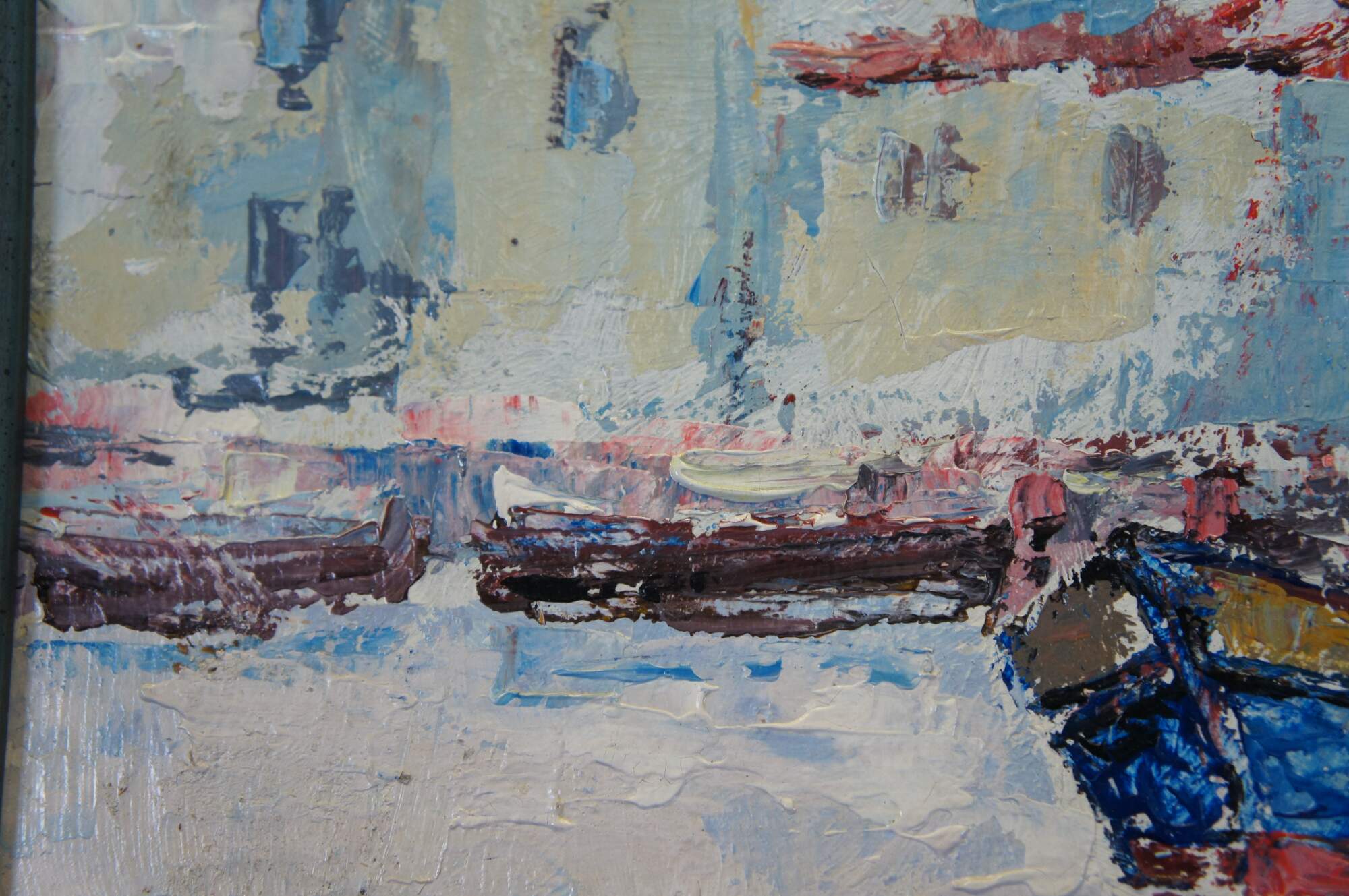 Vintage Impressionist nautical maritime seascape / cityscape oil painting on canvas by Grego. It features a port view of sailboats against a Mediterranean harbor .