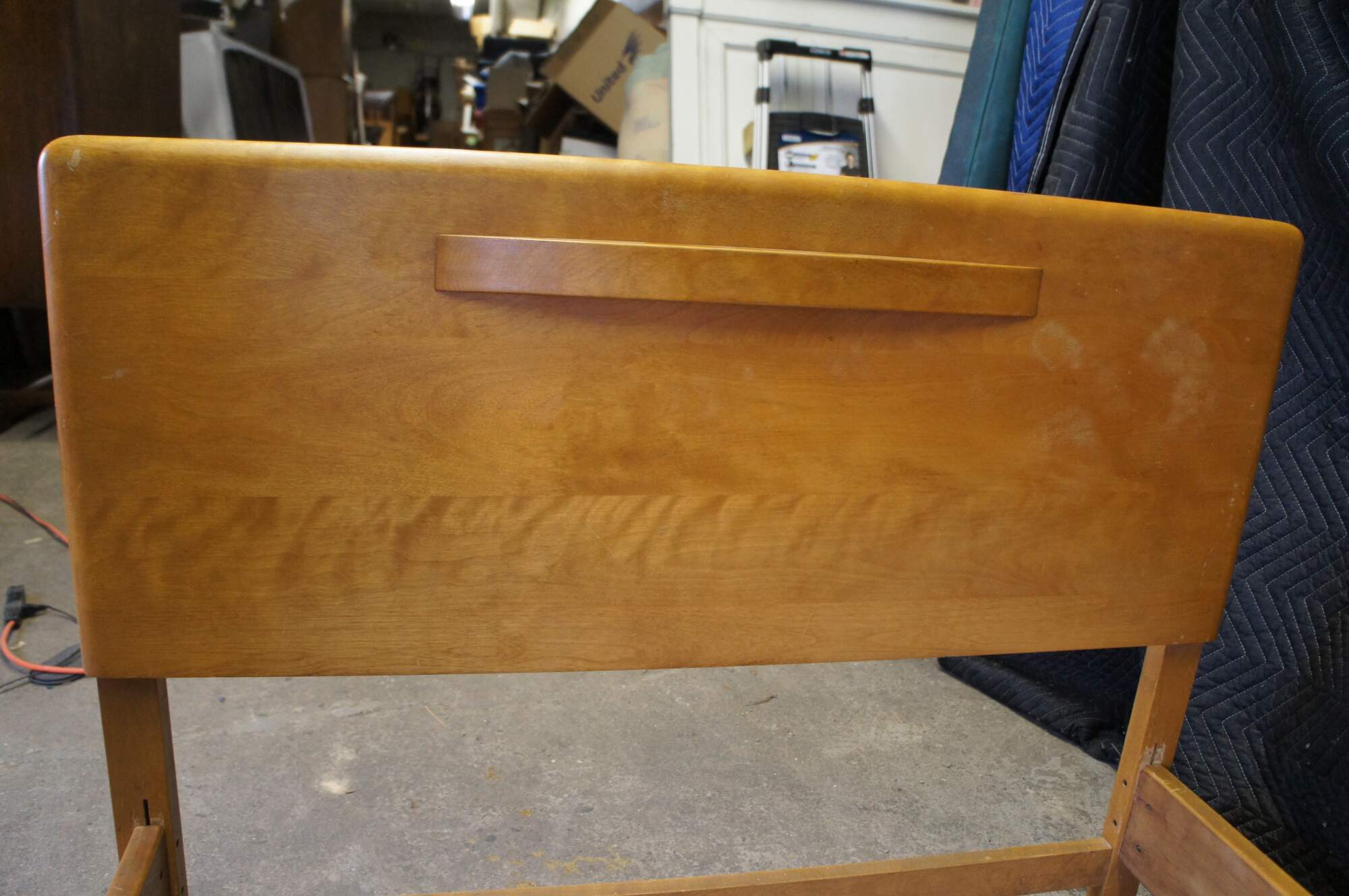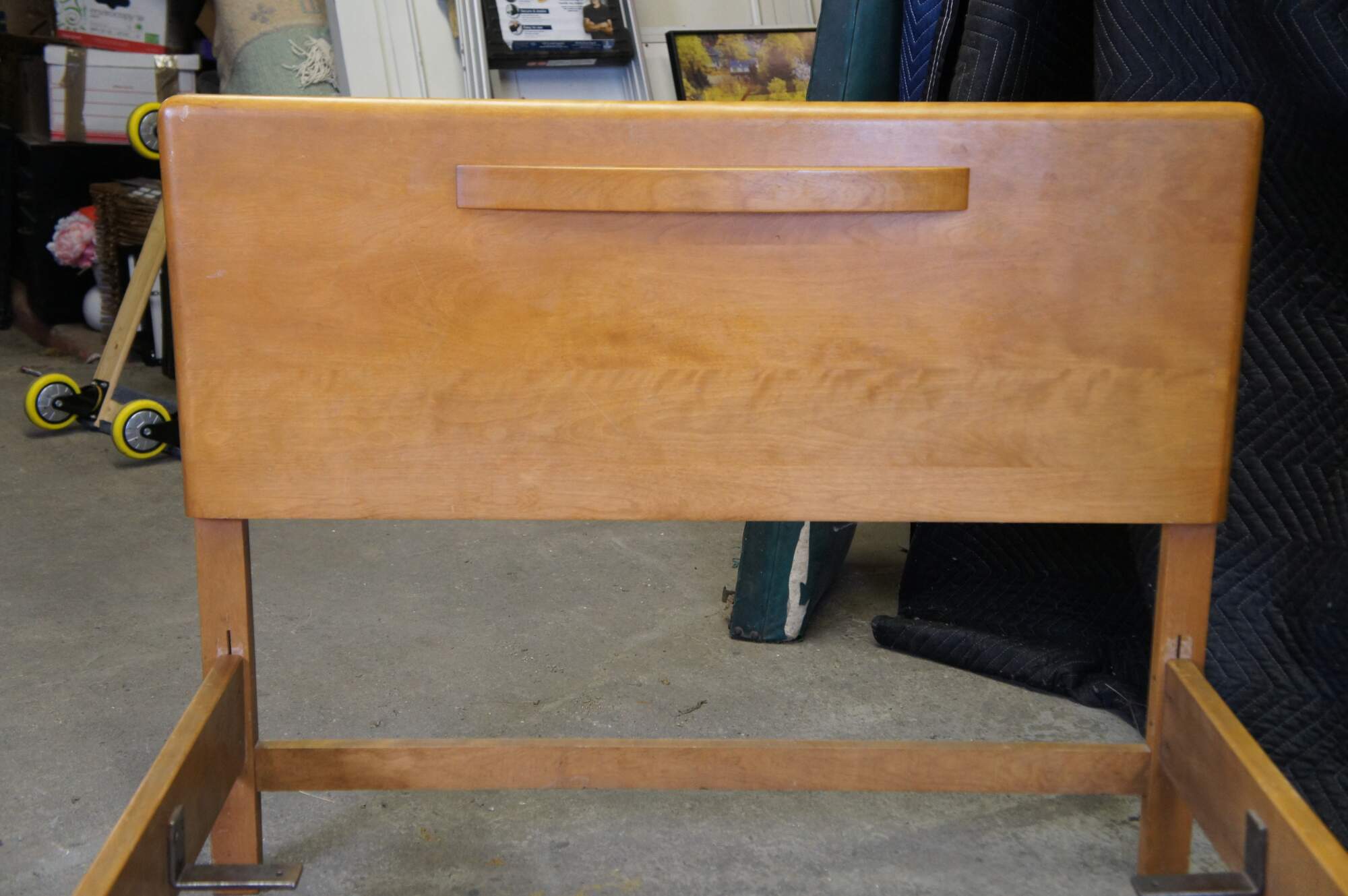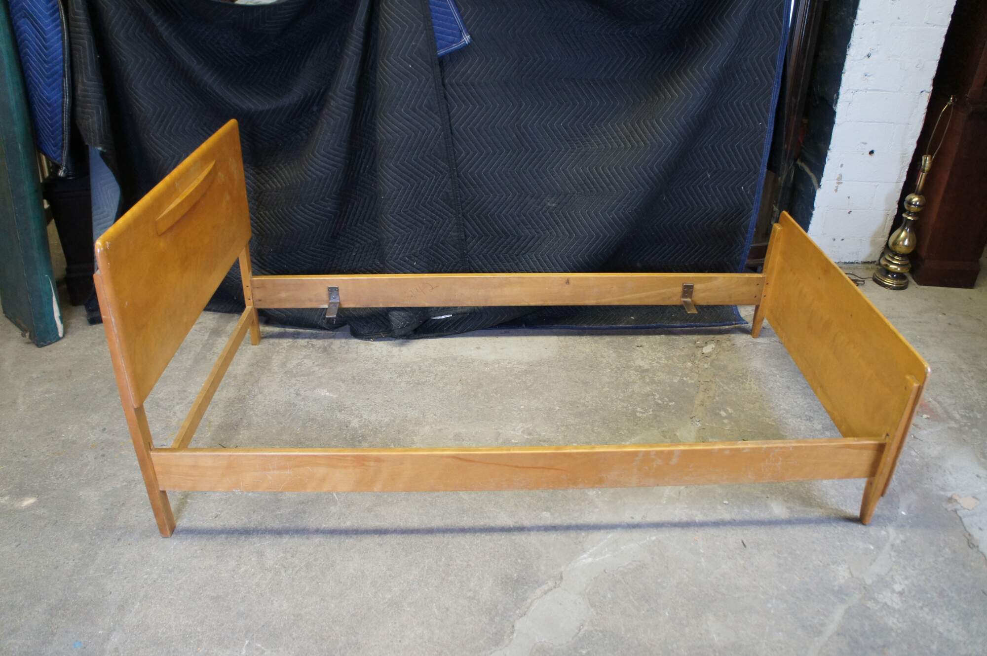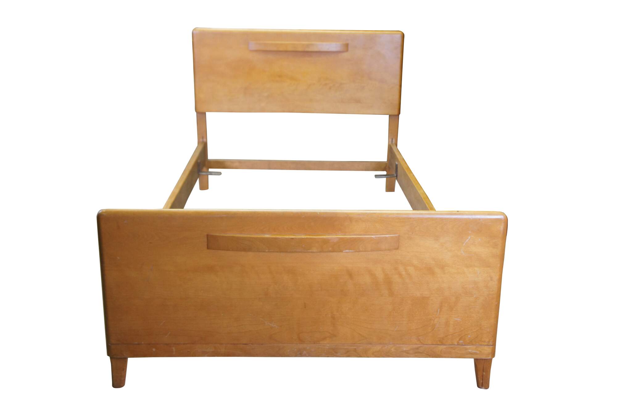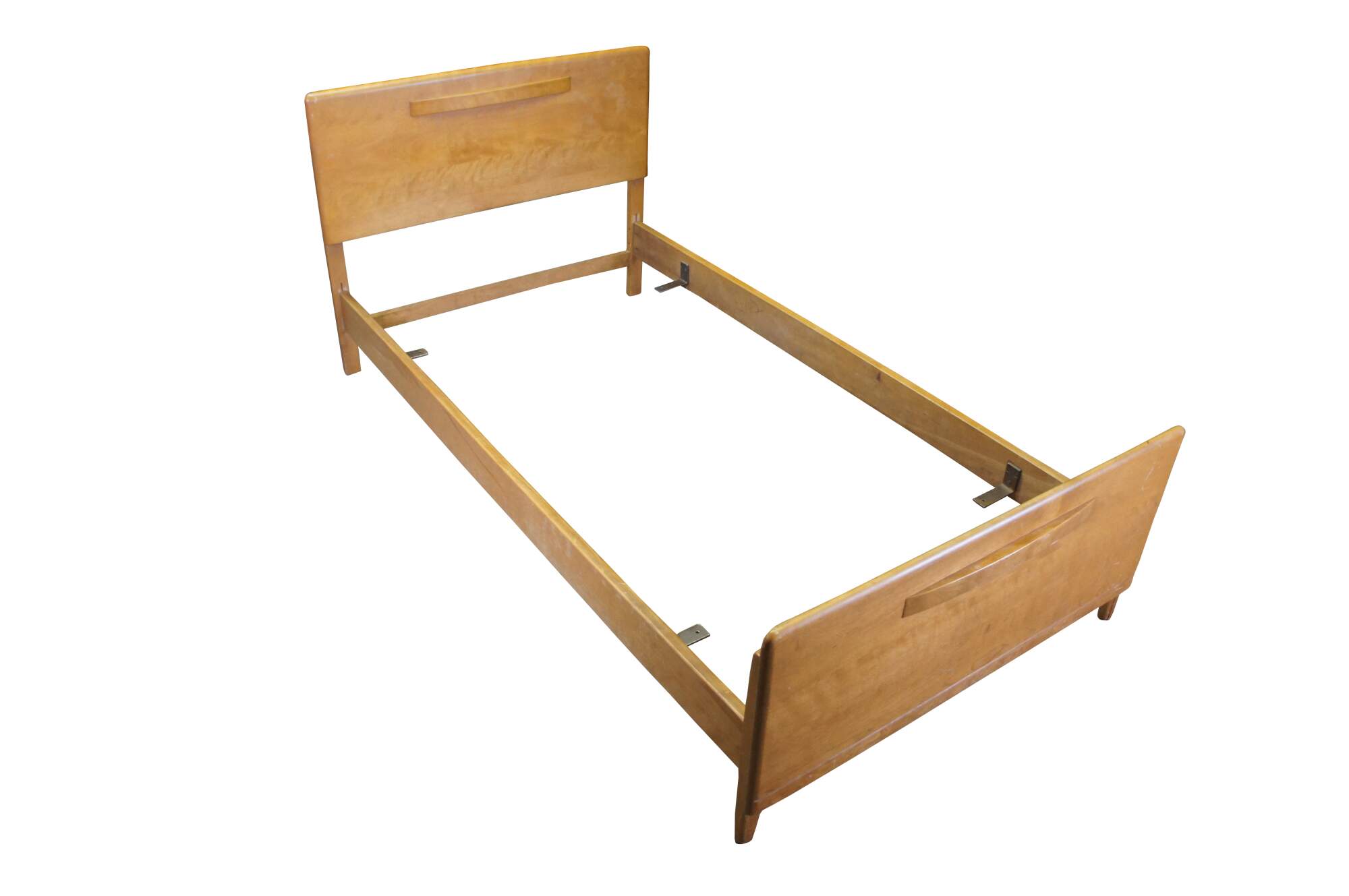 Mid century modern Leo Jiranek for Heywood Wakefield twin size bed frame. Made of maple (champagne). Rockefeller Center. CA 740.