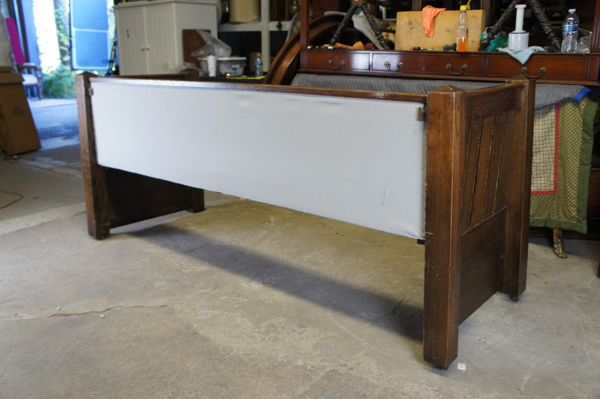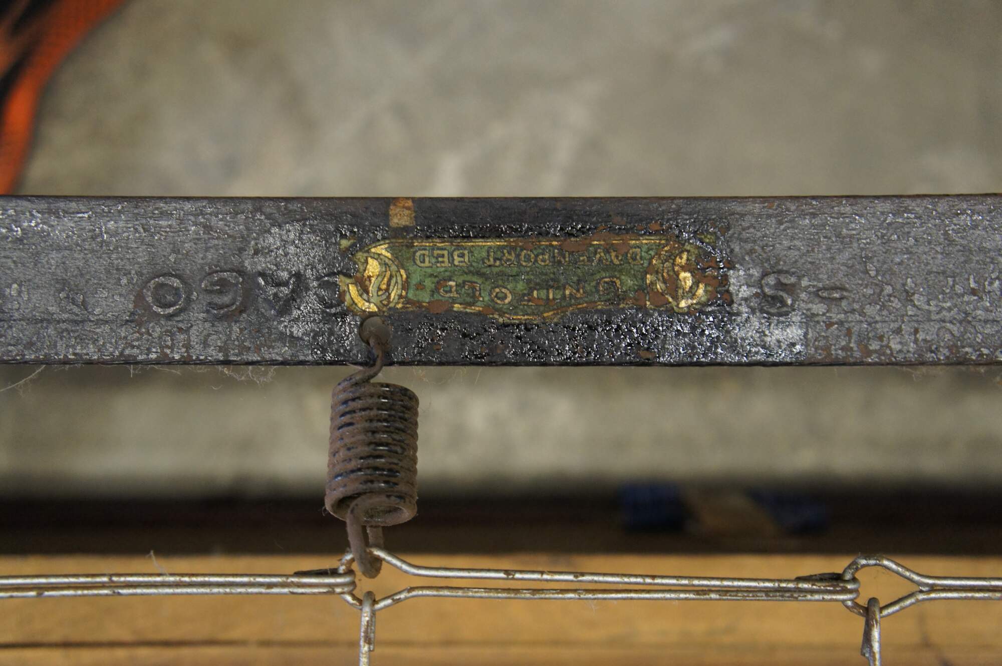 Fair antique condition, wear and distressing commensurate with age and use, scuffing, fading, no mattress, extremely heavy.