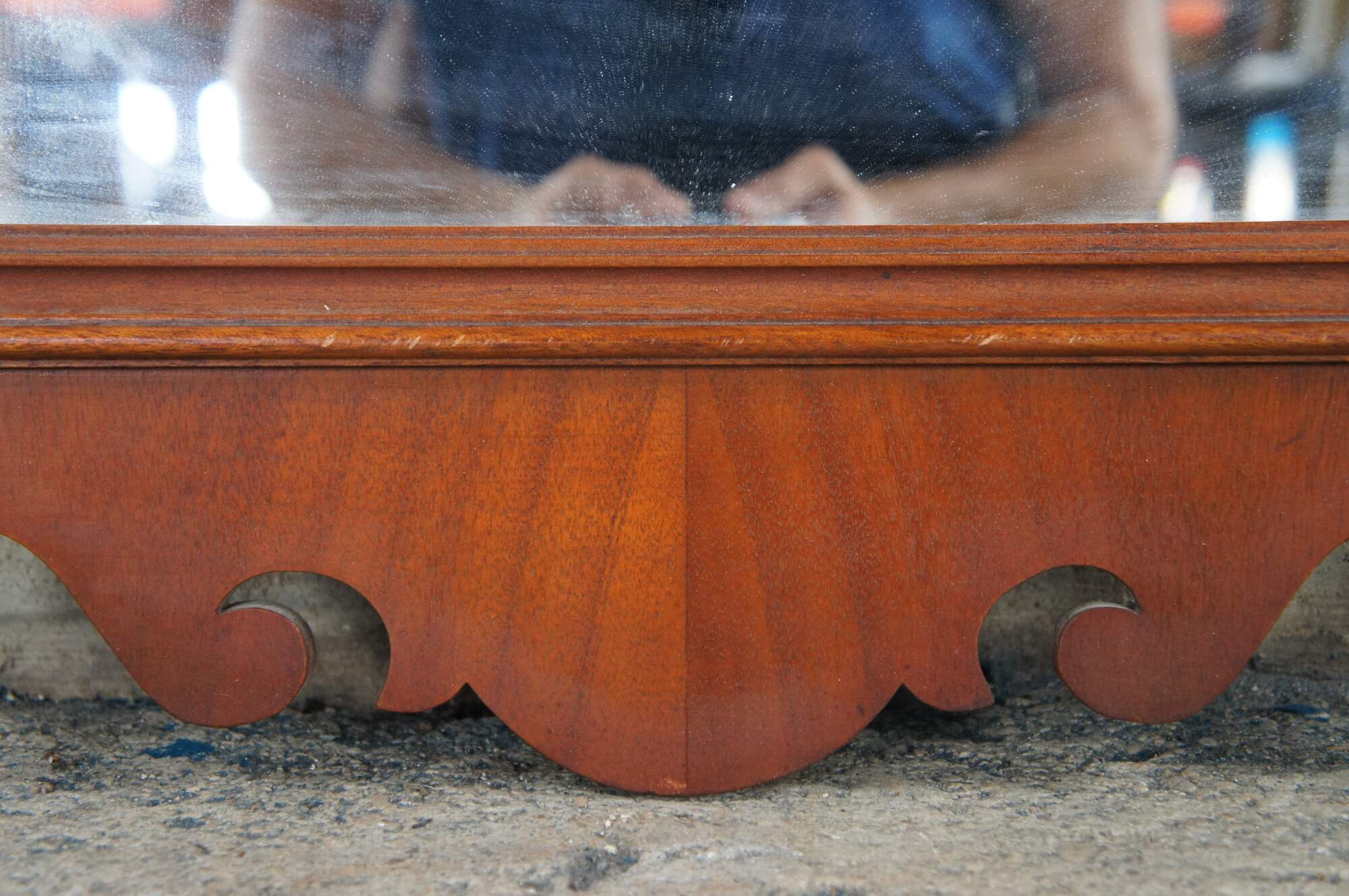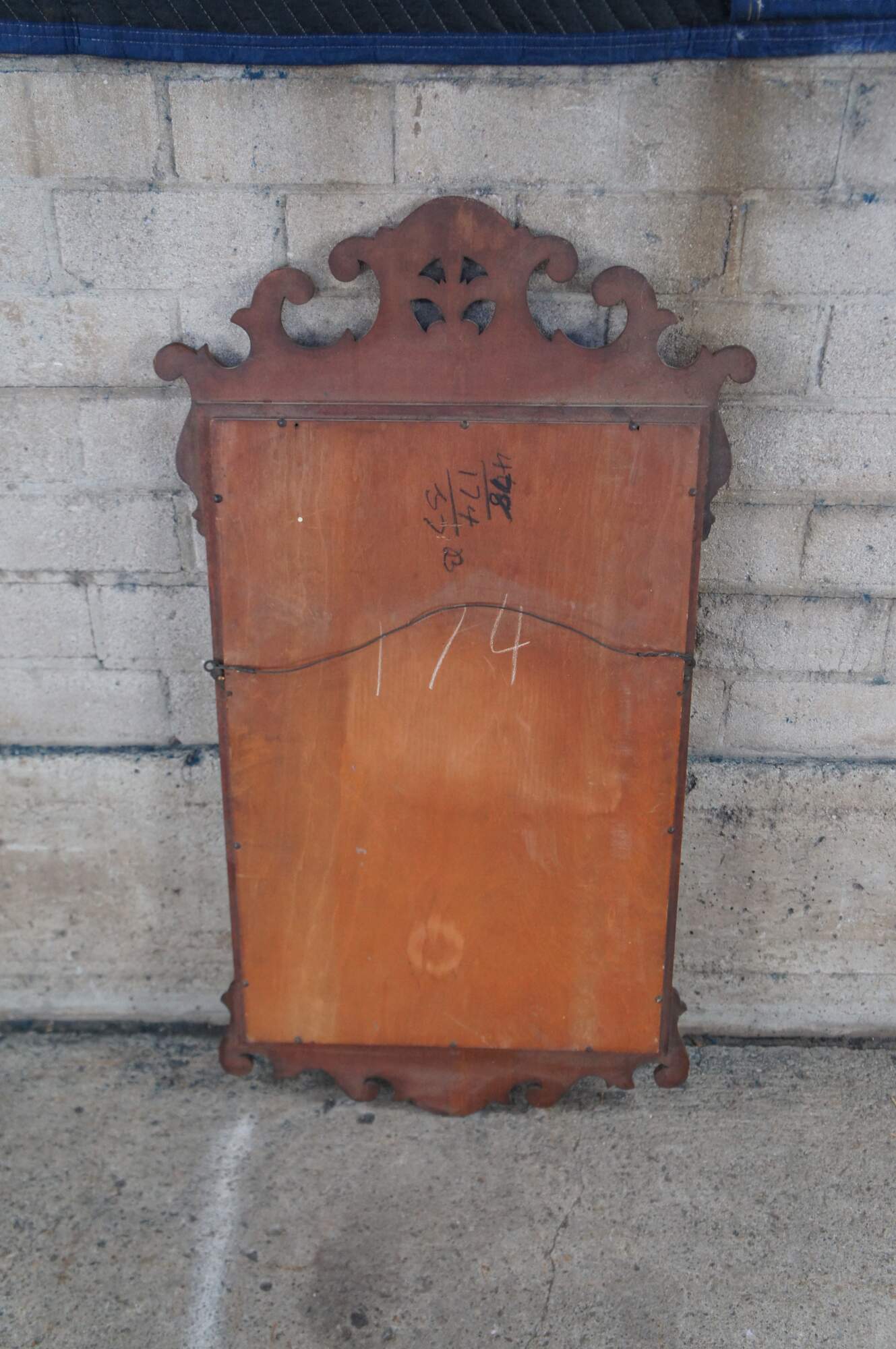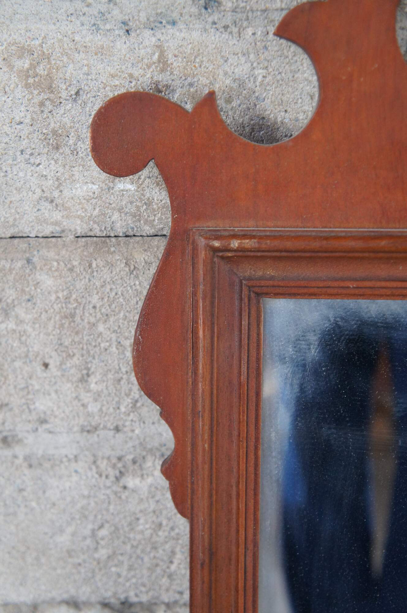 A lovely set of early 20th century Federal / Chippendale Style mirror. Features mahogany finished frames with carved and scrolled designs. At the center of each along the top is a pierced medallion with prince of wales feathers.