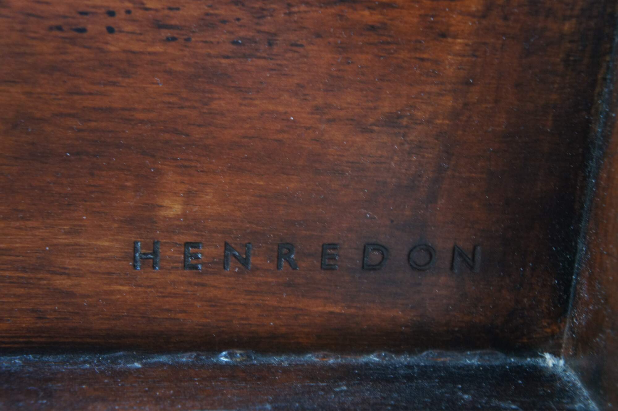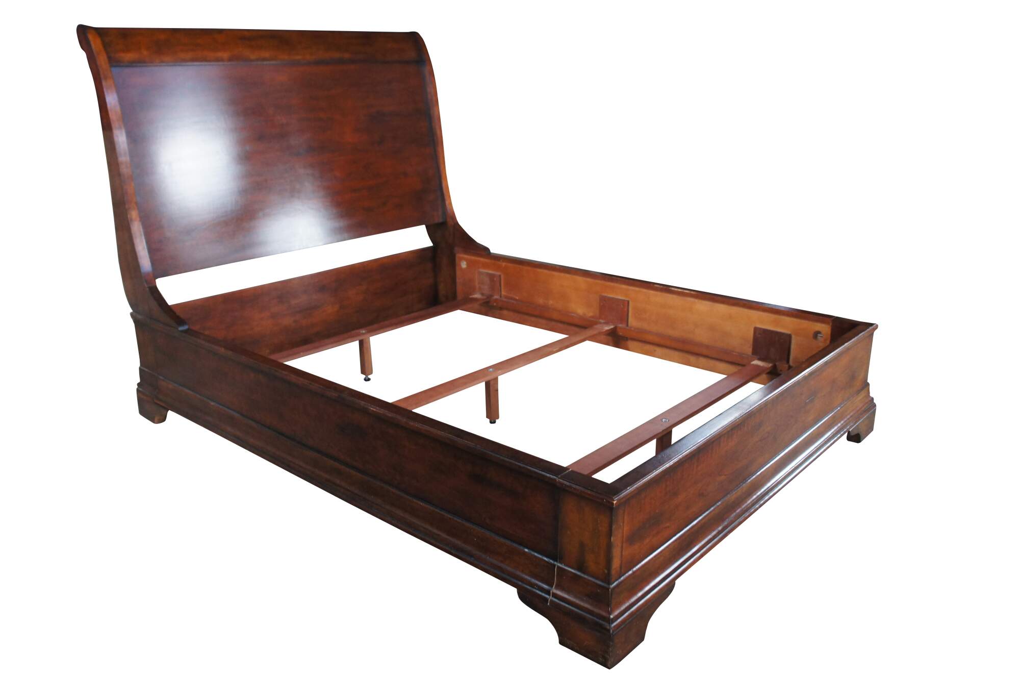 An exquisite Henredon Louis Philippe Style Queen Sleigh Bed. Made from Cavalier Cherry with a beautifully controured back over a steamlined frame with bracket feet. Henredon Furniture #6200.