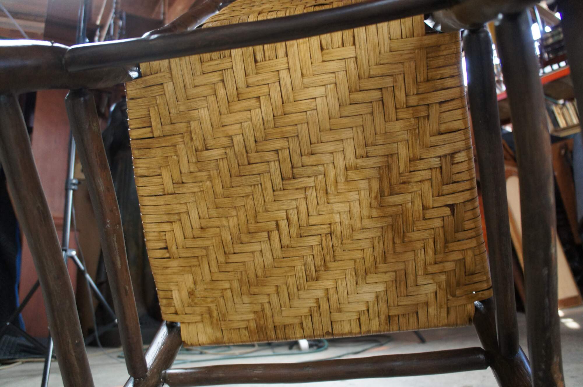 In the 1800's as pioneers traveled West across America, they discovered the useful and remarkable hickory tree. This small diameter tree grew throughout the Midwest in groups of twenty to thirty, surrounded by much larger trees. As the saplings struggled towards the sunlight above, they grew straight and tall - yet the diameter did not exceed two to three inches - even after twenty to thirty years of growth. The hardwood saplings were used for many different things (e.g. wagon wheel spokes, tool handles and furniture). The hickory saplings could be bent to fit the contours of the body, so the furniture was incredibly comfortable and strong. The inner bark strips could be woven together in a herringbone pattern to make soft yet durable chair seats and backs.
