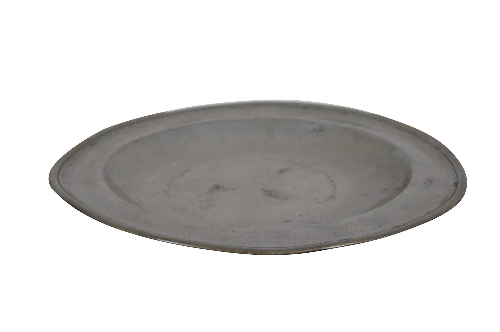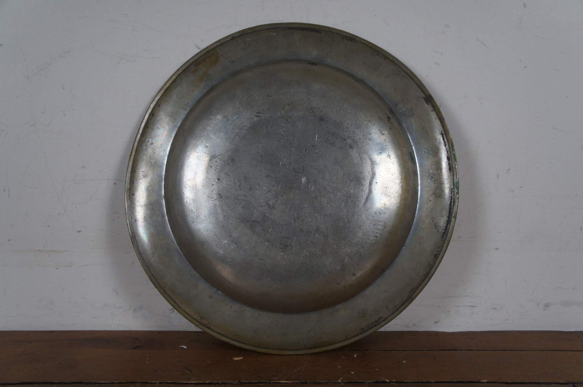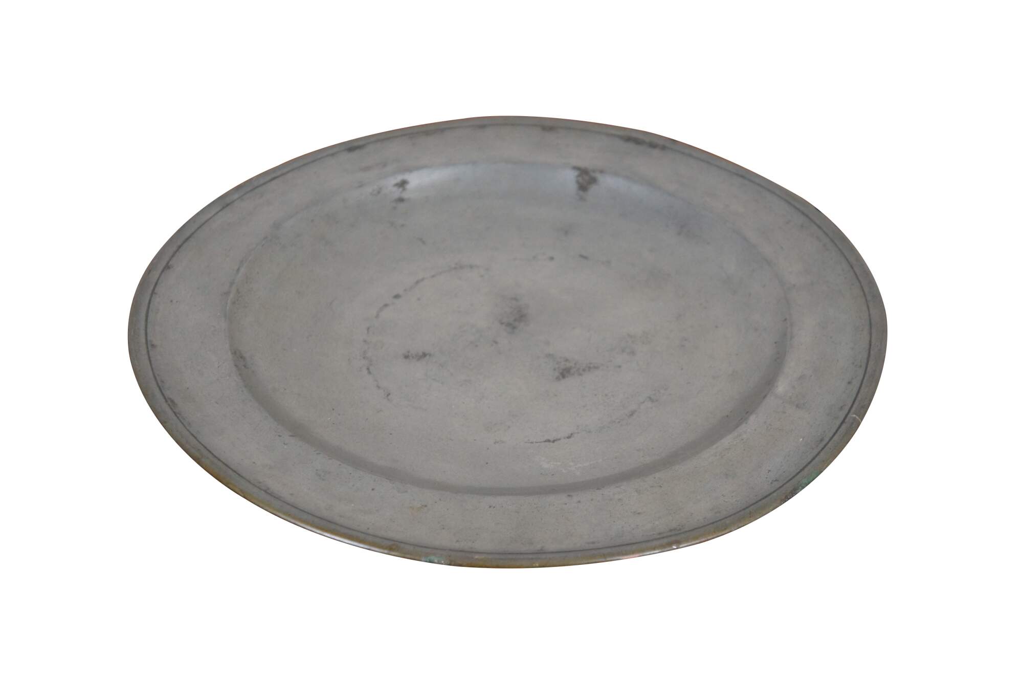 Late 18th early 19th century English Continental pewter charger / serving plate by Townsend & Compton (Thomas & Townsend Compton) of London. Round shape with recessed center and plain rim.