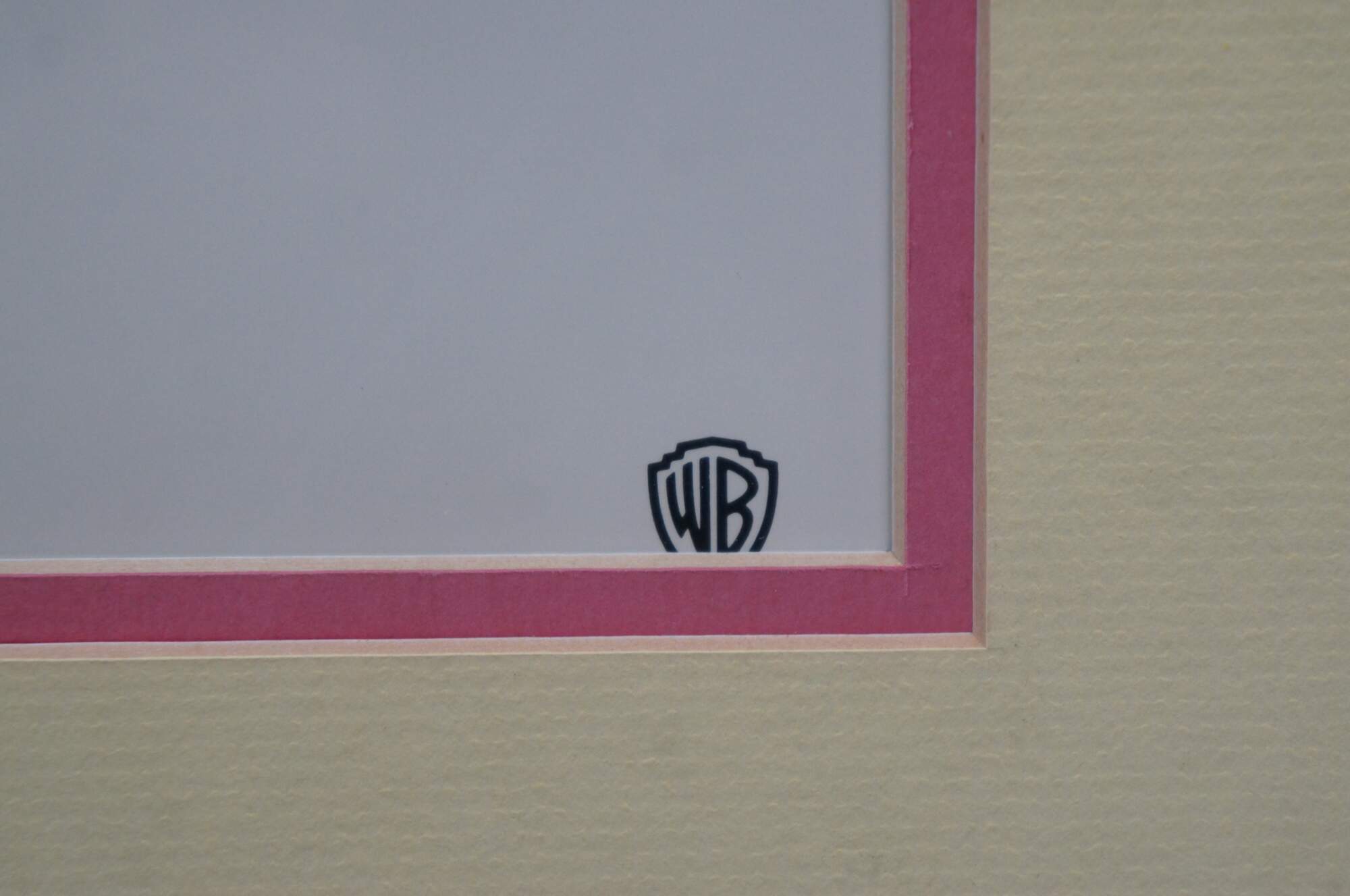 Vintage Warner Brother's tribute poster titled "Spechless," commemorating the death of voice actor Mel Blanc (1908-1989), depicting a selection of Looney Tunes characters bowing their heads to a lone microphone. Beveled burl wood frame with gilt carved detail; yellow and red double mat. Bugs Bunny, Daffy Duck, Pepe Le Pew, Sylvester the Cat, Yosemite Sam, Foghorn Leghorn, Porky Pig.