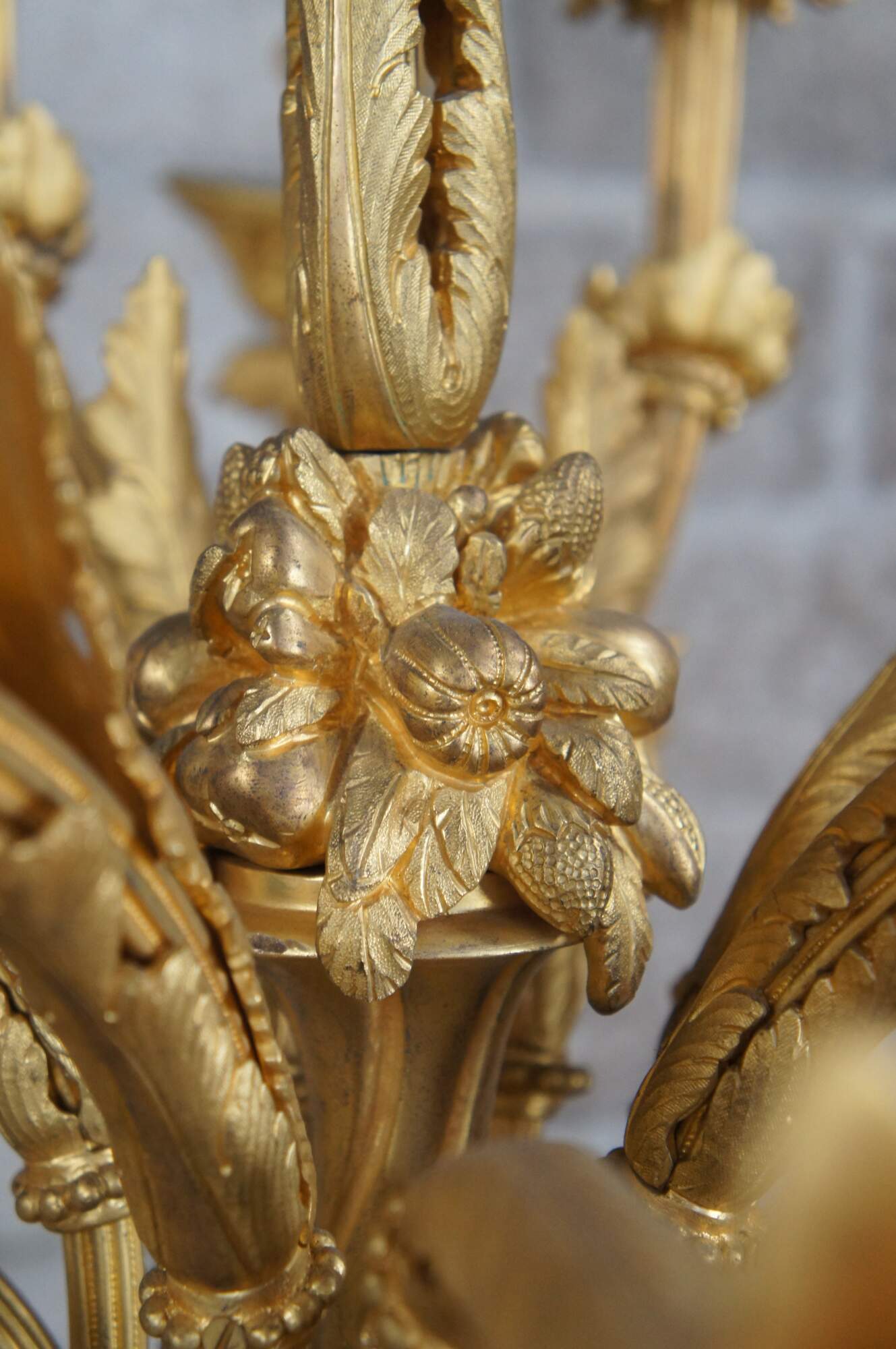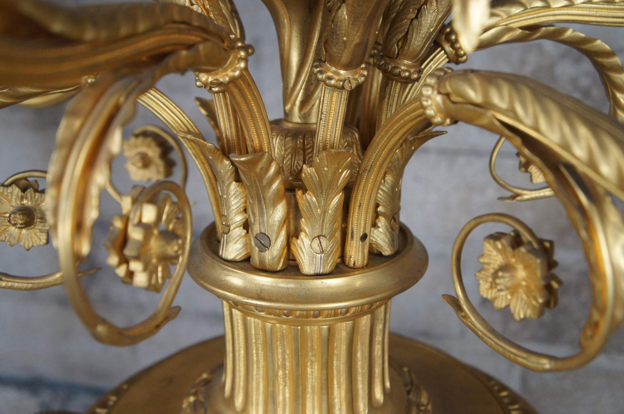 Good Vintage Condition; Gentle wear from use and age. A few missing leaves at the center where the candelabra arms tie in. A few scratches to the vase.