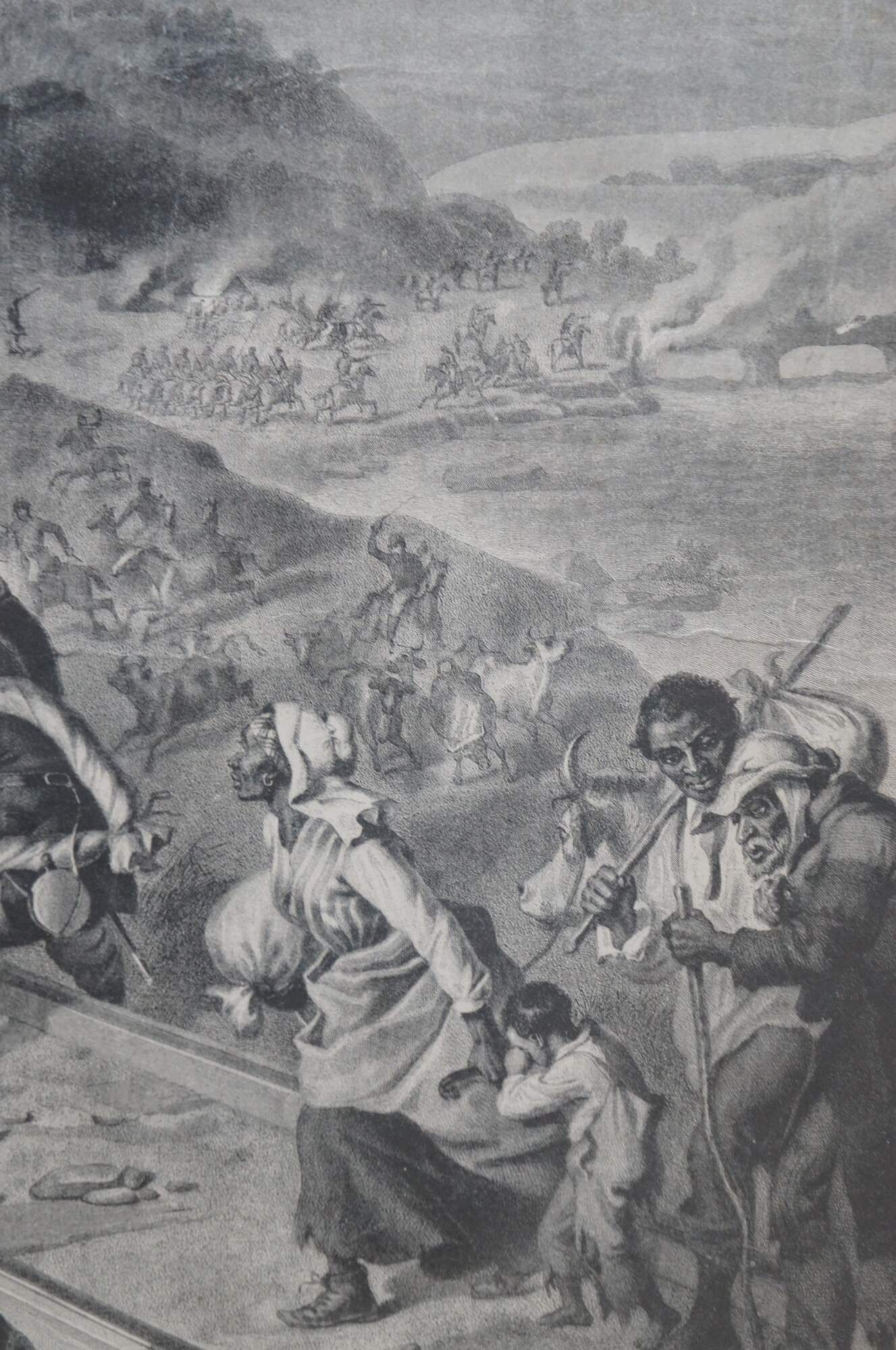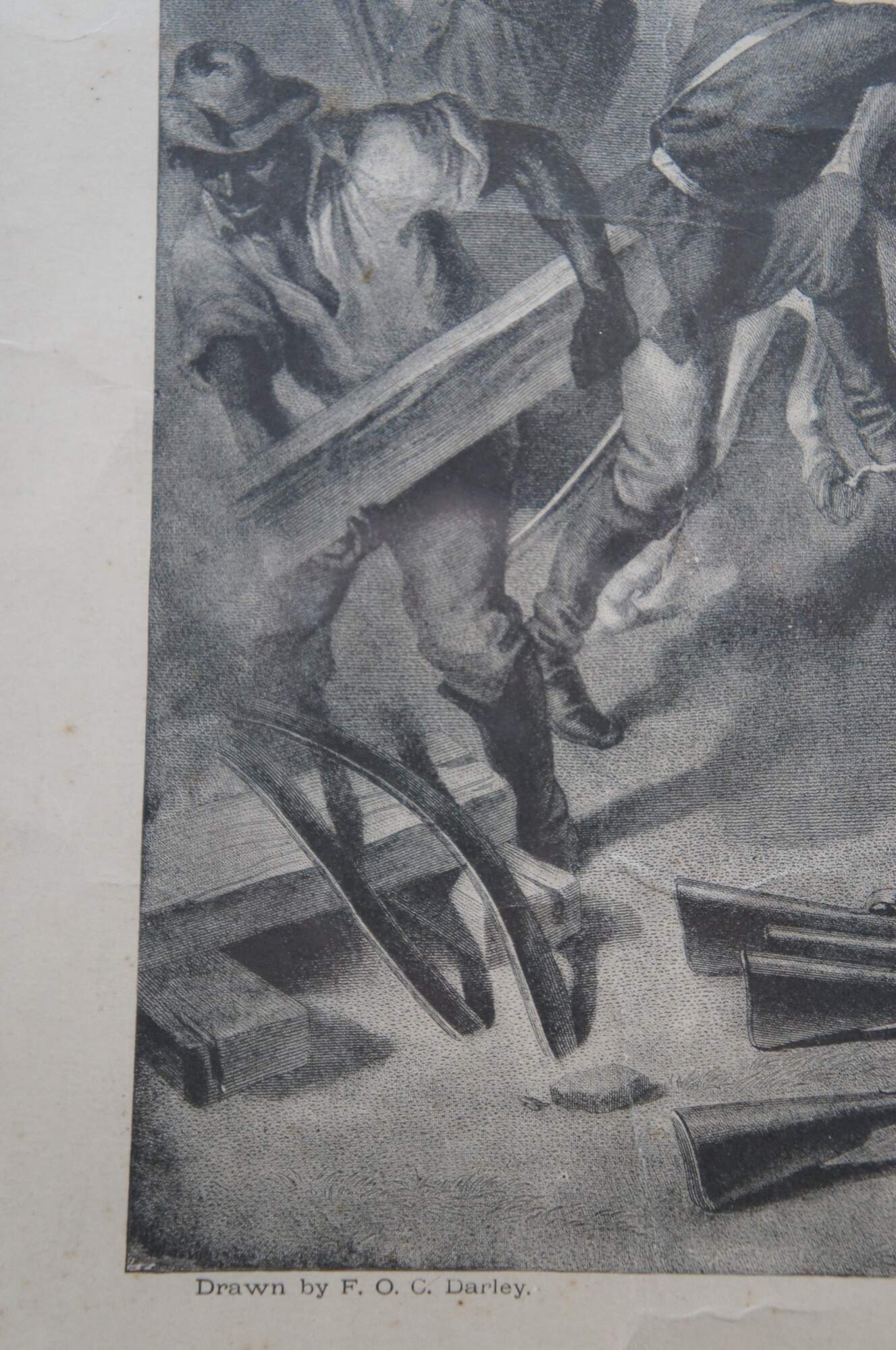Antique late 19th century engraving of "Sherman's March to the Sea" - Drawn by F.O.C. Darley - Published by H.H. Willes, Hartford, CT - Copyright 1883 by J.P. Fitch. Plain wood frame.