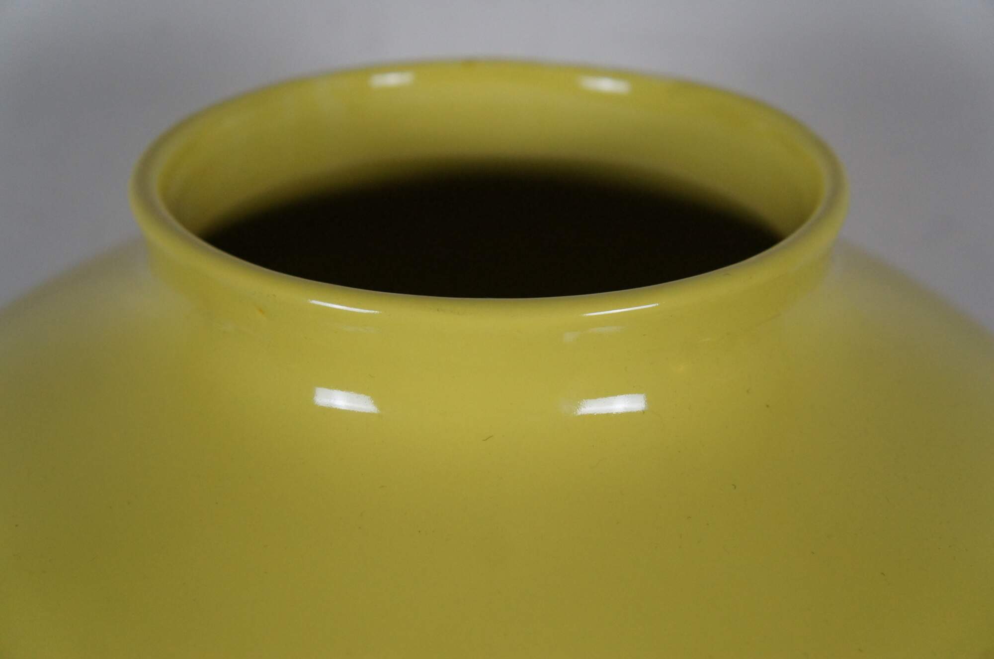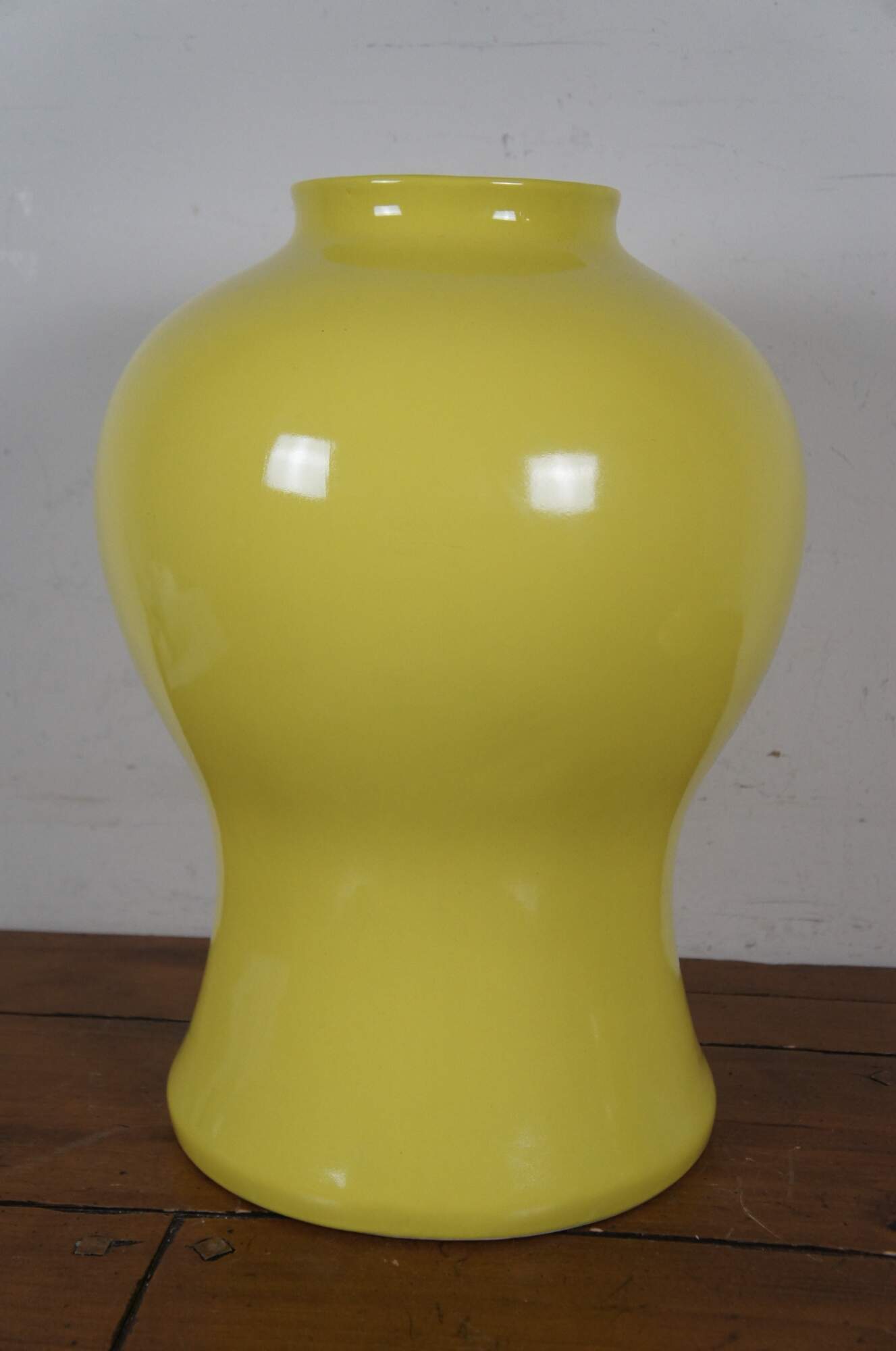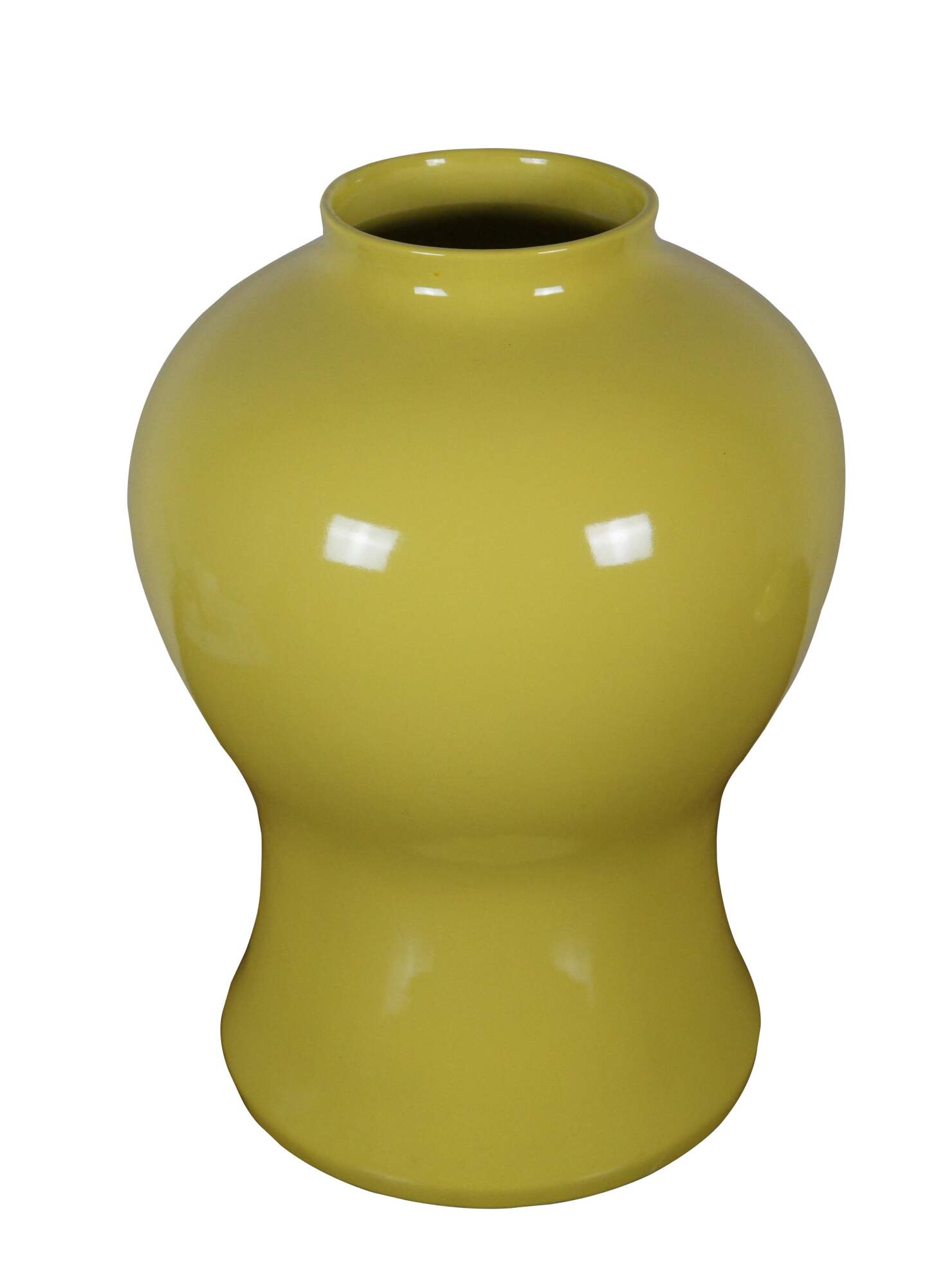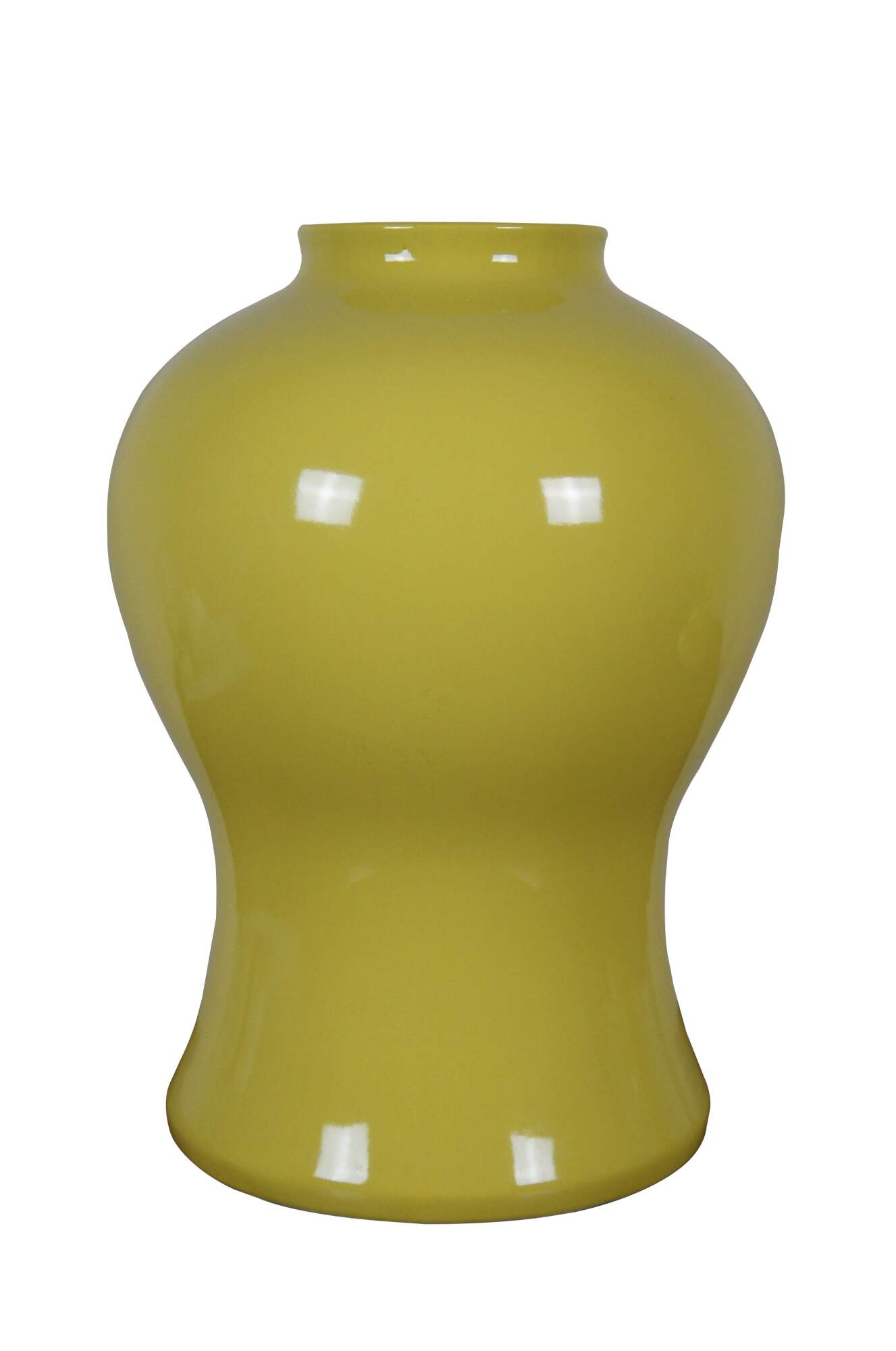 Global Views Colonial Williamsburg Ginger Jar, in Yellow. Made from ceramic inspired by the fluted urn-shaped finials that crown a green japanned bedstead in the Governor’s Palace in Colonial Williamsburg’s Historic Area. No lid.