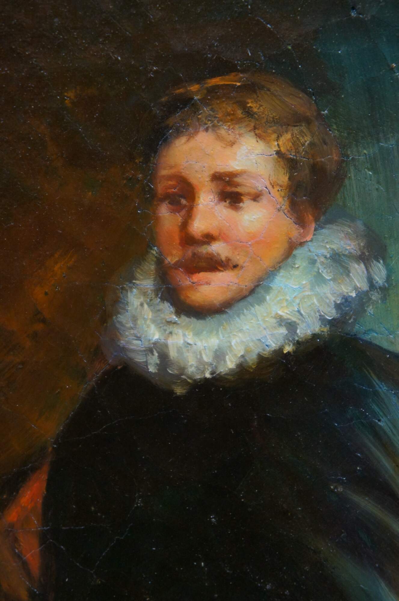 "Jacob (aka Jacques) Jordaens was born in Antwerp, Belgium in 1593. In 1607 he entered the studio of Adam van Noort, whose daughter he later married. In 1615 he became a member of the Guild of Saint Luke, and in 1621, its President. He painted only a few portraits, among them his well-known self-portraits. For the most part he worked on large and ambitious decorative projects, employing a staff of students and assistants. Born in another age or in another country, Jordaens might have been considered a great painter. But Vermeer, Rembrandt, Rubens and Van Dyck were all famous in the Low Countries at the same time as Jordaens and so he took a back seat to them. Painters of the time helped each other out on the monumental canvases they painted and some scholars believe that approximately thirty paintings and seventy drawings attributed to Rubens were really Jordaen's work. He died in 1678, the same day as his daughter. " (Source: askART)