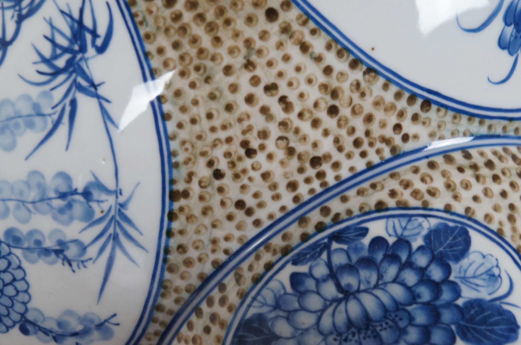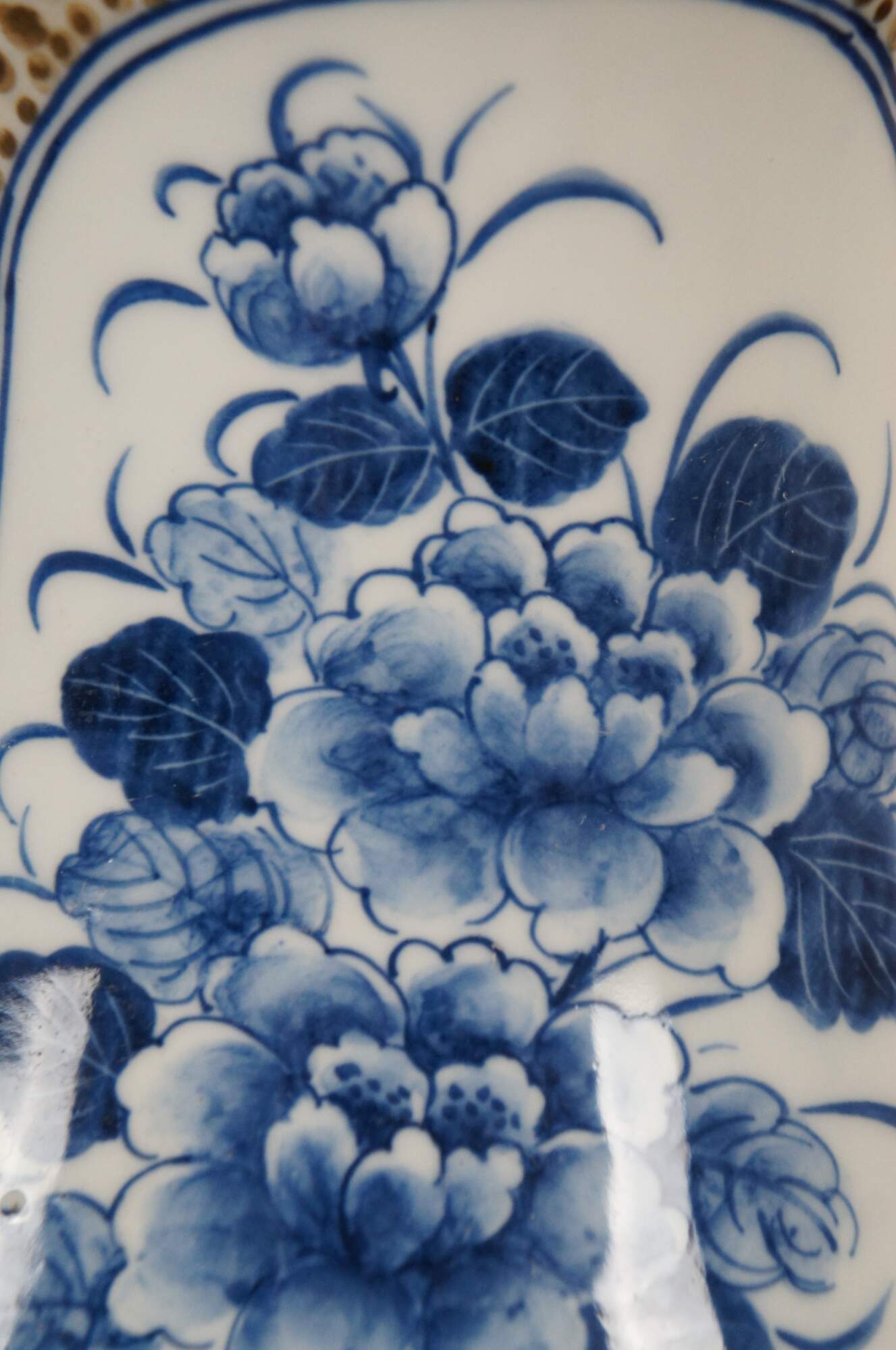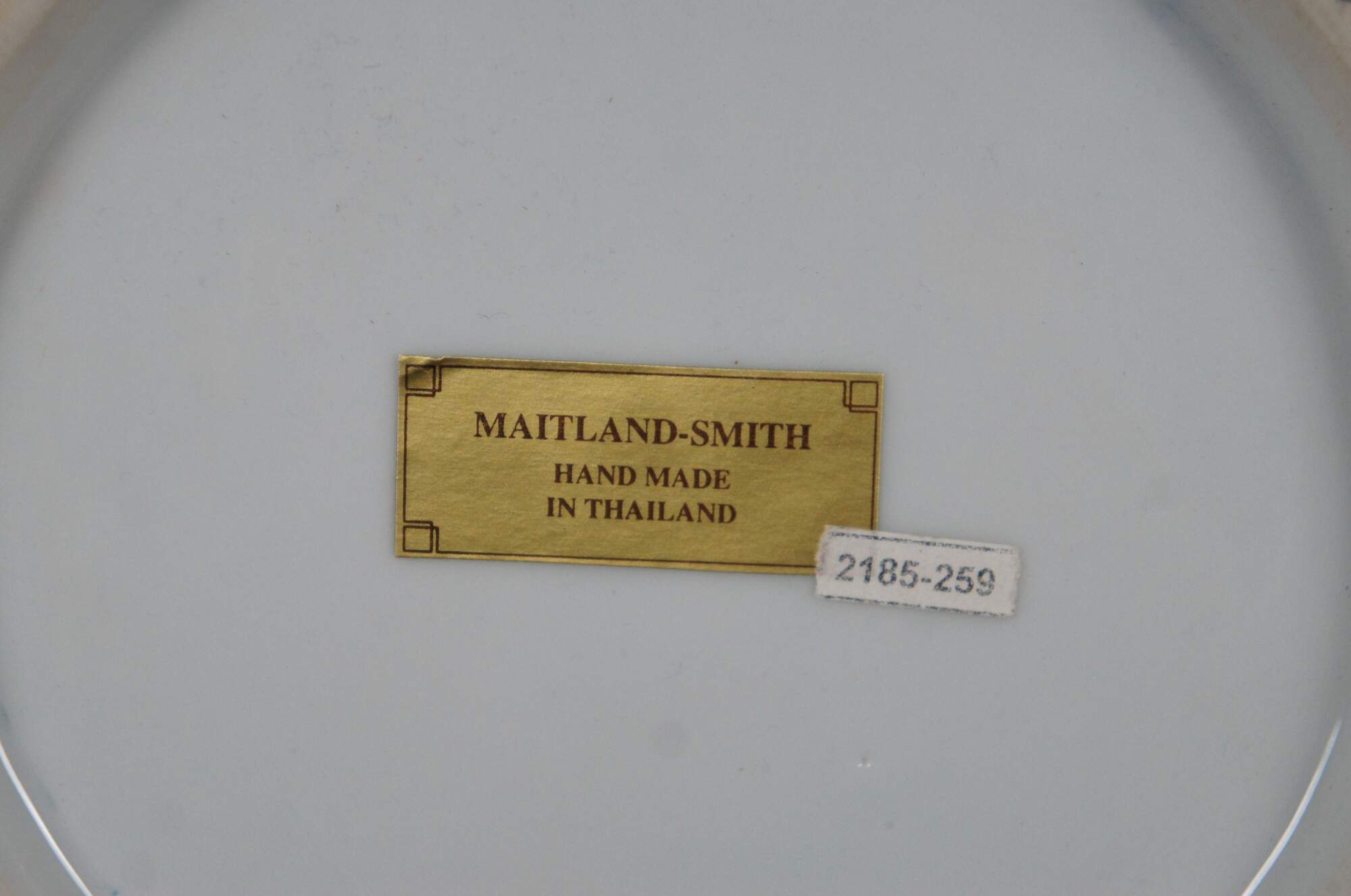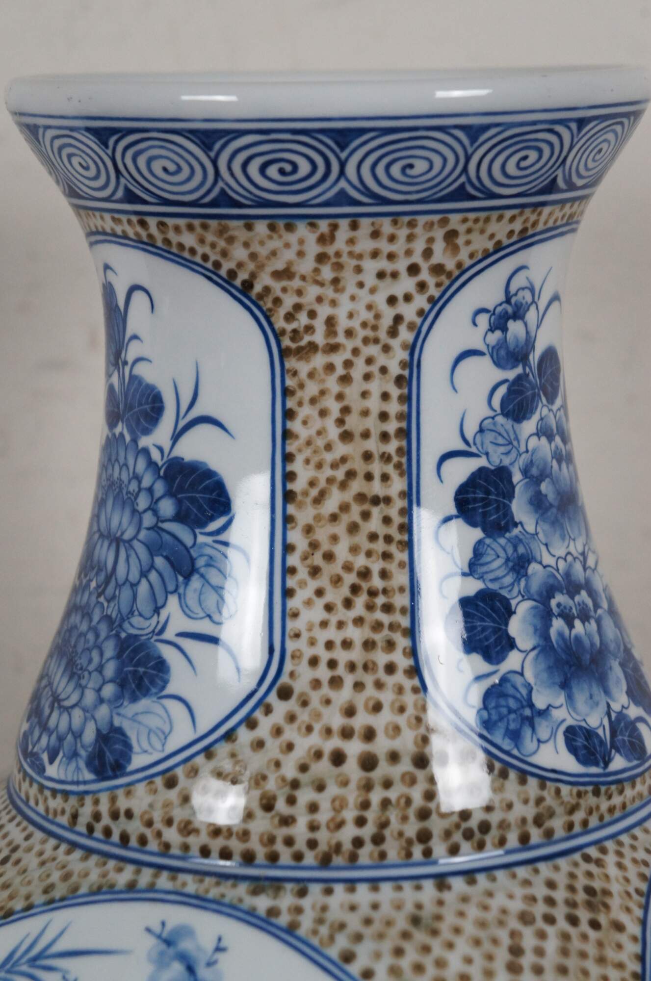 Late 20th century porcelain vase / urn by Maitland Smith. Features round panels of chinoiserie floral designs, framed in a background of speckled brown and a pattern of spirals around the rim. Hand Made in Thailand. 2185-259.