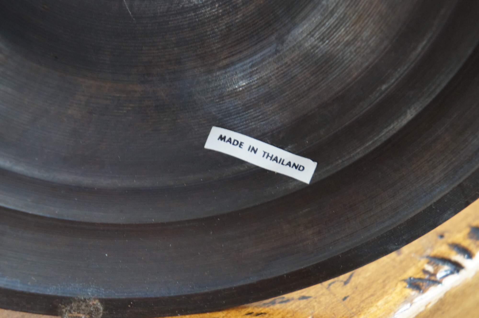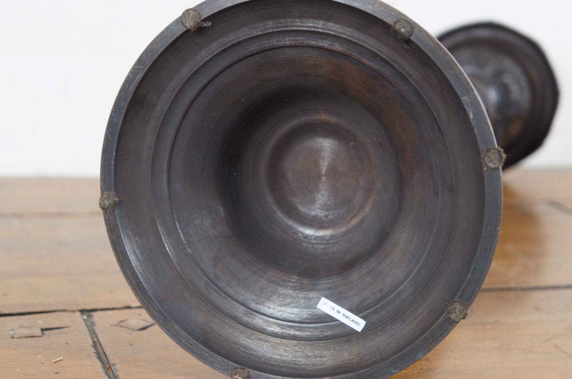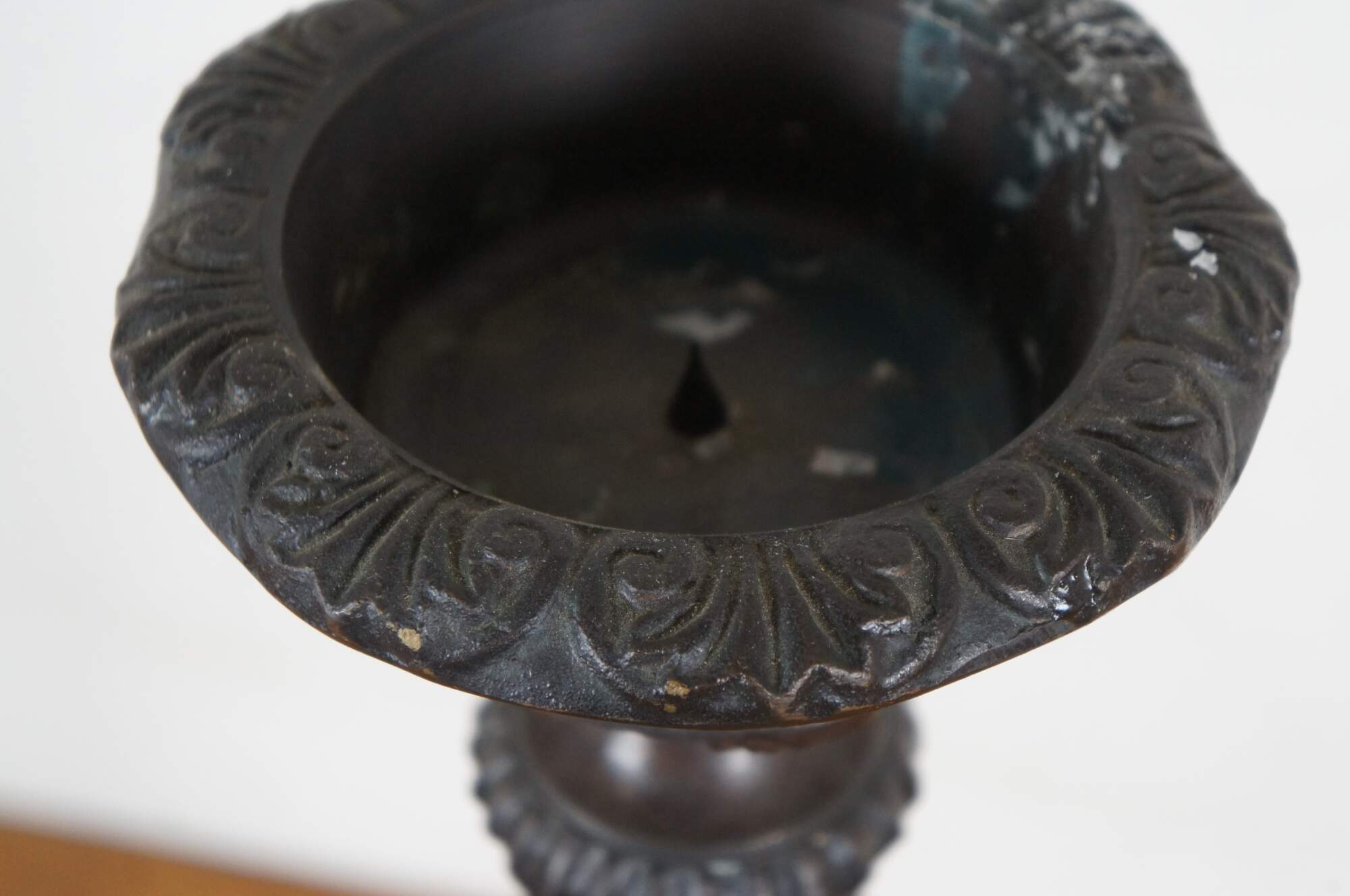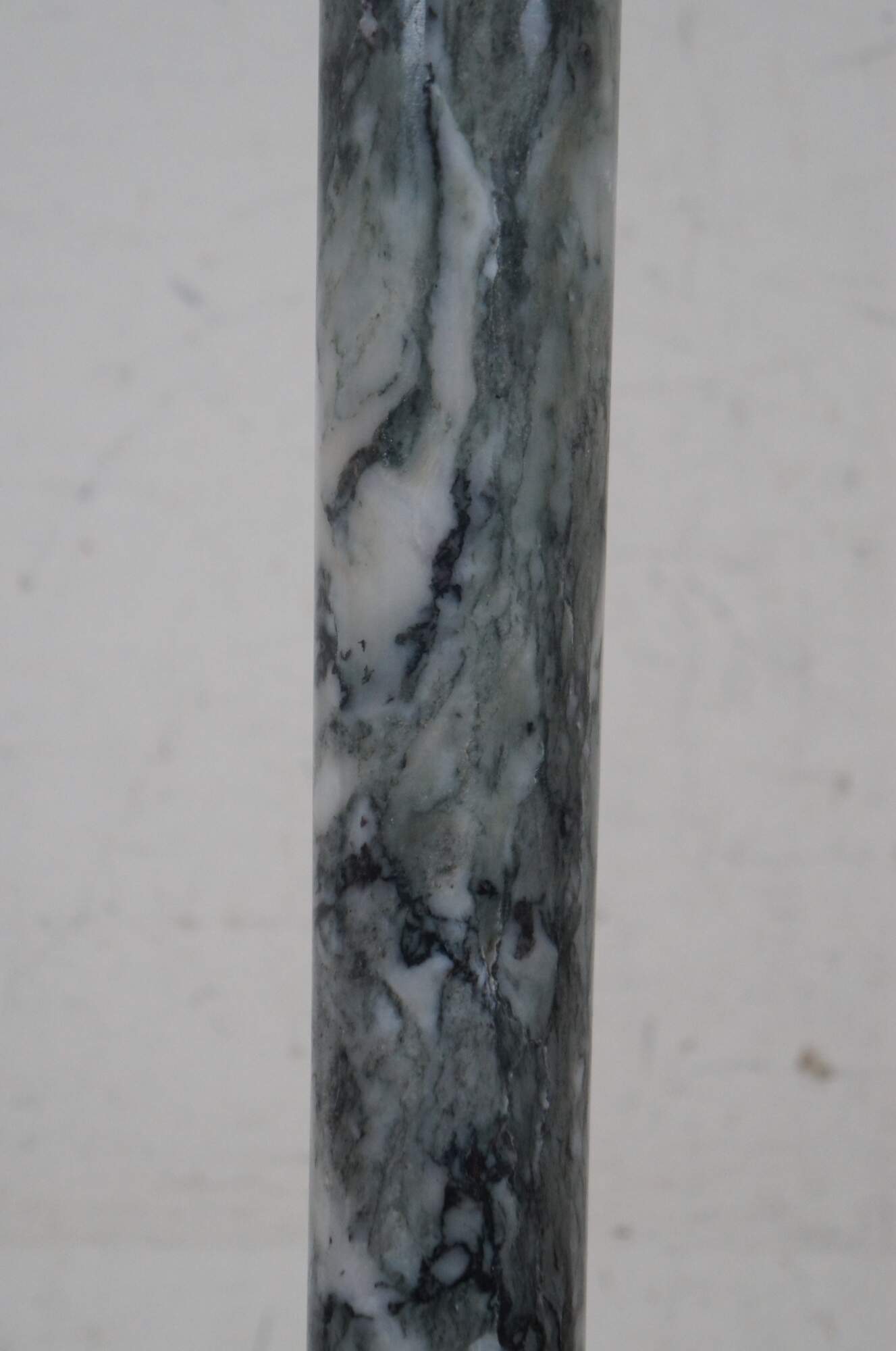 Late 20th century candle holder. Features a Baroque Classical design with a marble column center flanked by ornate bronze. Made in Thailand.