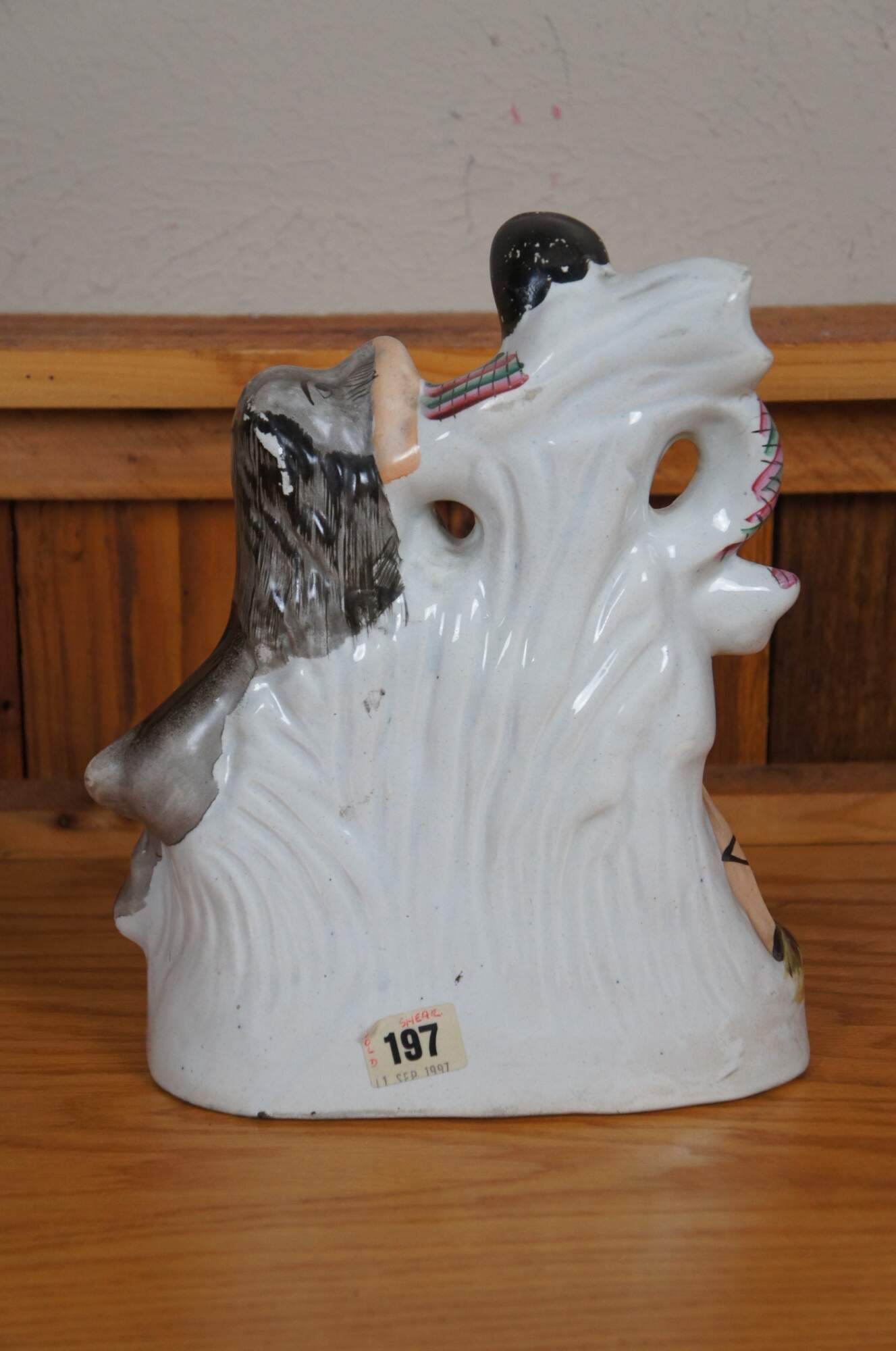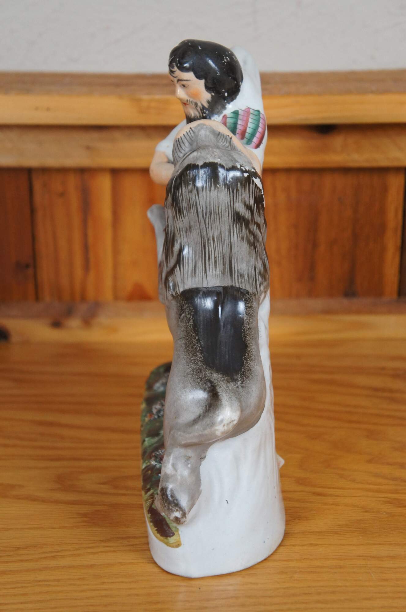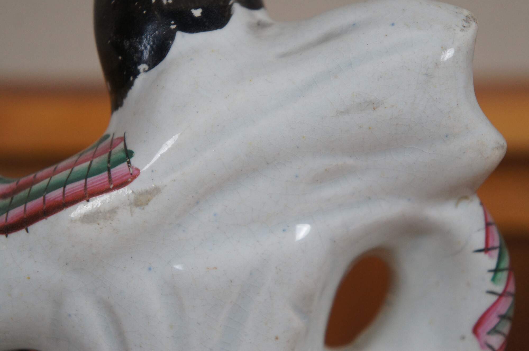 According to Pugh - considered the bible for Staffordshire figure collectors - this figure is Samson from the bible in the act of opening a lion’s jaw with both hands. However, there is much controversy surrounding his identity as others have called him Van Amburgh, Hercules and Crockett.