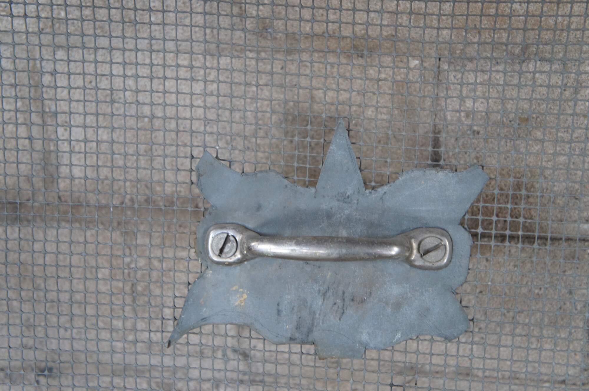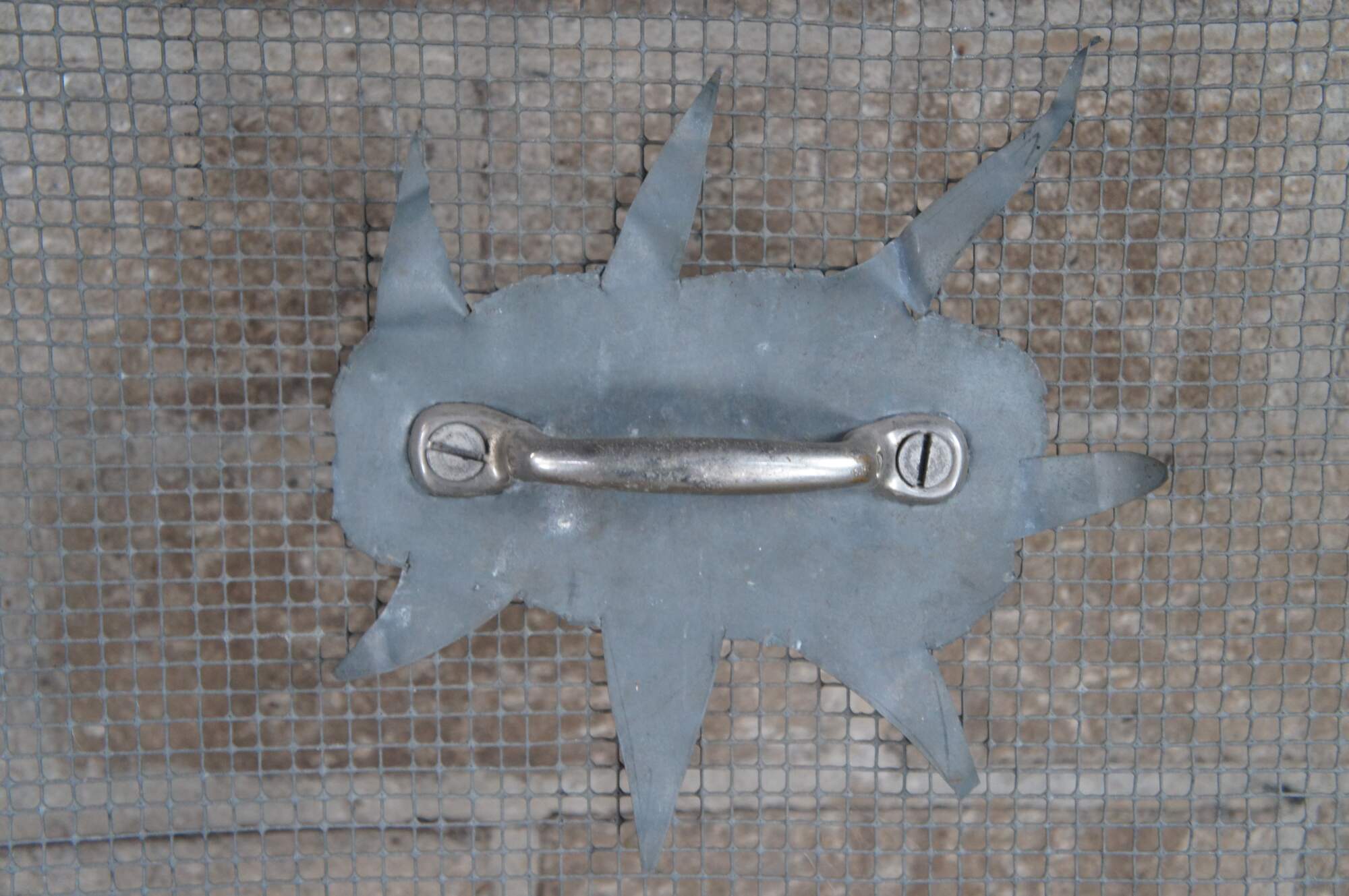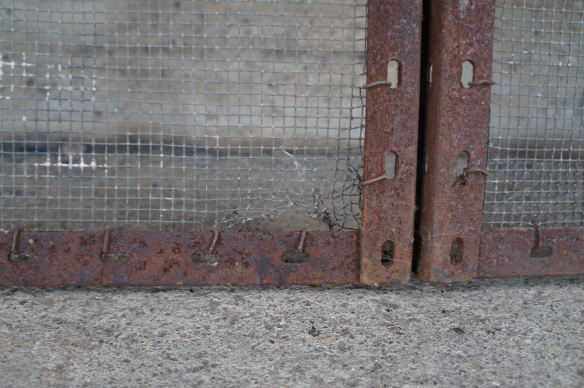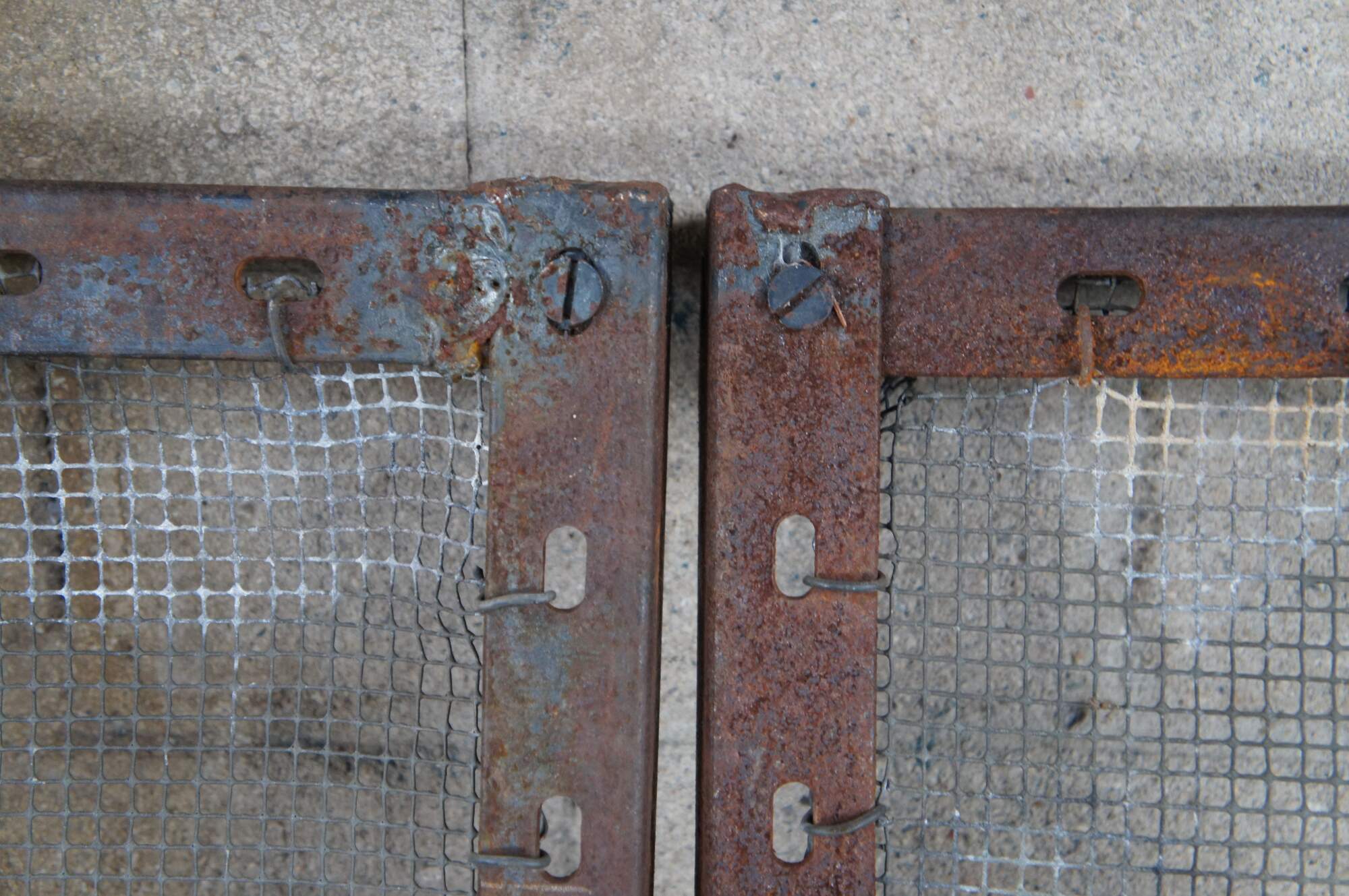 A large handmade folding fire screen. Made from iron with pierced frame and mesh center. Features handles towards the center.