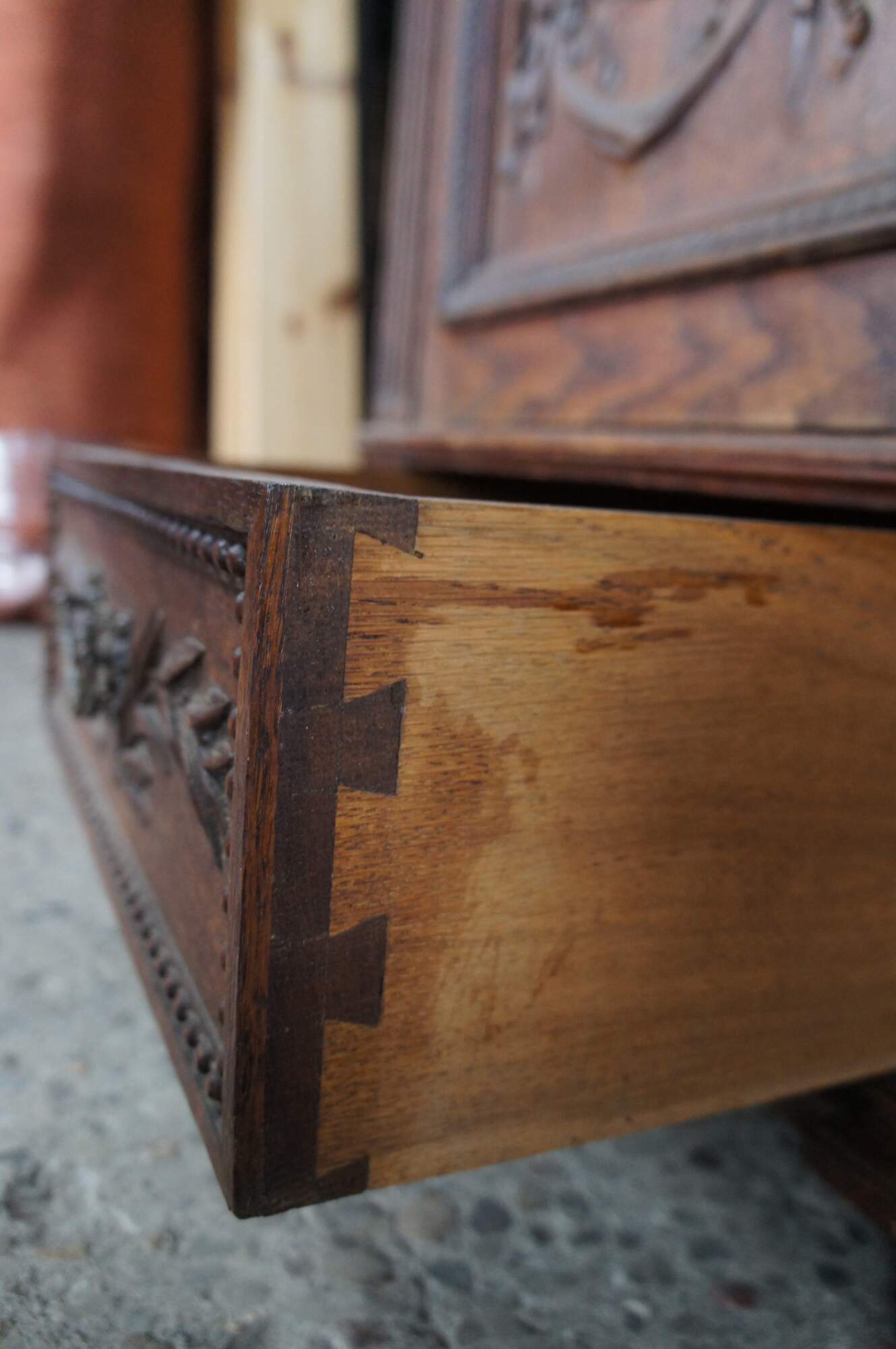The phrase Knock-down refers to the ability for these pieces to be easily disassembled and re-assembled. This allowed for these massive armoires to be able to shipped hundreds of miles and fit up the narrow staircases and winding hallways of the Victorian and preceding eras.