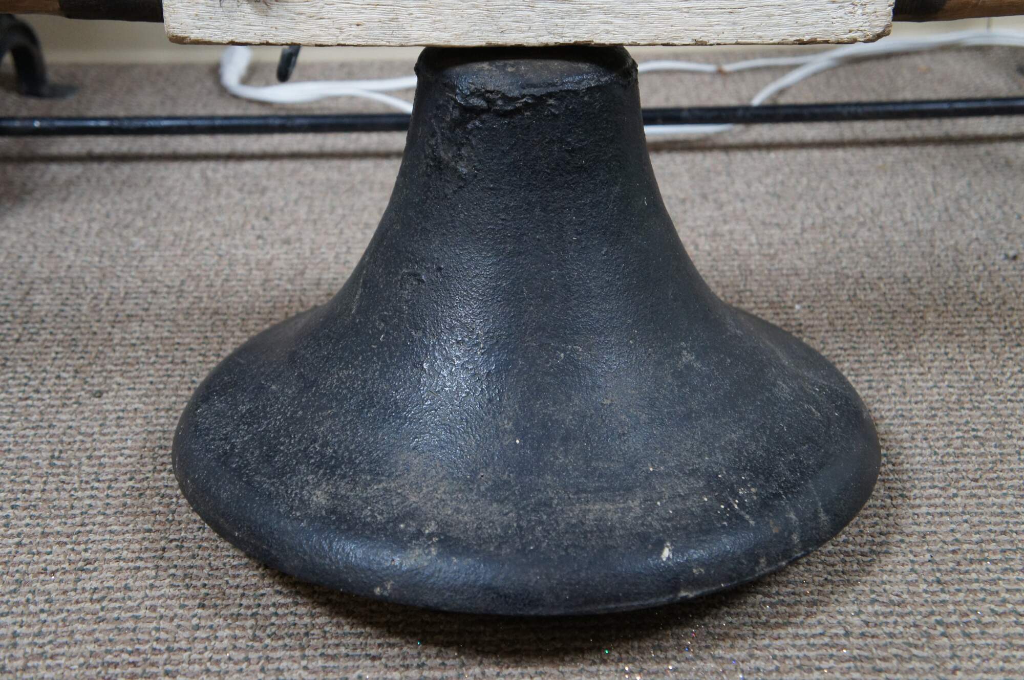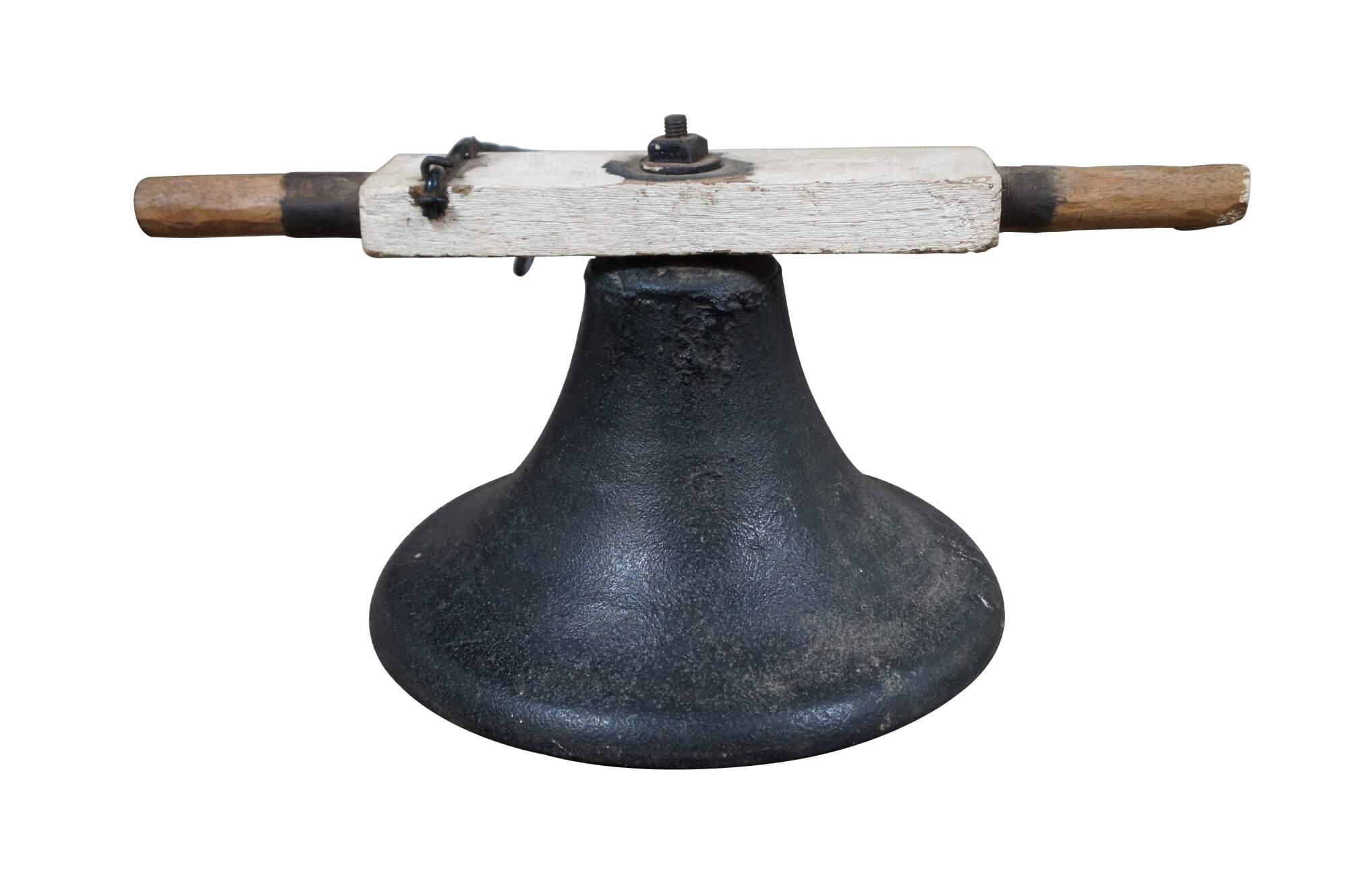 A large and heavy antique cast iron swinging farm / church / school / factory / dinner bell and yoke, attributed to CS Bell Co, marked Crystal Metal No 2.