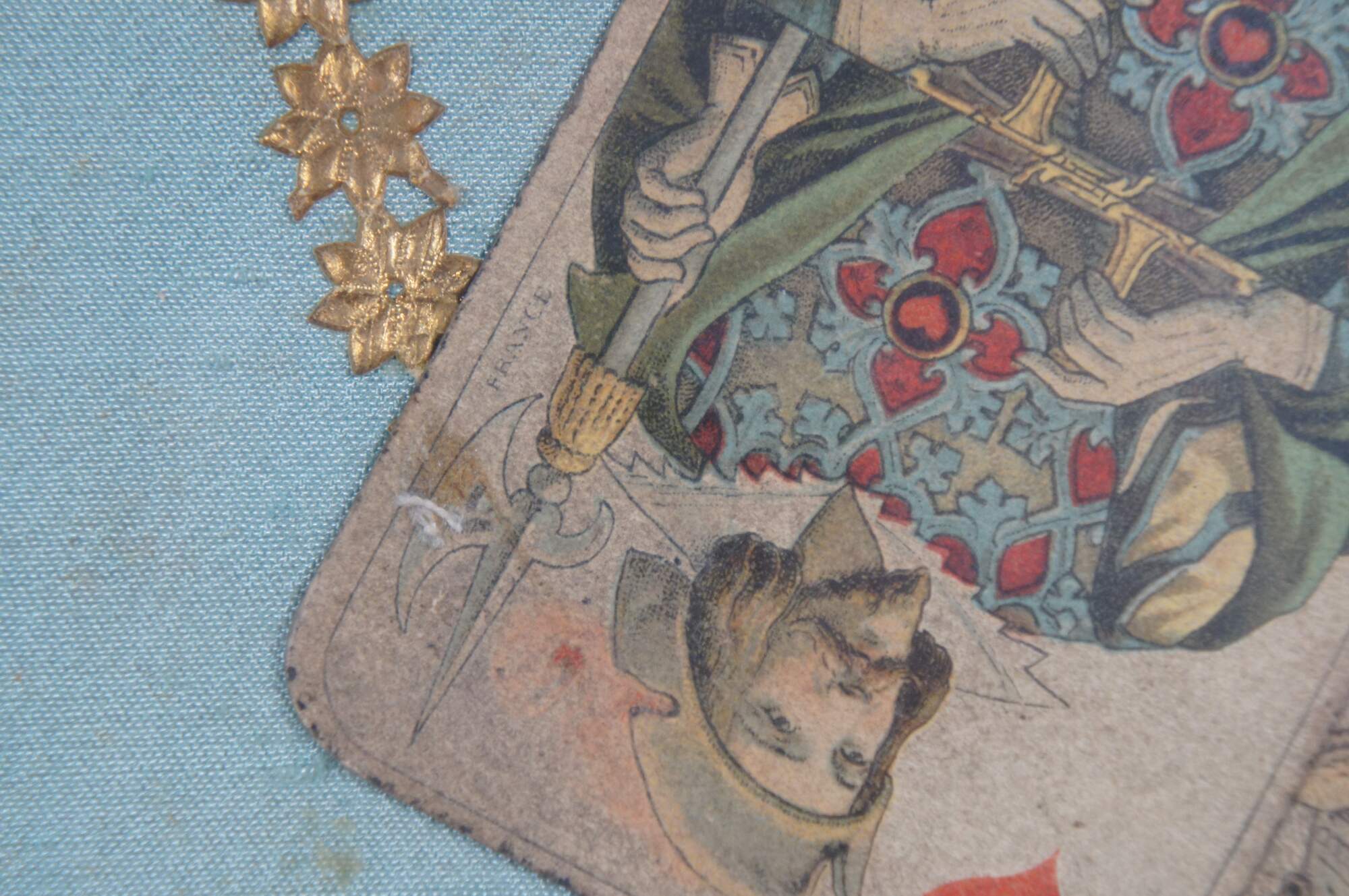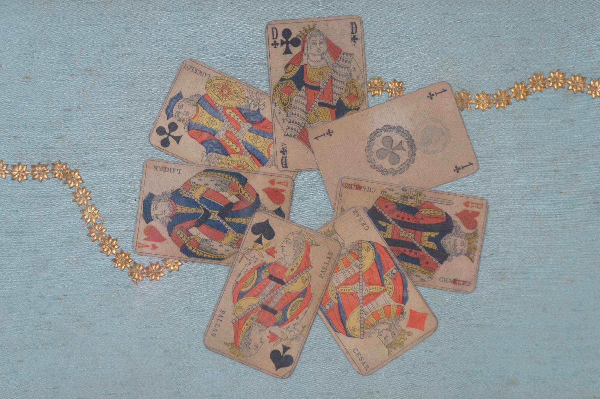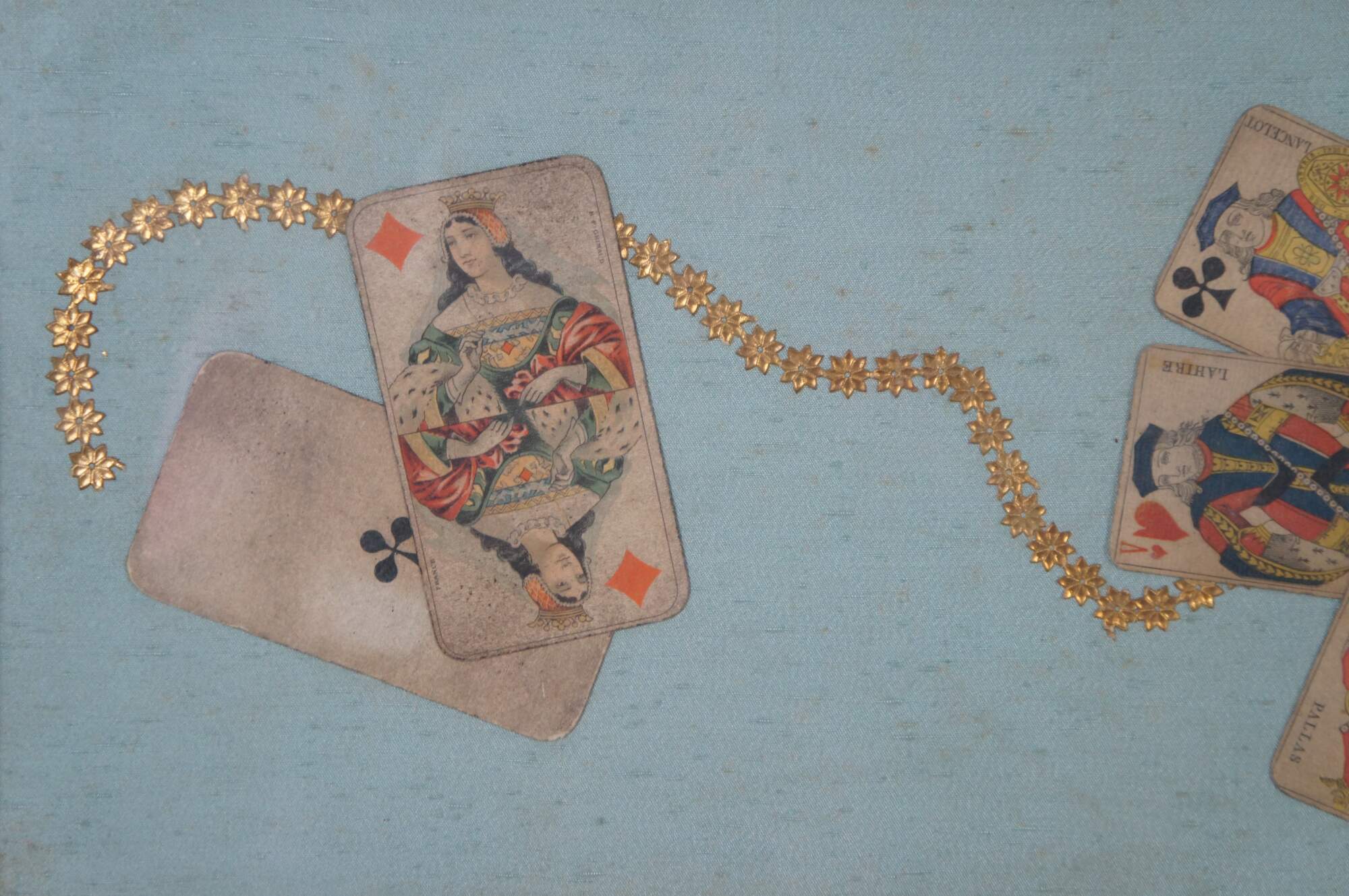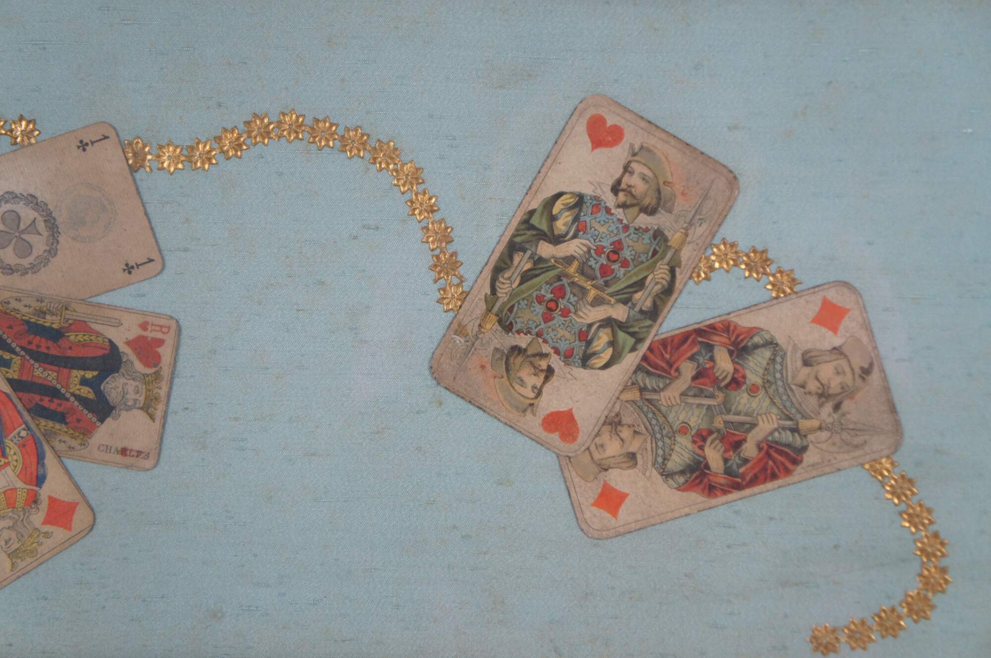 Antique framed shadowbox style yardlong artwork featuring playing cards by the famed Baptiste Paul (BP) Grimaud.