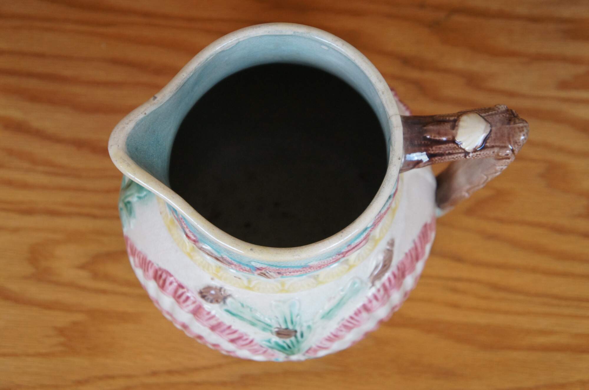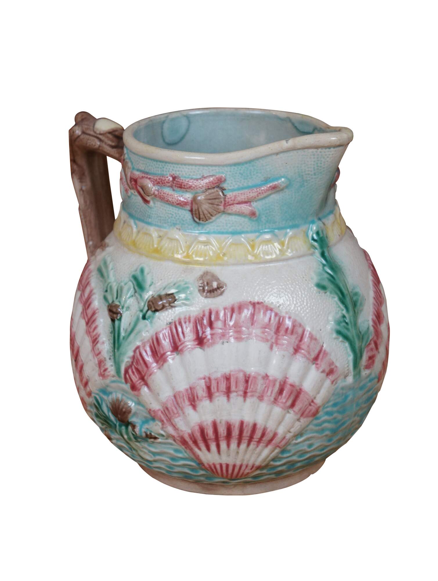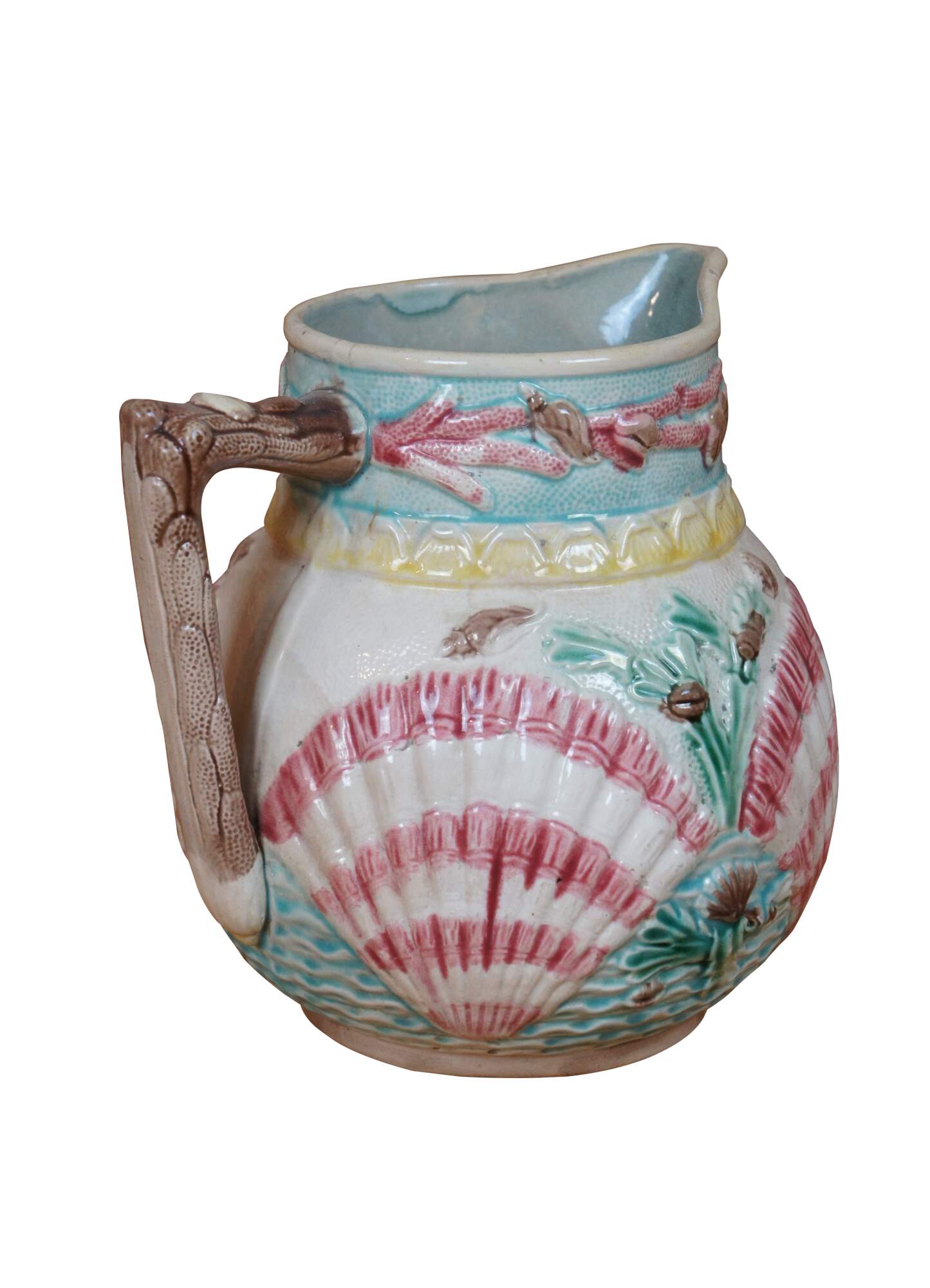 Large antique Arsenal Pottery after Wardle Majolica nautical Ocean pitcher / jug / carafe featuring a coral seashell and seaweed theme.