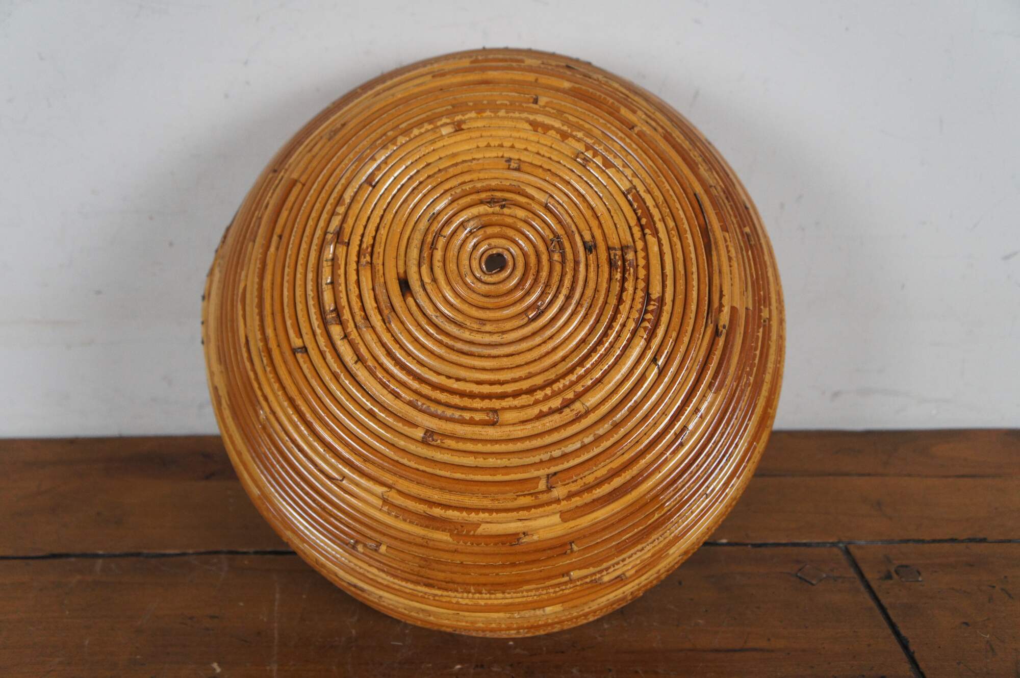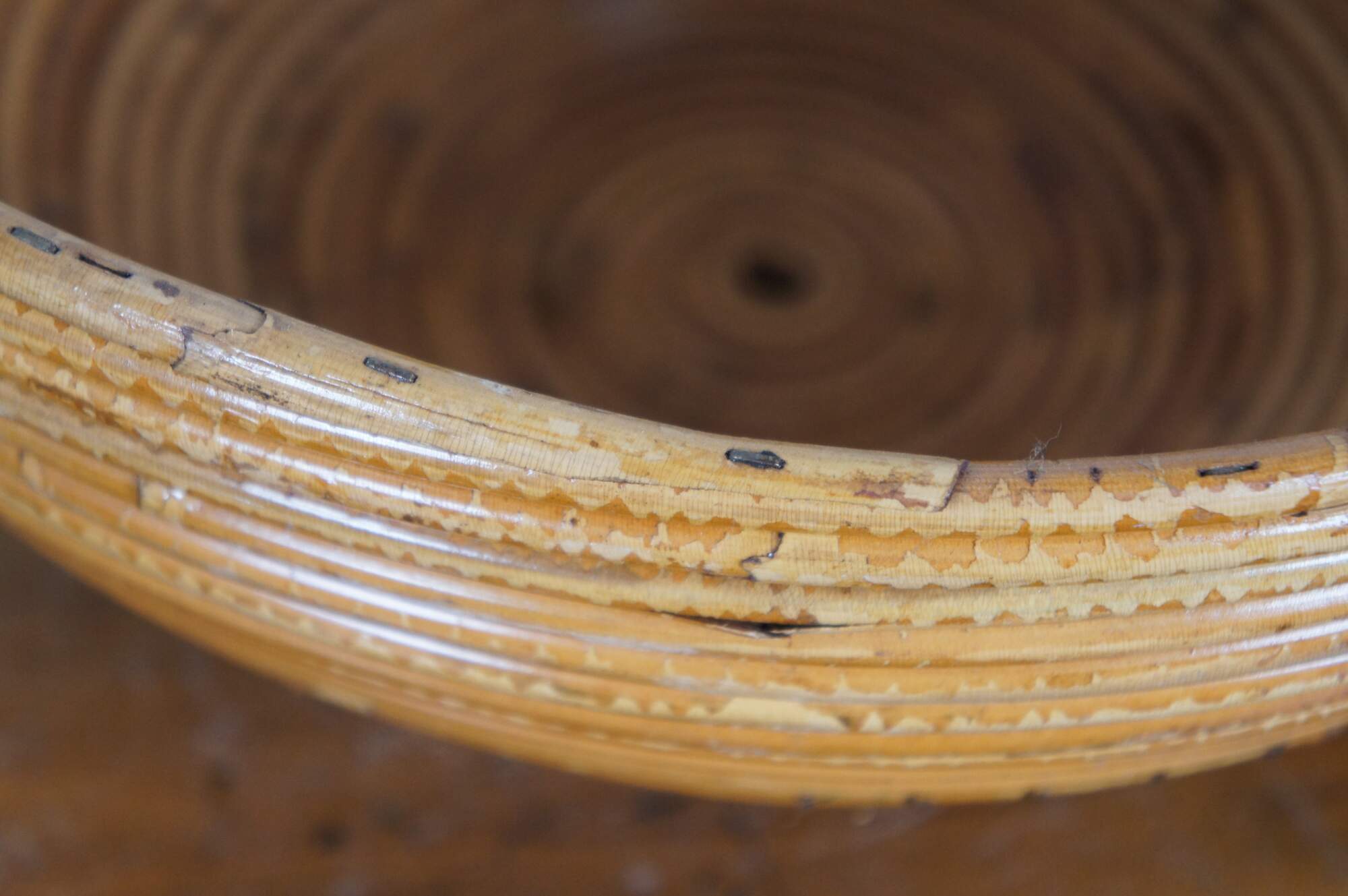 Very nice example of a large Italian mid-century modern pencil reed farmhouse centerpiece bowl or planter. Made of tightly coiled stalks of bamboo, rattan, or reed with a lightly distressed two-tone finish.