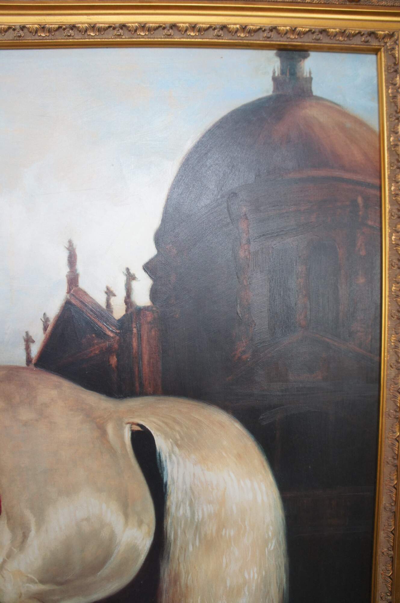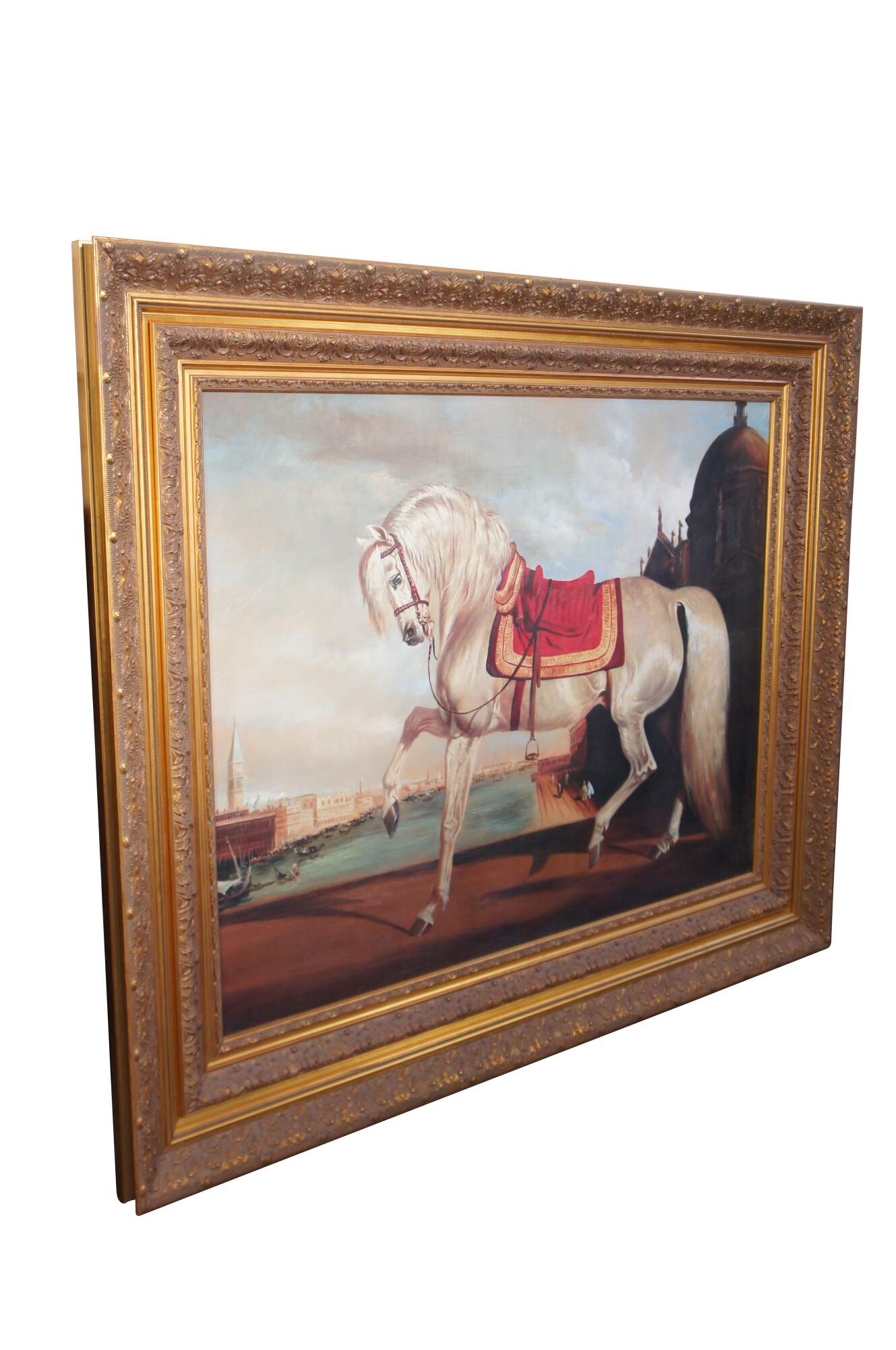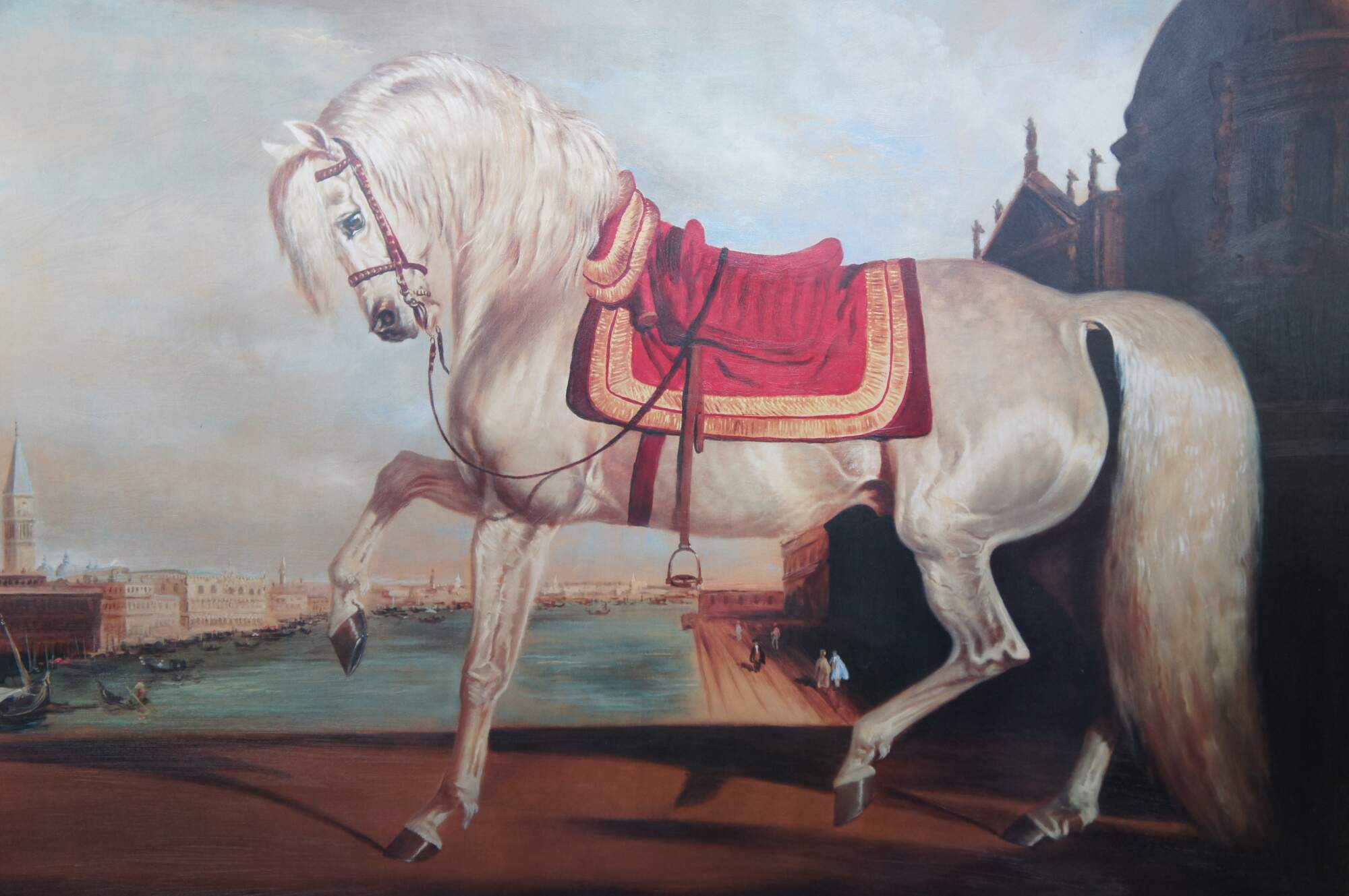 Horse in Venetian Landscape by Bernard De Claviere, circa last quarter 20th century. Enhanced print on board, framed in French manner.