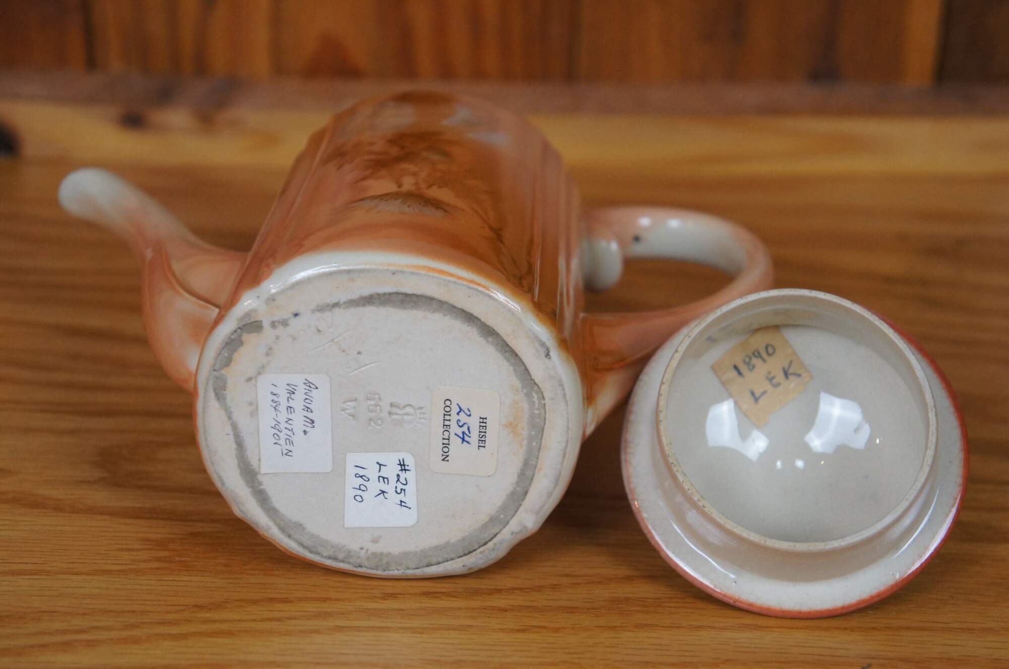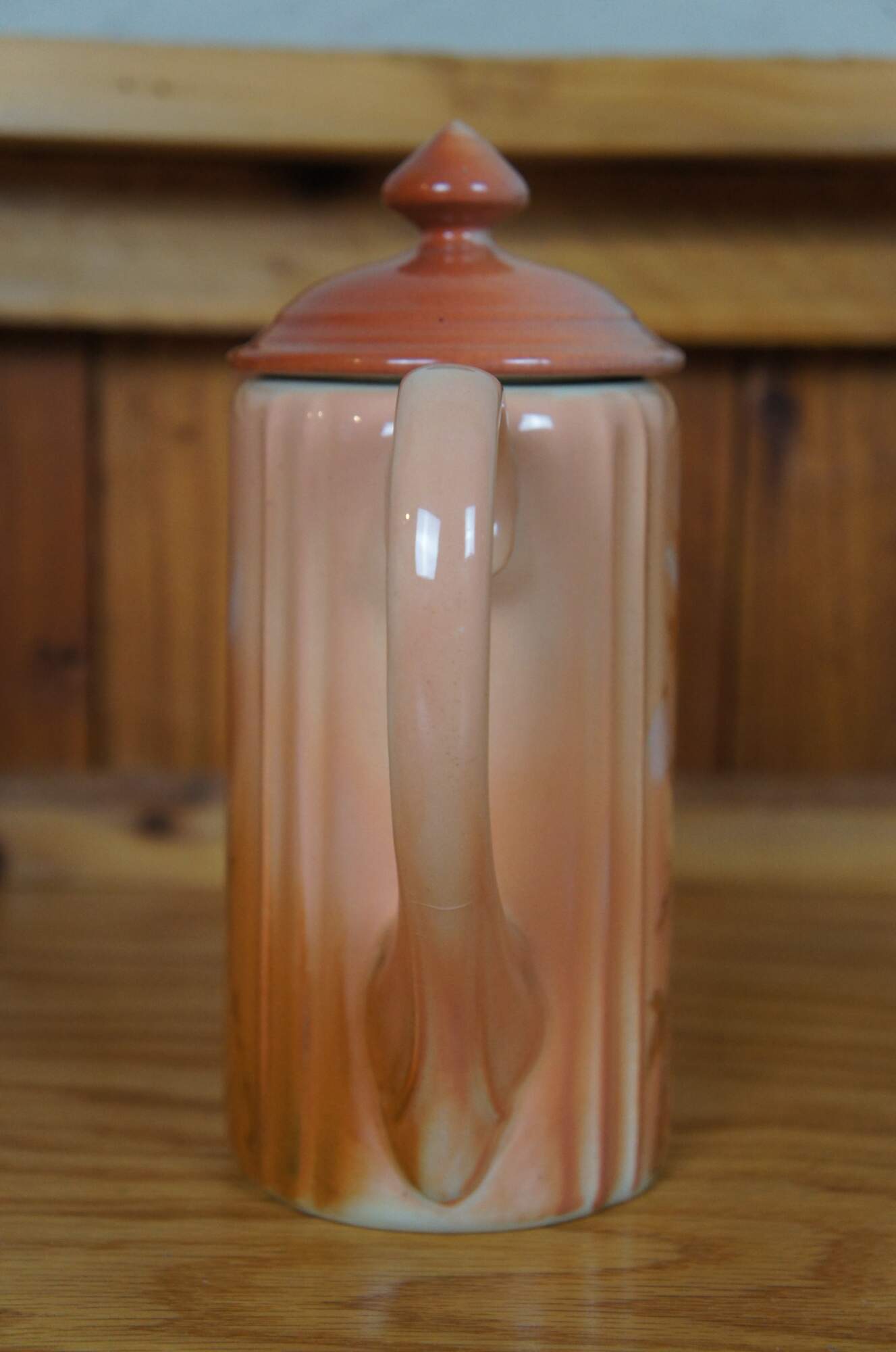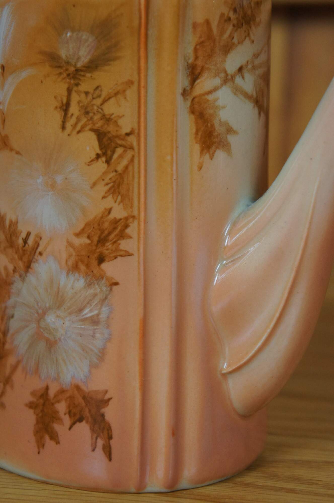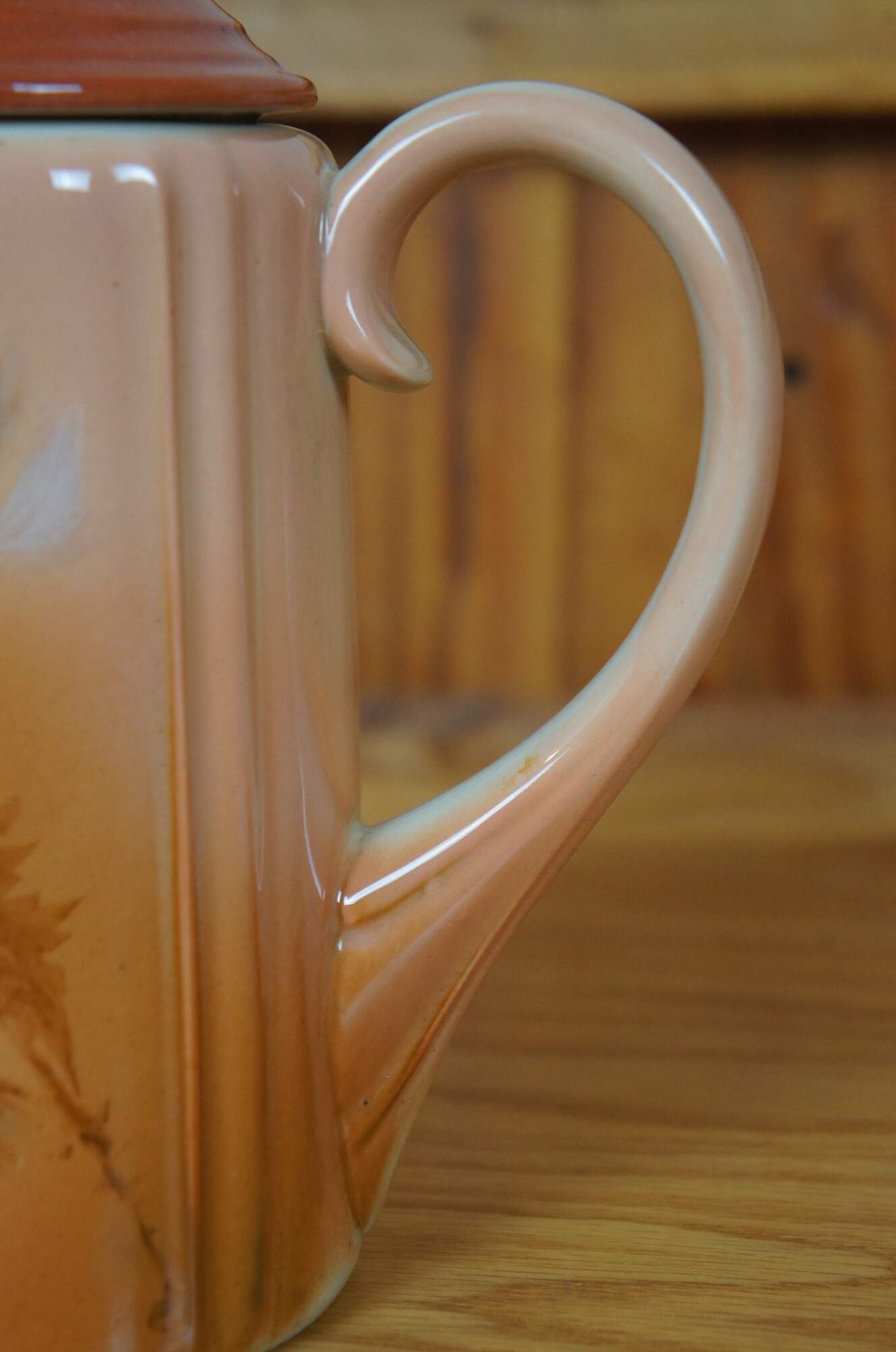 Antique Rookwood lidded chocolate pot / teapot / coffee pitcher by Anna Marie Valentien. Features Art Nouveau styling with an Autumn toned floral theme. Signed AMV on base. W stands for white denoting Iris glaze was used. Marked circa 1890, Shape 552, Heisel Collection.