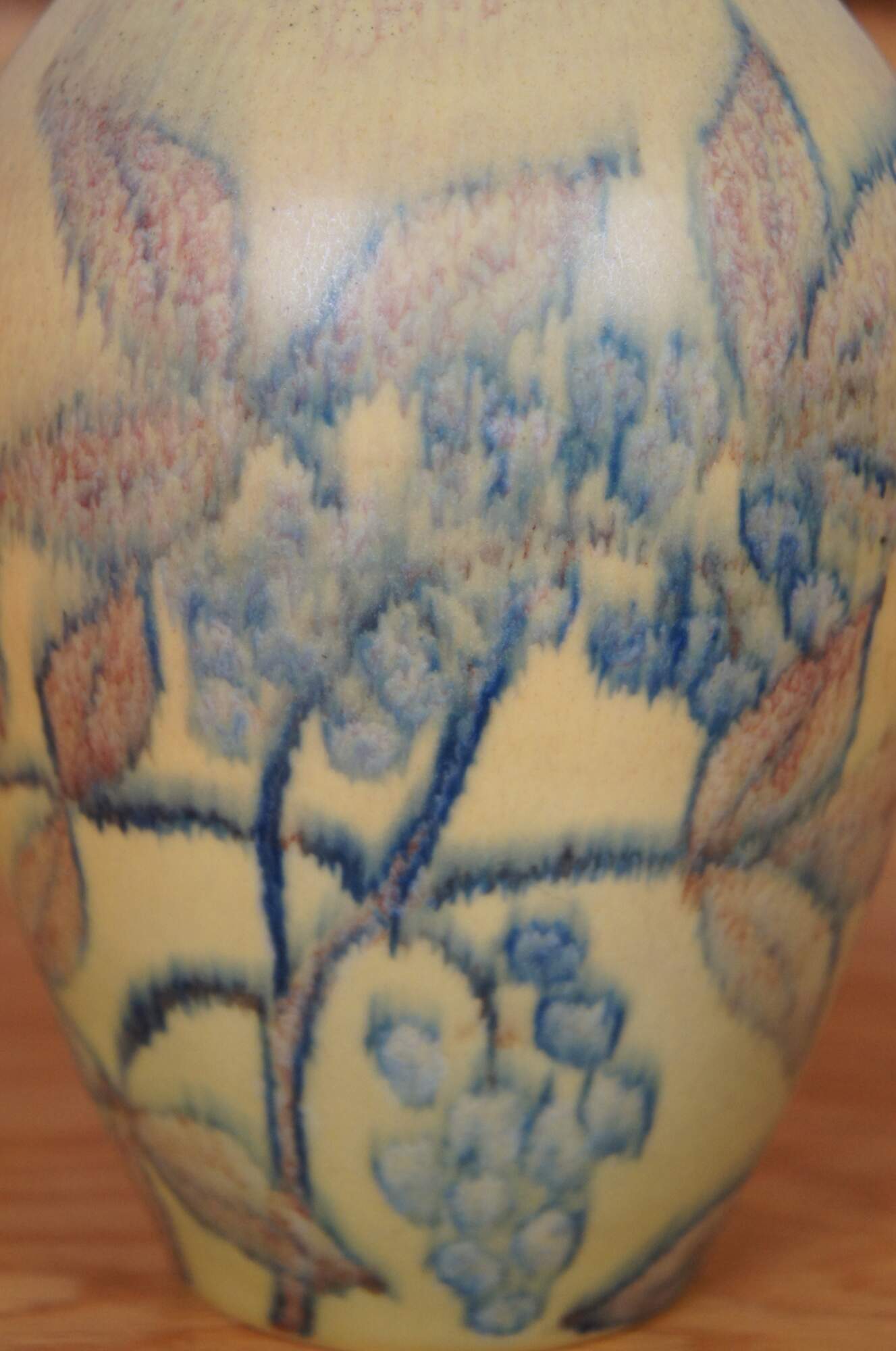 Antique Rookwood Jens Jensen matte glaze floral theme mantel vase or urn. Marked 1929 XXIX on base with shape 604 DD, signed with encircled J with wings.