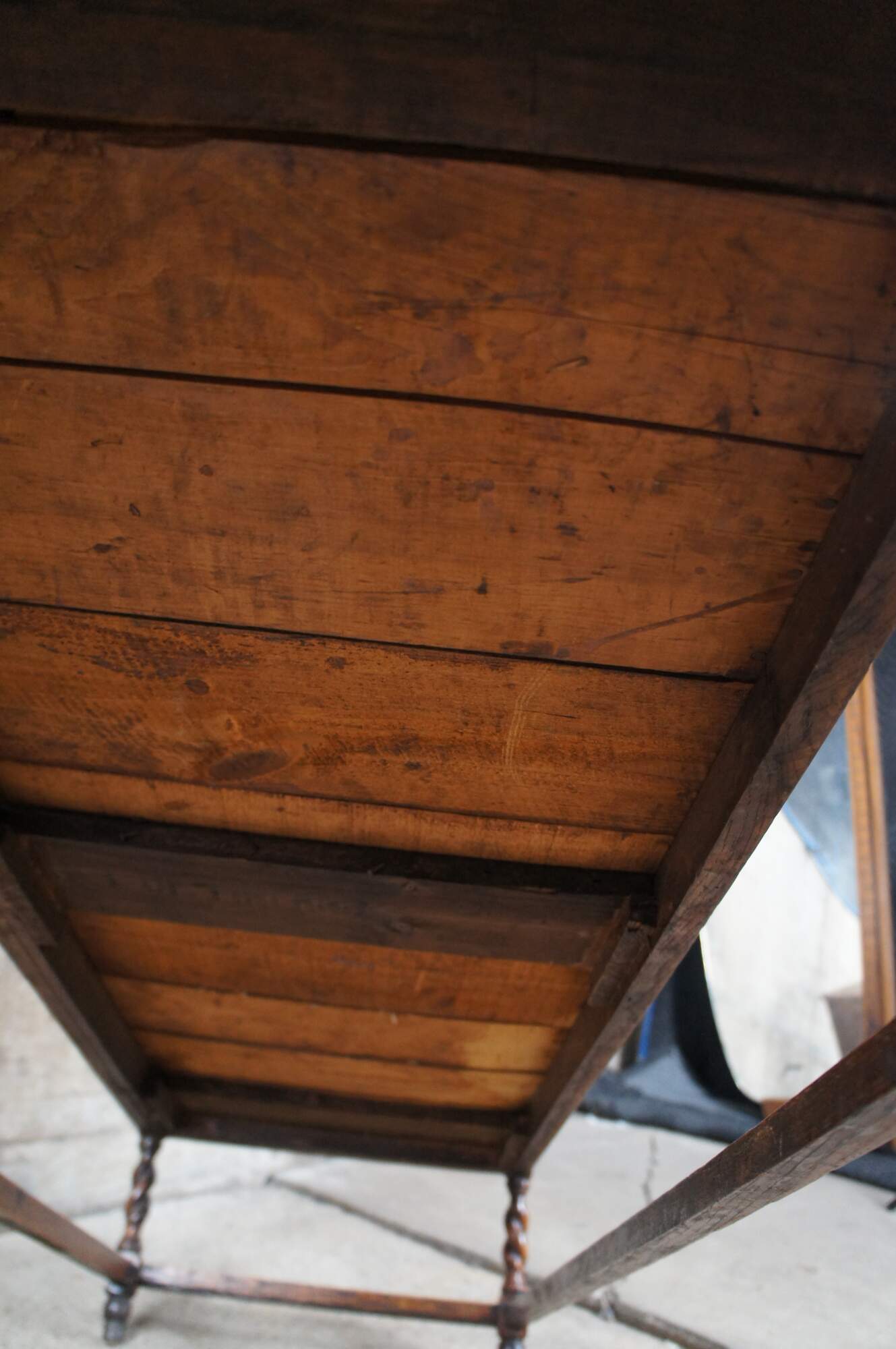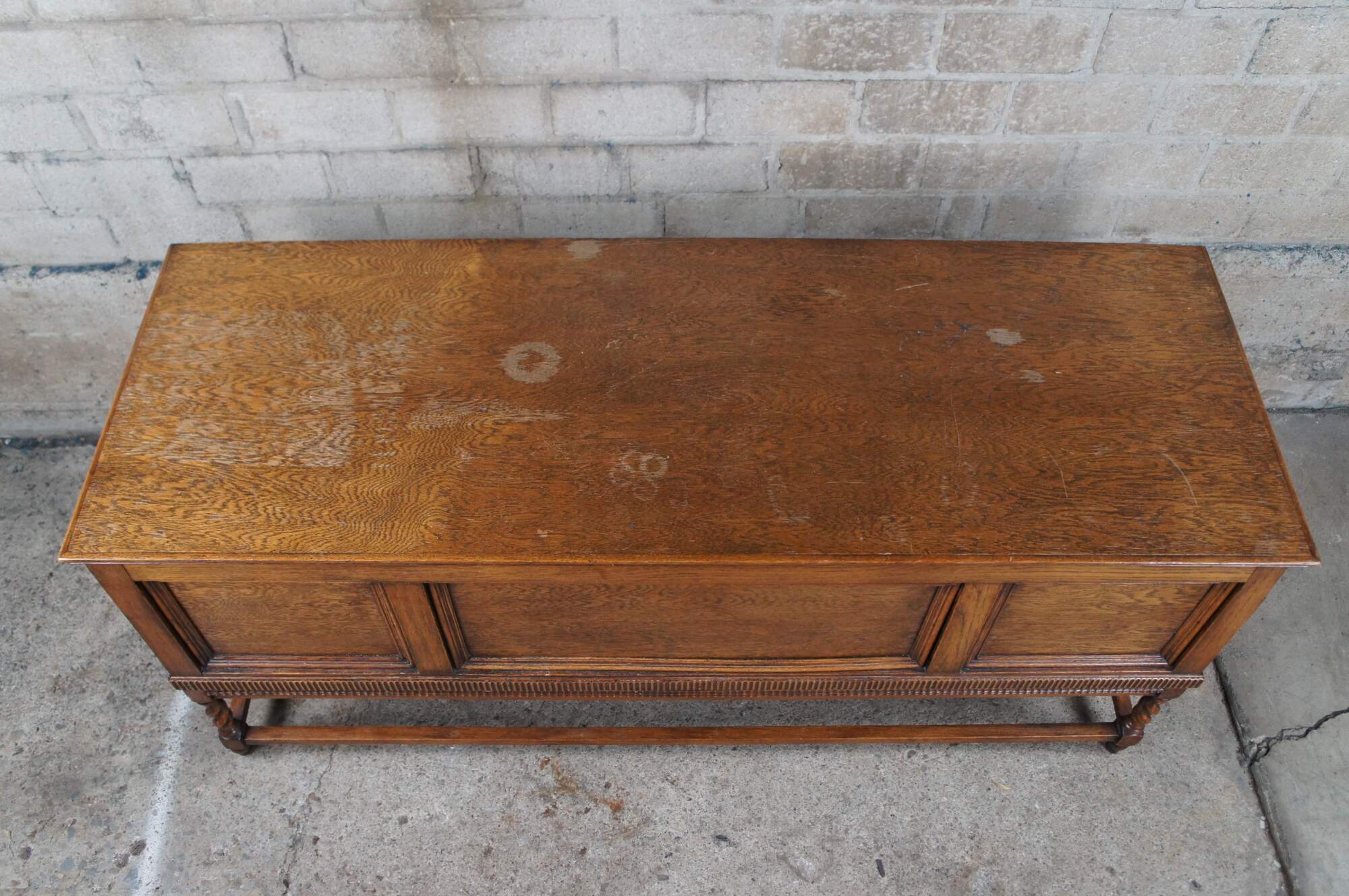 An exceptional American Victorian Oak blanket chest. French inspired with paneled front and sides over joined barley twist supports. The trunk opens via two large iron hinges.