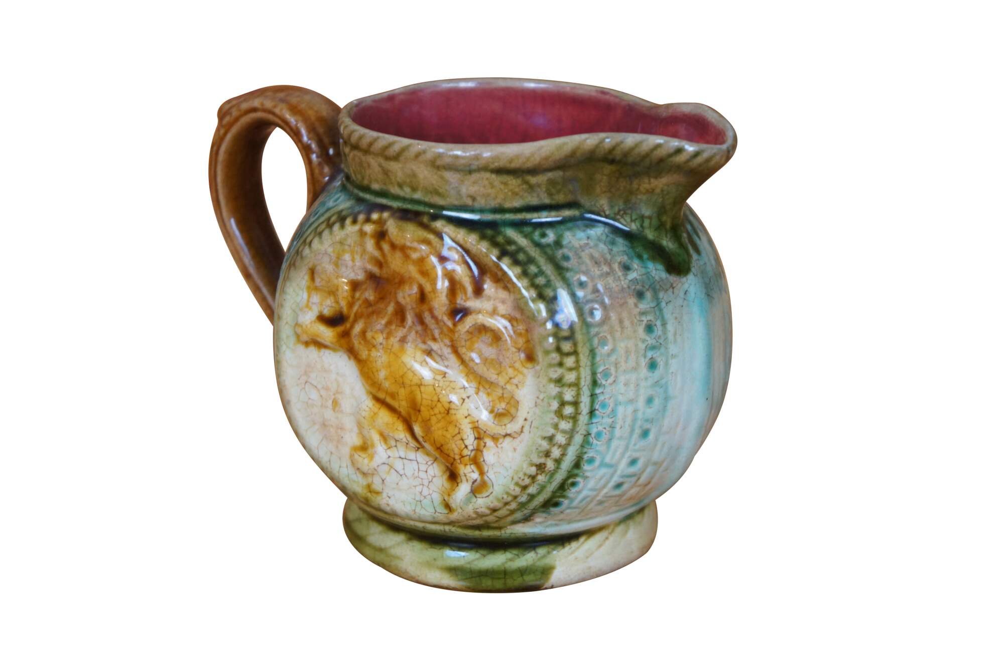 Portieux Vallerysthal Frie Onnaing (La Faïencerie d'Onnaing) Majolica Barbotine Lion Pitcher