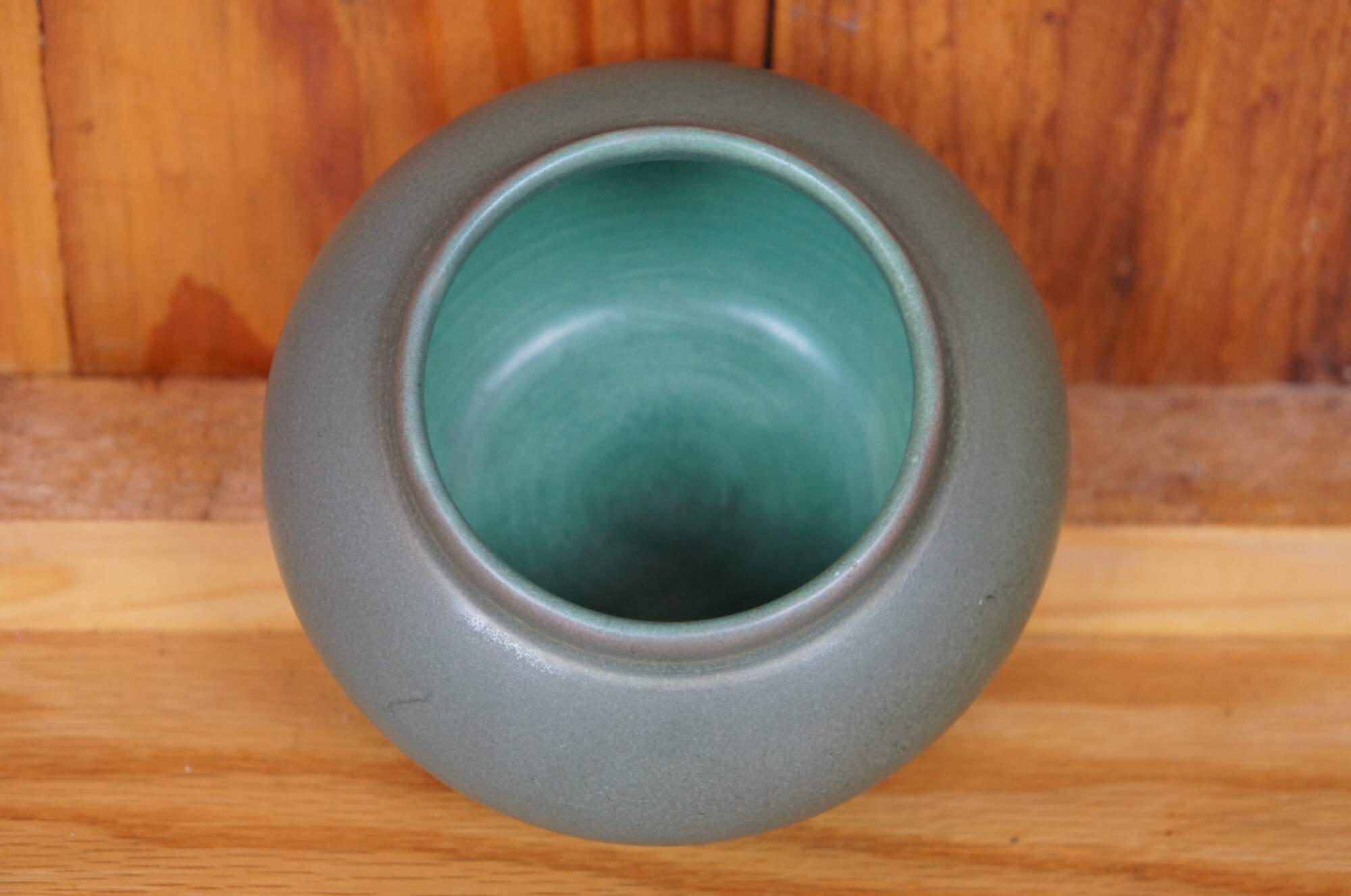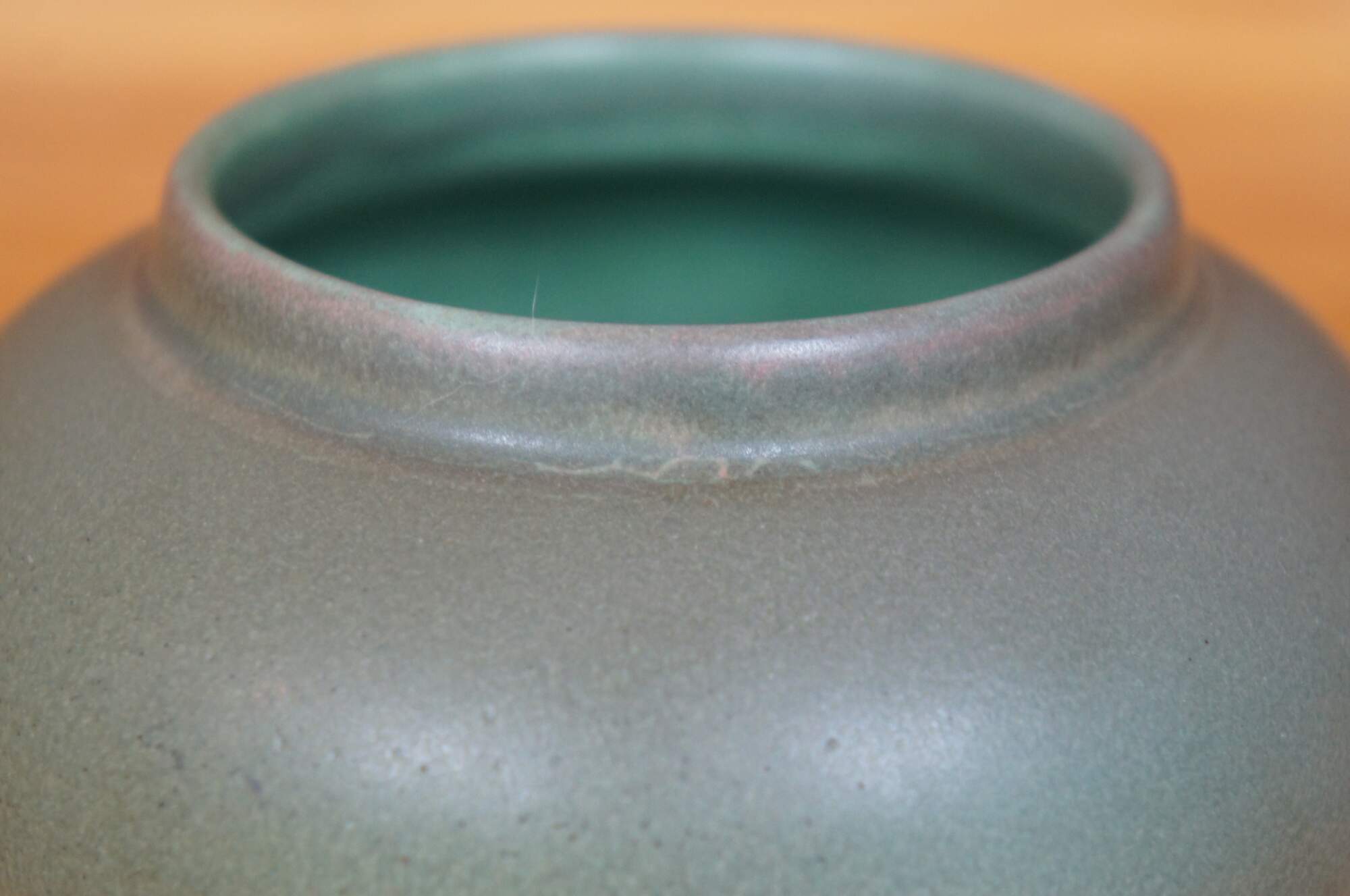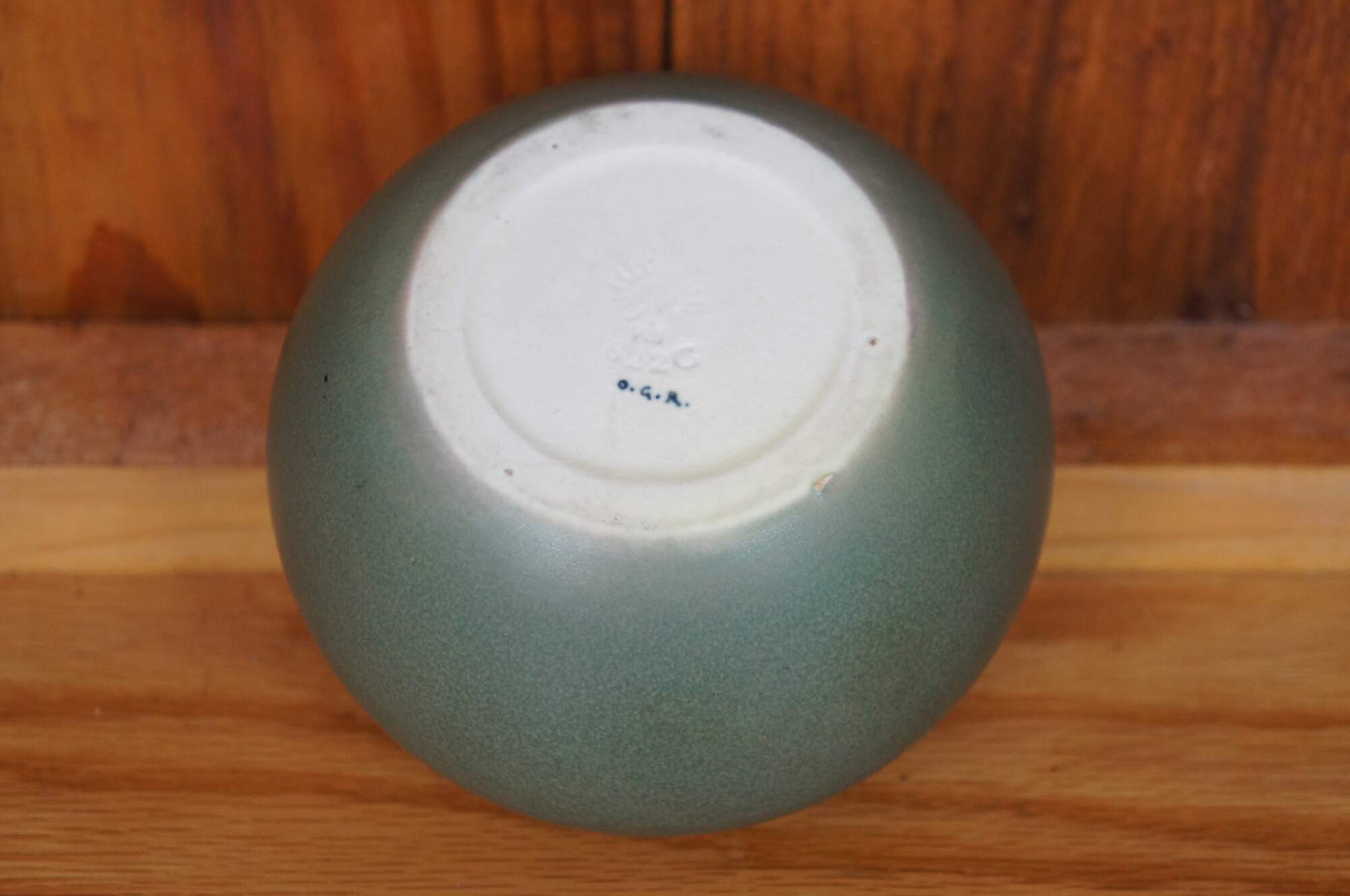 Antique Art Nouveau Rookwood Olga Geneva Reed pot or bowl featuring round form with sea green matte glaze. Circa 1908. Shape 622. Size C. Signed OGA - Olga Geneve Reed.