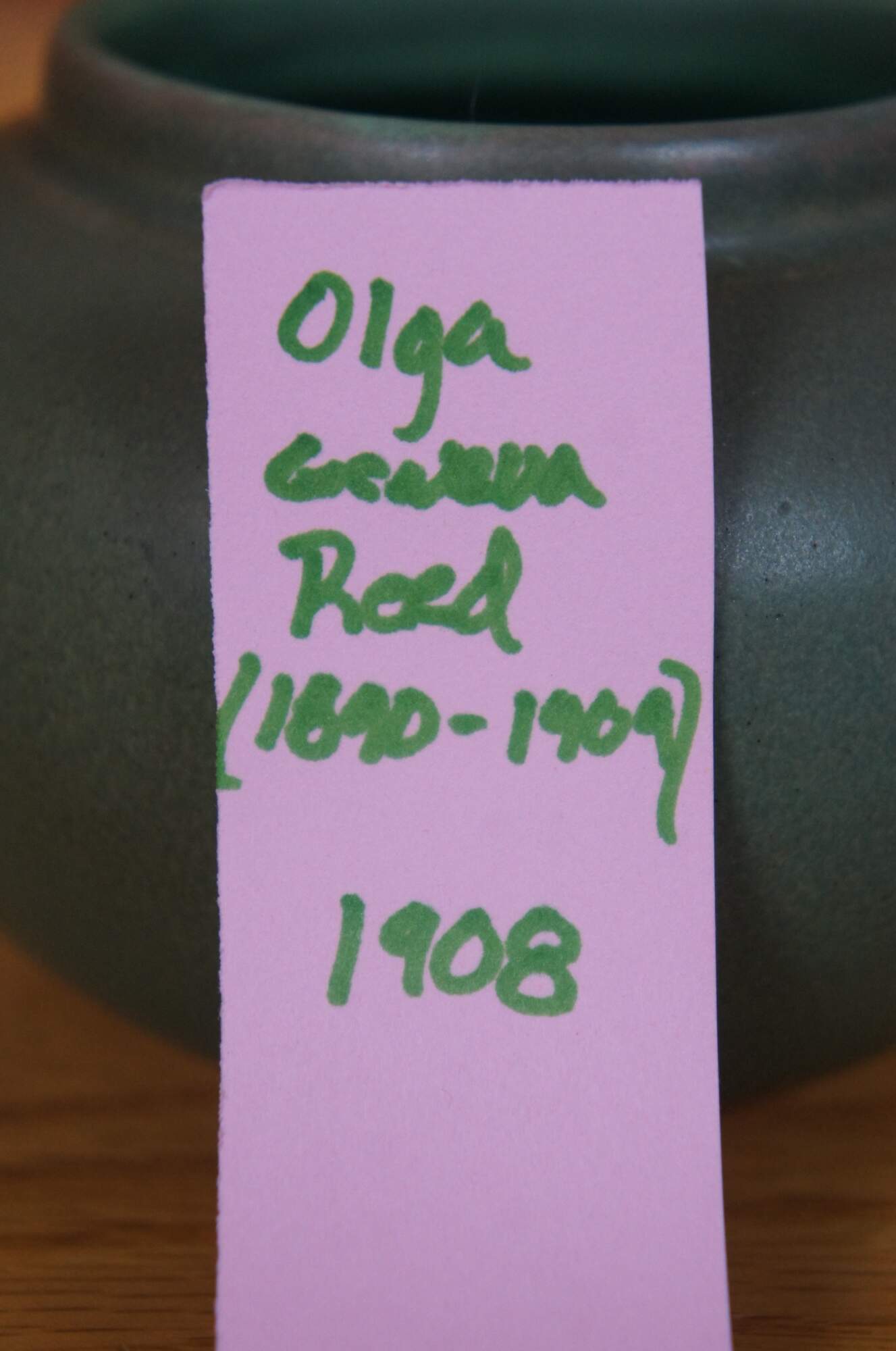 Olga Geneva Reed was born in 1873, and attended the Cincinnati Art Academy. She decorated at Rookwood pottery from 1890 until 1909. Her work is found primarily on Vellum Glazed vases. After her first husband died, she married another Rookwood artist, the famous Matthew Daly. Collector interest in her pieces is considered to be above average.