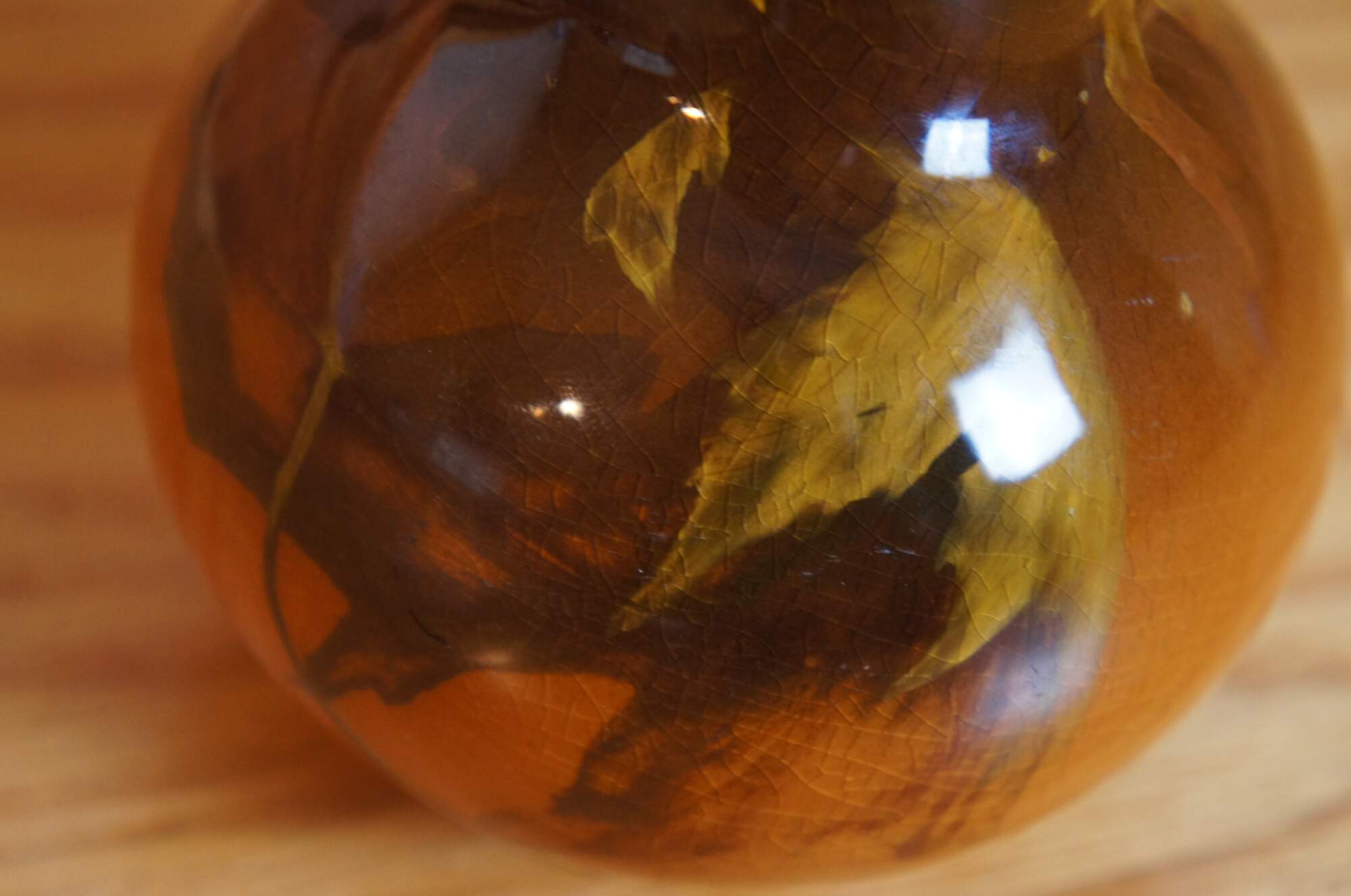 Antique Rookwood Irene Bishop vase or urn featuring Art Nouveau / Arts & Crafts styling with an Autumn Oak leaf motif of browns and orange glaze. Cirac 1901. Shape 40. Signed IB for Irene Bishop.