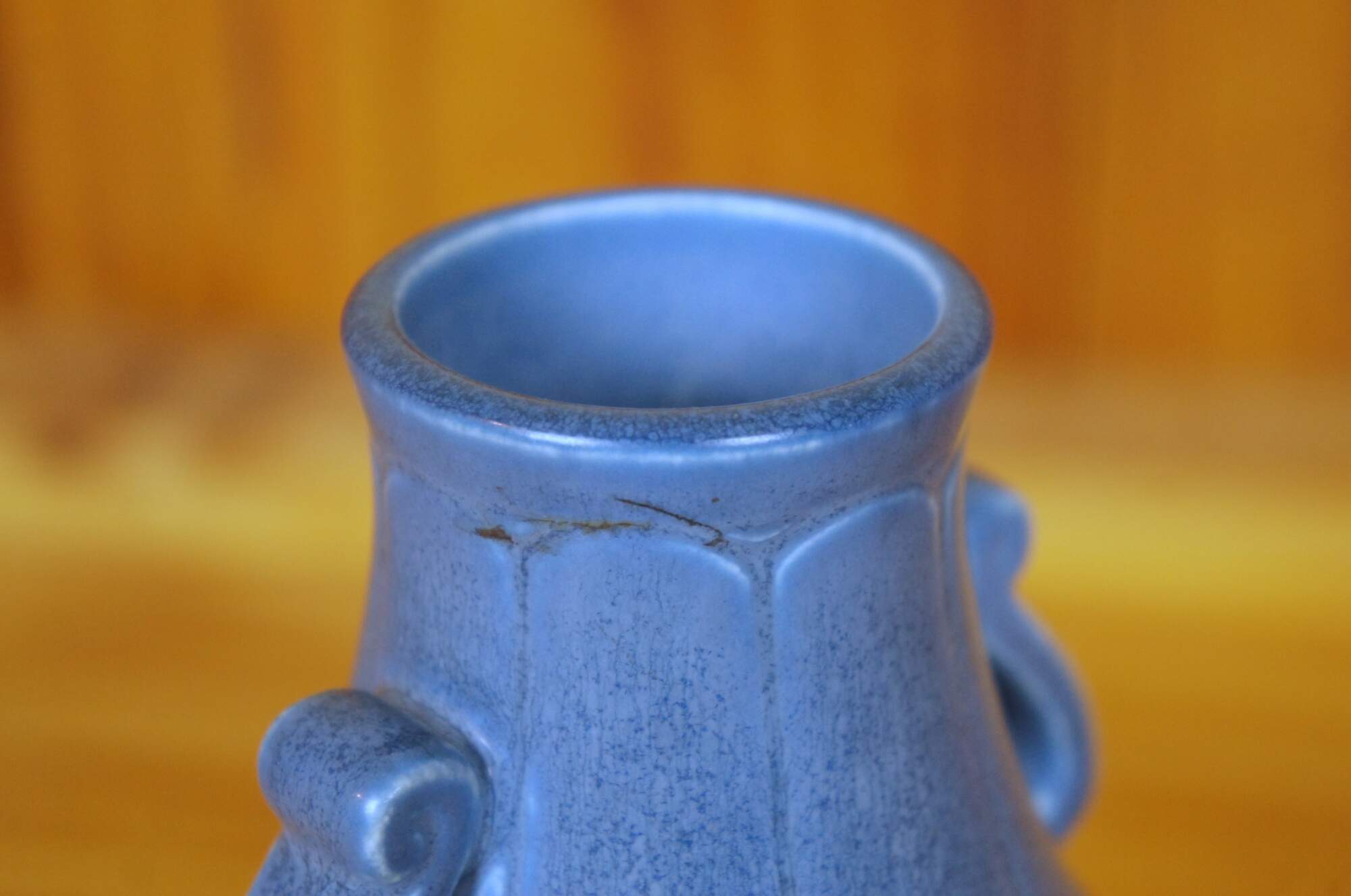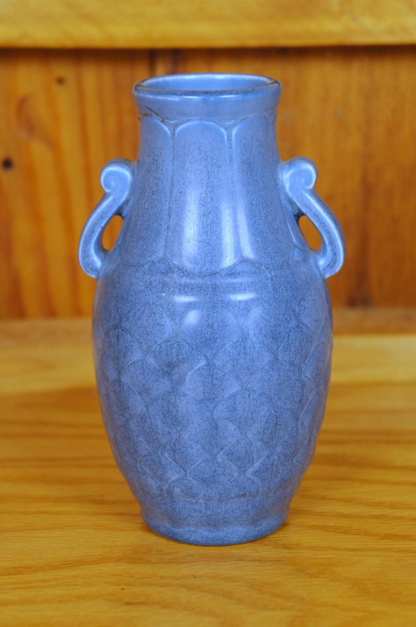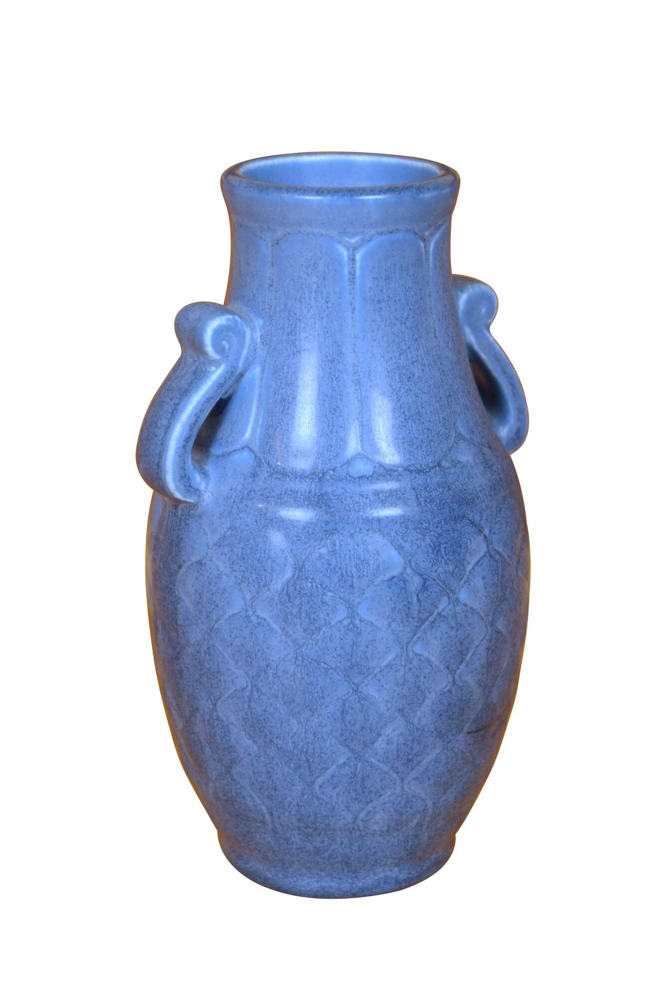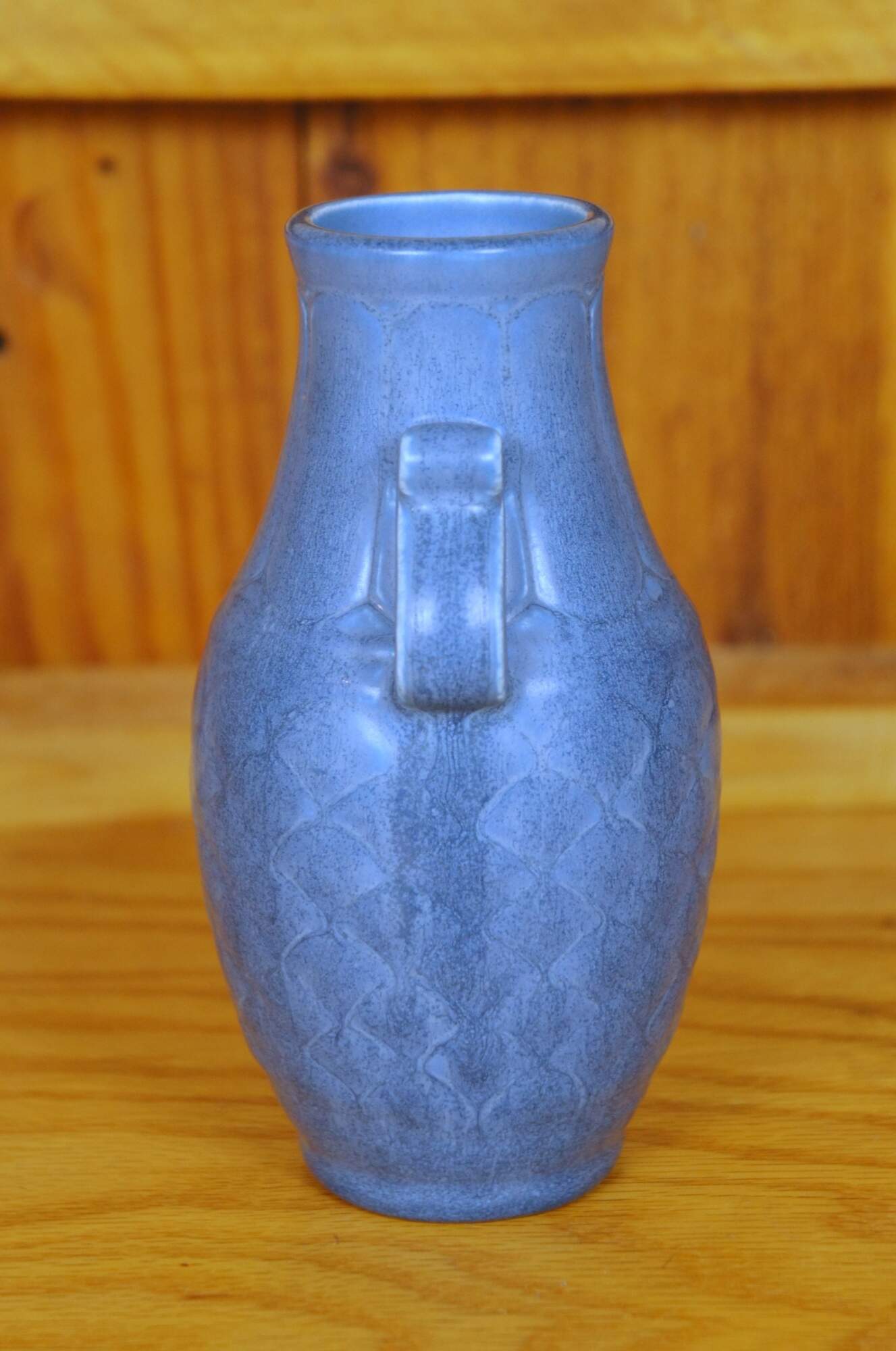 Antique Art Deco Rookwood bud vase featuring a basketweave style motif with handles. Circa 1930. Shape 6096.
